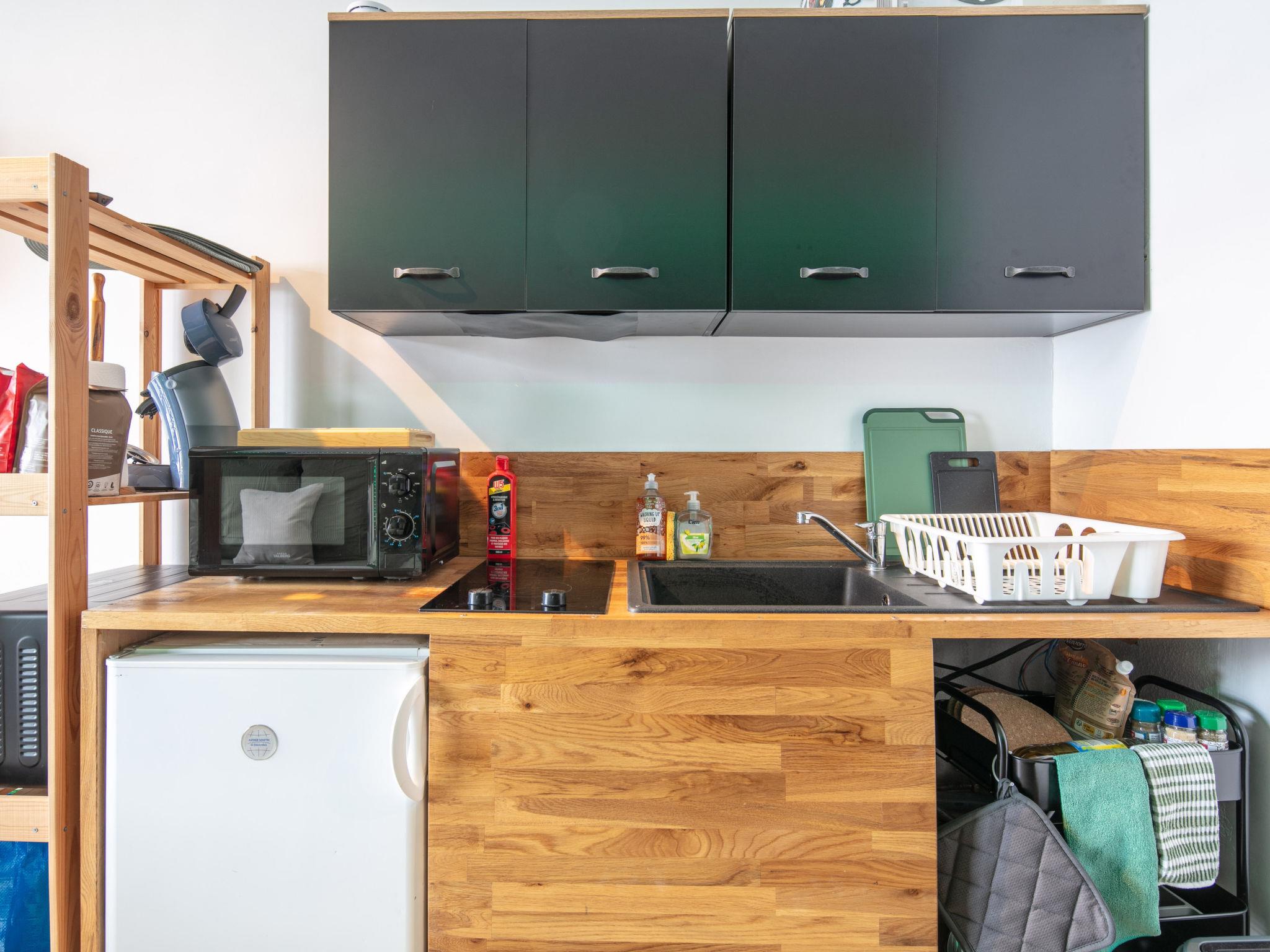 "Le Vernon", 1-room studio 20 m2 on 7th floor. Object suitable for 4 adults. Living room with 2 sofabeds, 2 pull-out beds and TV. Open kitchen (2 hot plates, toaster, kettle, microwave, electric coffee machine). Bath/WC. Balcony. View of the mountains and the ski run. Please note: non-smokers only. Smoke alarm. Offer by a commercial proprietor according to Art. 155, IV, CGI