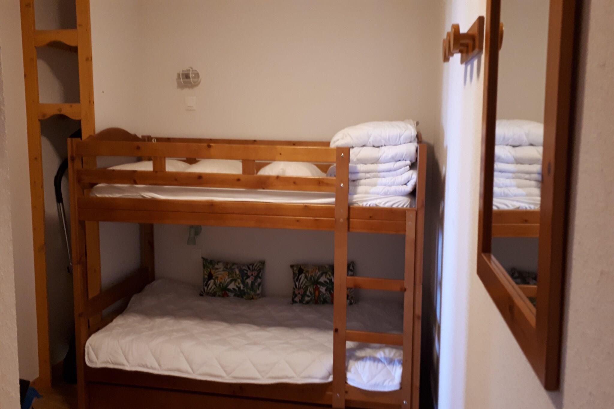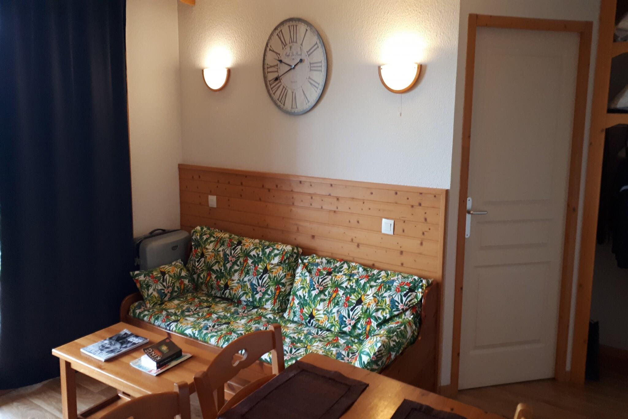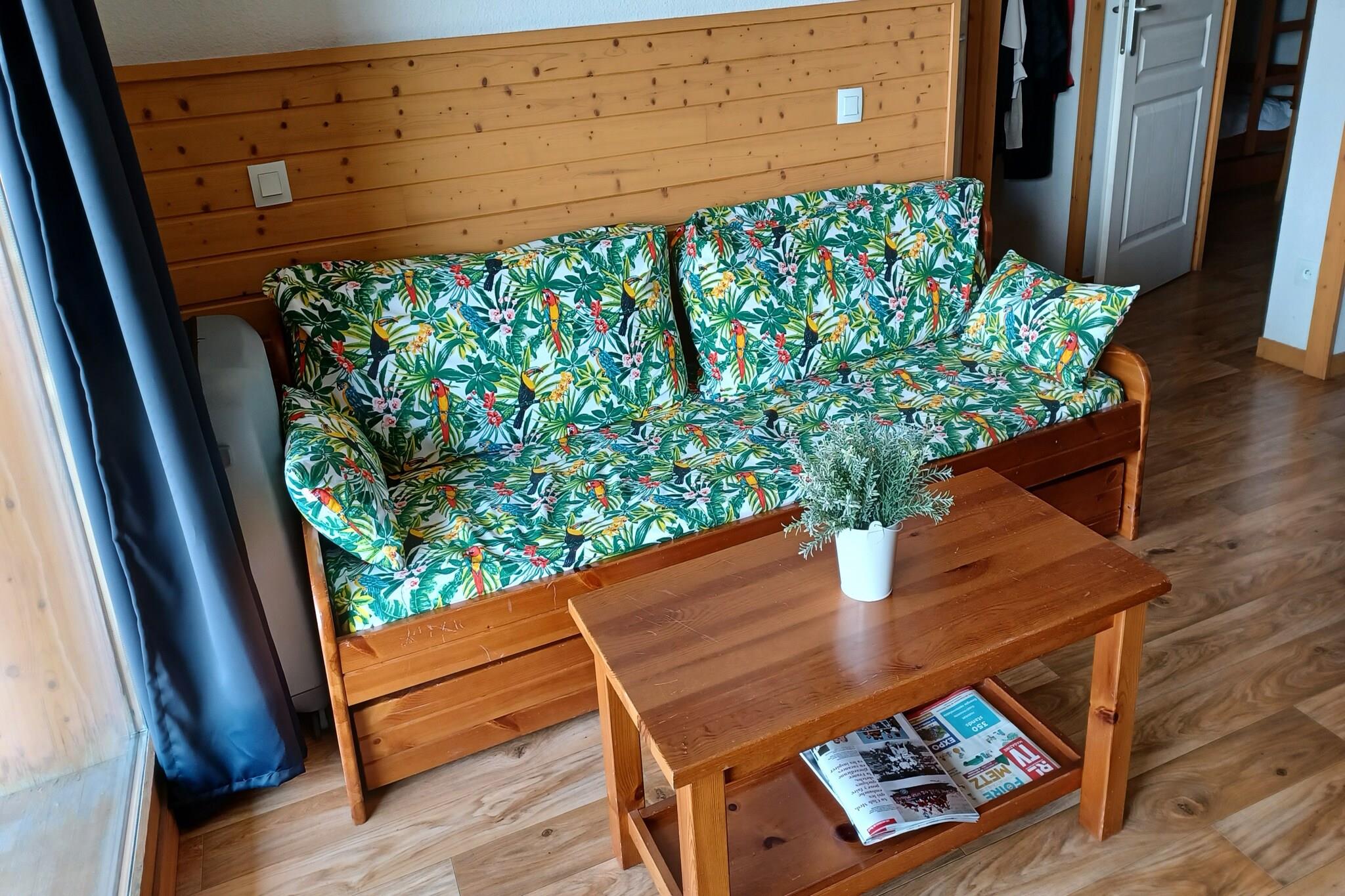 Denne charmerende 36 m² store 3-stjernede lejlighed i La Grive-residensen på Chamrousse resort er ideel til op til seks gæster. Beliggende i stueetagen har det en hyggelig stue med terrasse og tv samt åbent køkken udstyret med køleskab, fryser, opvaskemaskine, mikroovn, kaffemaskine, elkedel og brødrister. Sovearrangementer omfatter en dobbelt sovesofa i stuen, en dobbeltseng i soveværelset og to køjesenge i entréen. Lejligheden har også et badeværelse med badekar og et separat toilet for ekstra bekvemmelighed. Yderligere faciliteter omfatter et skirum, vaskeri (mod ekstra gebyr) og en udendørs parkeringsplads, afhængigt af tilgængelighed. Kæledyr er velkomne. Boligen ligger kun 100 meter fra svævebanen og snowpark, med butikker og restauranter i nærheden, som tilbyder en fantastisk udsigt over bjergene. Obligatoriske gebyrer inkluderer en turistskat og et refunderbart depositum, mens valgfri tjenester som sengelinned, håndklæder, slutrengøring og gourmetkurve er tilgængelige. Gæster kan også nyde rabat på leje af skiudstyr, lektioner og mere gennem Alpvisions lokale partnere. Med over 20 års erfaring sikrer Alpvision en afslappende og uforglemmelig ferie i alpint.