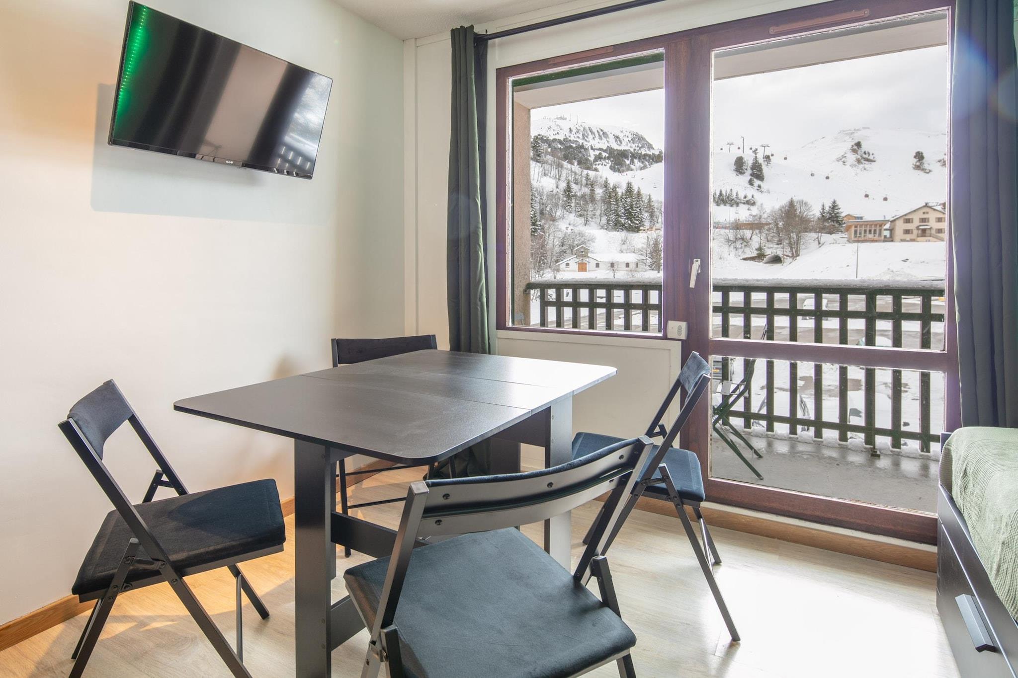 Dette indbydende bjergretræte på 20 m² i Chamrousse er perfekt for op til fire gæster og tilbyder et hyggeligt opholdsrum med to komfortable sovesofaer og et tv. Træd ud på den private balkon for at nyde en betagende udsigt over de omkringliggende tinder. Køkkenet er omhyggeligt udstyret med køleskab, mikroovn, brødrister, kedel, Senseo-kaffemaskine og endda et raclette-/fonduesæt - ideelt til at nyde varme måltider i alpestil. Et badeværelse med badekar og separat toilet øger komforten, mens ekstraudstyr som brætspil, skiopbevaring og væsentligt sengetøj gør dit ophold problemfrit. Bekvemt beliggende kun 200 meter fra skiløjperne, 700 meter fra skiskolen og 500 meter fra lokale butikker, placerer boligen dig lige i hjertet af handlingen. Et gratis shuttle-busstoppested kun 200 meter væk sikrer nem adgang til resortets faciliteter. Offentlig parkering er tilgængelig i nærheden, men plads er ikke garanteret. Valgfri tjenester såsom sengetøj, håndklæder og slutrengøring er tilgængelige mod et ekstra gebyr. Chamrousse er en elsket skidestination i de franske alper, der tilbyder 90 kilometer pister på tværs af tre adskilte områder: Chamrousse 1650, 1700 (Village du Bachat) og 1750 (Domaine de l'Arselle). Ud over skiløb og snowboarding byder resortet på spændende aktiviteter som snesko, hundeslædekørsel, alpinscootere og Mountain Karting på Deval'Park. For en hyggelig aften ude kan du nyde det traditionelle alpine køkken på La Pierre Chaude, en lokal favorit kendt for sin varme stemning og solide retter.