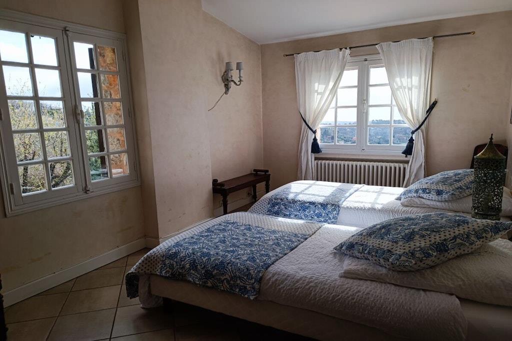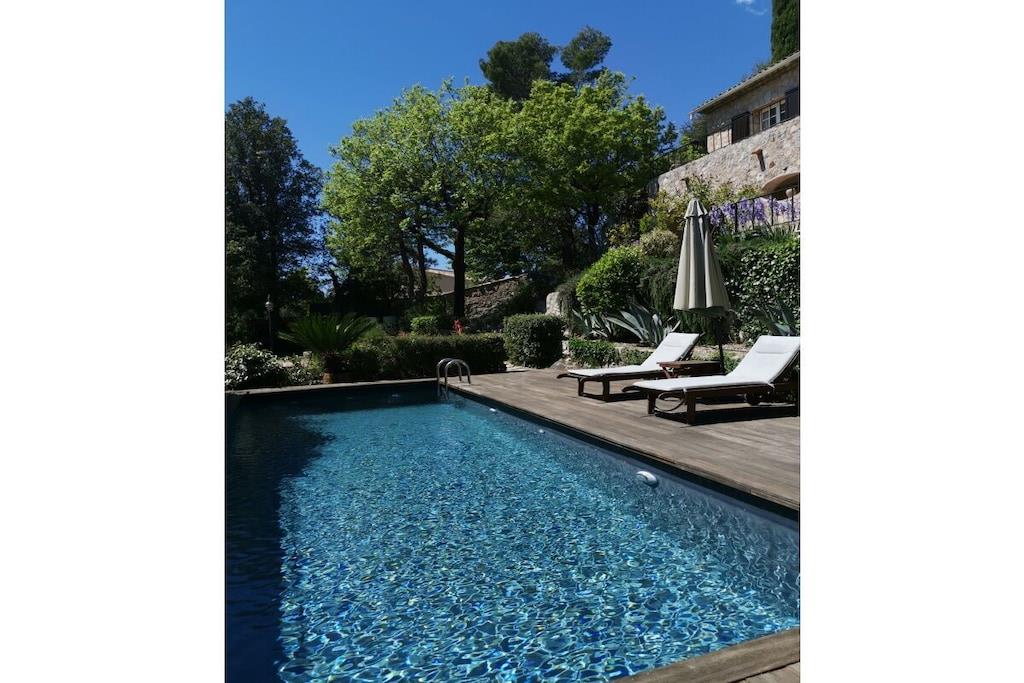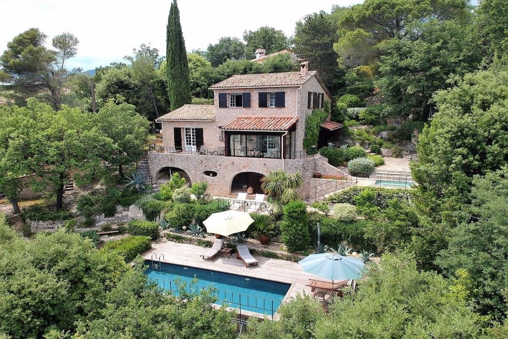 Dieses wunderschöne Haus befindet sich auf einem 3000 qm großem, idyllischem Grundstück. Durch die Hanglage hat man einen atemberaubenden Blick ins Tal bis zur Küste der Cote d azur. Das Steinhaus liegt unweit der Künstlerstadt St. Paul sowie Nizza oder Cannes. Der Whirlpool und der Swimmingpool begeistern mit einem Panoramablick auf das Meer und auf die Landschaft. Die 150qm Wohnfläche bieten Raum für 6 Personen. Es verfügt über 3 Schlafzimmer, 2 Bäder, 1 Bd,1 extra WC .Das 40 qm grosse Wohnzimmer hat einen Zugang zum traumhaften Wintergarten und zur Sonnenterrasse. Des weiteren gibt es einen bespielbar en Flügel und einen Kamin