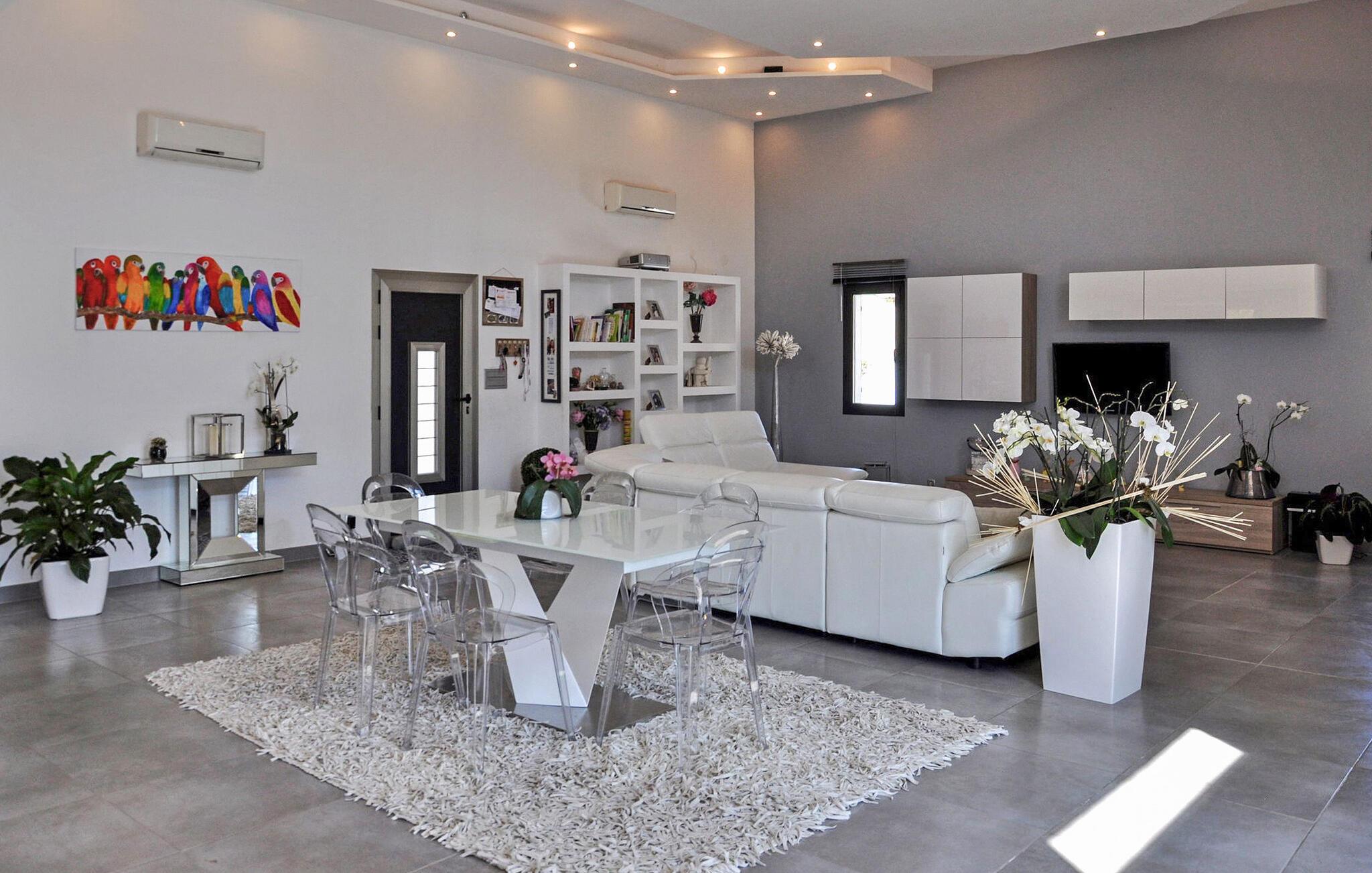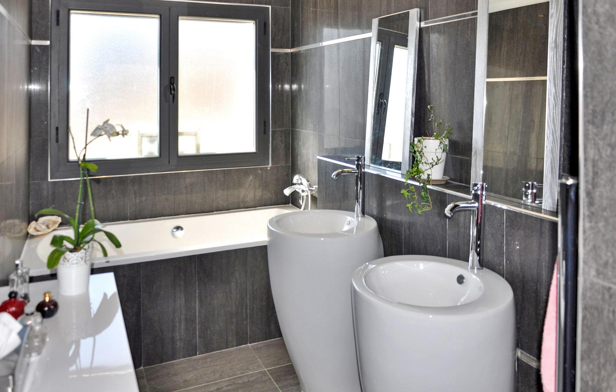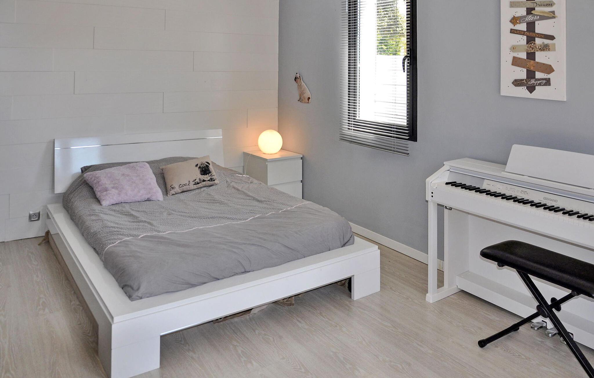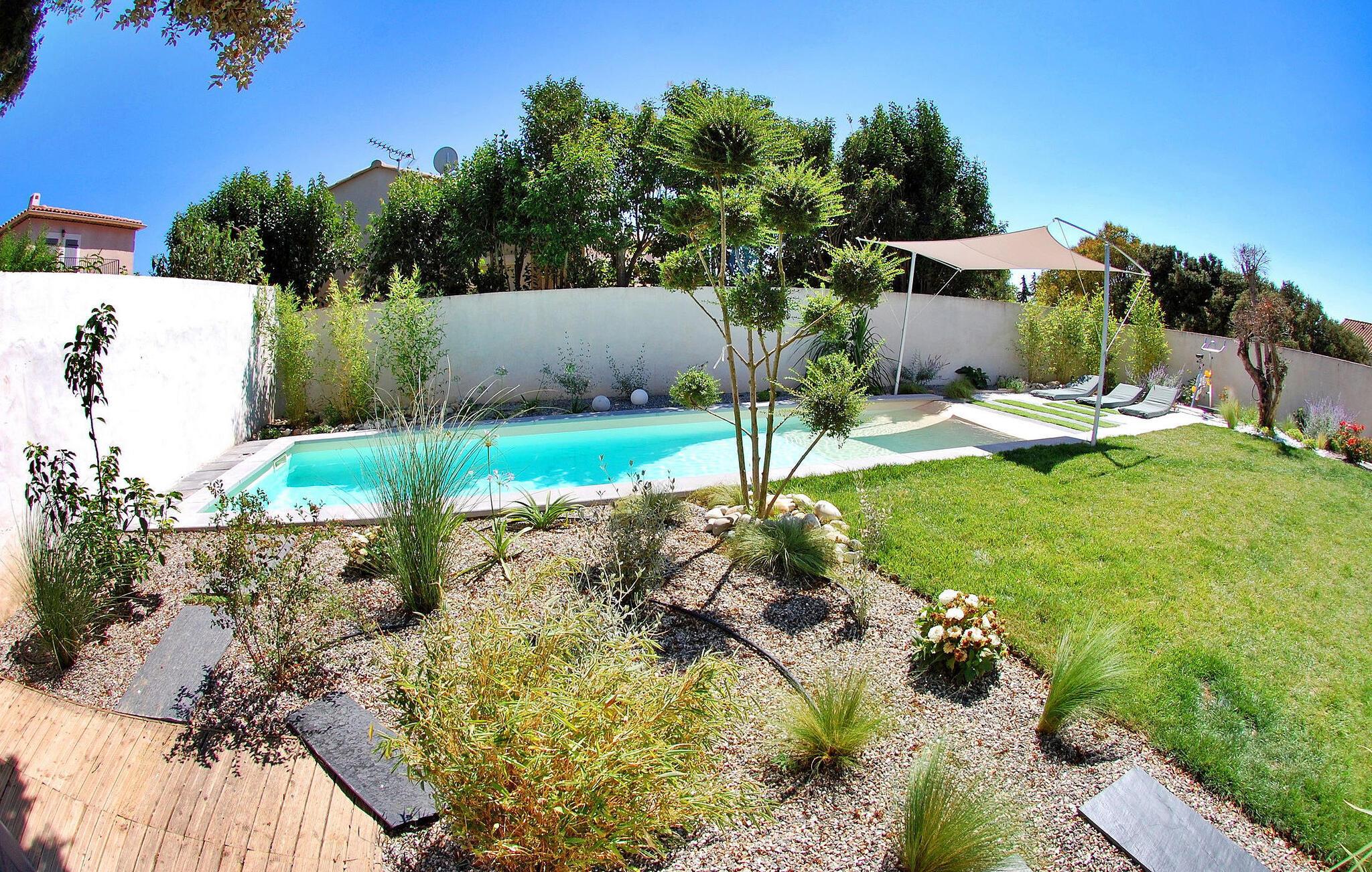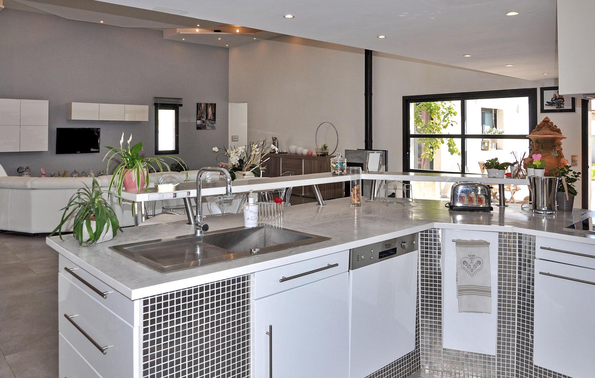 Beliggende i Châteaurenard, dette feriehus er ideelt placeret 1 km fra byens centrum og tilbyder moderne interiør, aircondition og en dejlig have ledsaget af en privat pool. Villaen strækker sig over to plan. Stueetagen integrerer problemfrit et åbent køkken med stue/spisestue, hvor der er en karnap med adgang til terrassen. Tre soveværelser på dette niveau tilbyder komfort og adgang til det fri. Den øverste etage huser det sidste soveværelse og badeværelse, på en sikret mezzanin. Udendørs kan villaen prale af en godt lukket have, der er tilgængelig via en elektrisk indgangsport. Den skyggefulde terrasse har en spiseplads sammen med en havelounge, en bar, elektrisk grill, plancha og brødovn. Terrassen har udsigt over haven og den private pool (9m x 3m, dybde 0,30 m til 1,40 m) og en rolig udsigt. Villaen ligger i et kvarter i udkanten af byen Chateaurenard, for enden af en blind vej. Fra Châteaurenard opdager du nemt de vigtigste seværdigheder i Provence: Alpilles, Camargue eller Luberon og den smukke by Avignon. Andre interessante steder at besøge inden for en radius af 50 km: Les Baux de Provence, Arles, Tarascon, Fontvieille, Fontaine de Vaucluse, loppemarkederne på Isle sur Sorgues, Gordes, Bonnieux. Bemærk venligst, at der er aircondition i opholdsstuen og tre af de fire soveværelser.