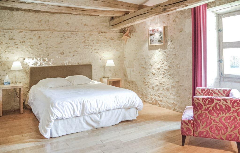 På en bakke med udsigt over landskabet i nærheden af Azay-le-Rideau står feriehuset, bygget i det 15. århundrede, ved siden af ejerens slot fra det 17. århundrede. Feriehuset har stadigvæk mange originale dele, en imponerende trappe, fritlagte bjælker og trægulv. Indretningen er komfortabel og nogle antikviteter i huset. På ejendommen, 30 ha., findes der skove, haver og store græsplæner. Loire-dalen ligger nærved med slottene Azay, Ussé, Villandry, Chinon og Tours. I området er der over 100 cykelstier ved flodbredden, cykler kan lejes. Hjemmelavet mad kan bestilles. Heste og æsler på stedet. Bondegård i drift. Stejl trappe uden gelænder.