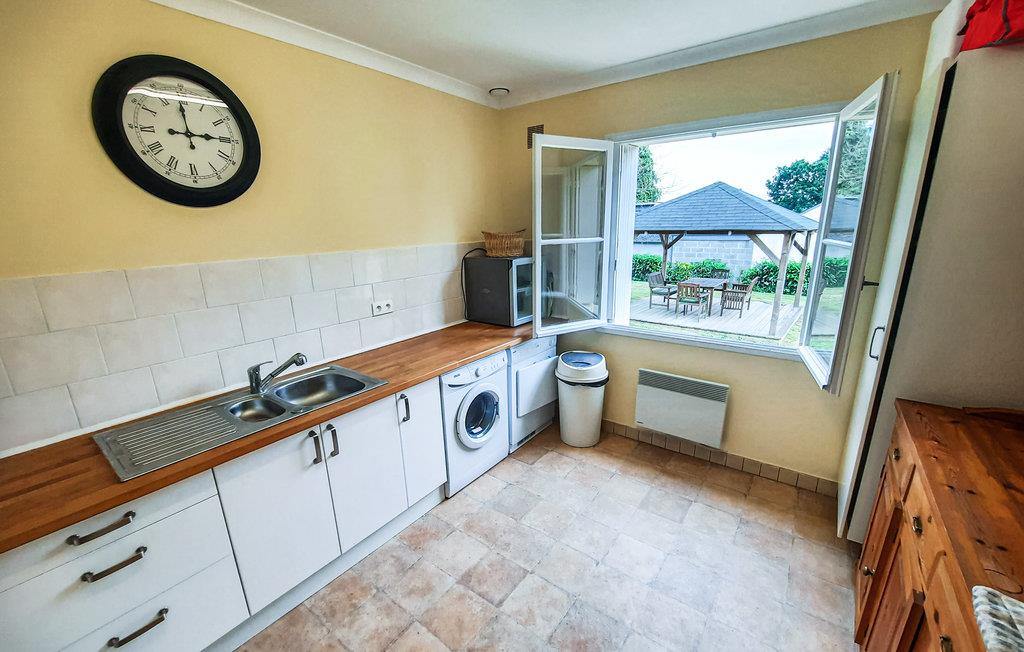 Nyd en pause i rolige omgivelser, og læg hverdagen bag jer. I opholds- og spisestuen finder I en indbydende siddeplads med sofaer og lænestole, der indbyder til læsning eller at se fjernsyn sammen. Arranger hyggelige spilleaftener ved spillekonsollen, og nyd måltider ved det store spisebord, som er som skabt til hyggeligt samvær. I husets køkken kan I nemt tilberede jeres yndlingsretter. Åbn vinduerne, og lad blikket glide ud i haven, mens I laver mad.