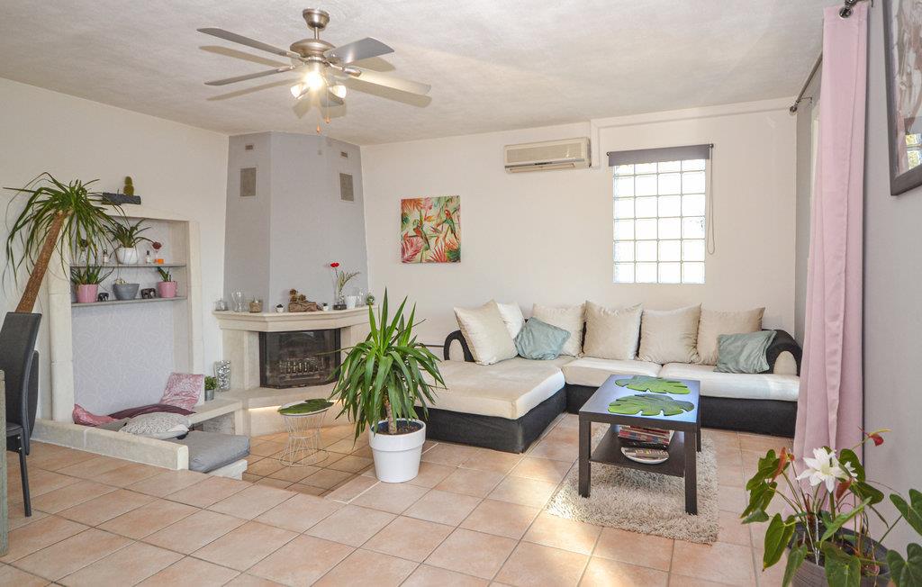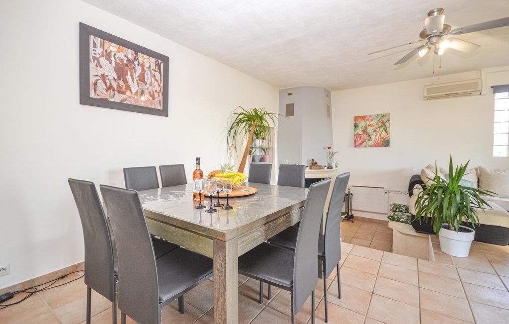 Glæd jer til en ferie i dette sommerhus i et roligt område, og nyd udsigten over bakkerne fra husets overdækkede terrasse. Der er masser af plads - både i den indhegnede have, de 3 soveværelser og to badeværelser, hvoraf det ene har badekar, og desuden to gæstetoiletter. Køkkenet er åbent ind til stuen og virker dejlig lyst. Fra vinduerne er der udsigt over poolområdet.