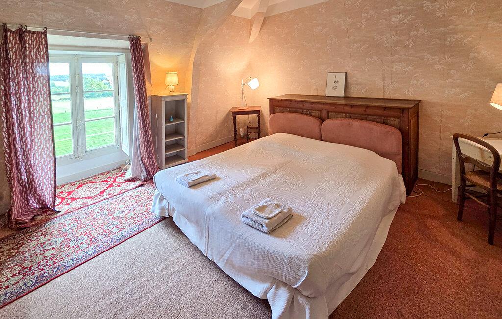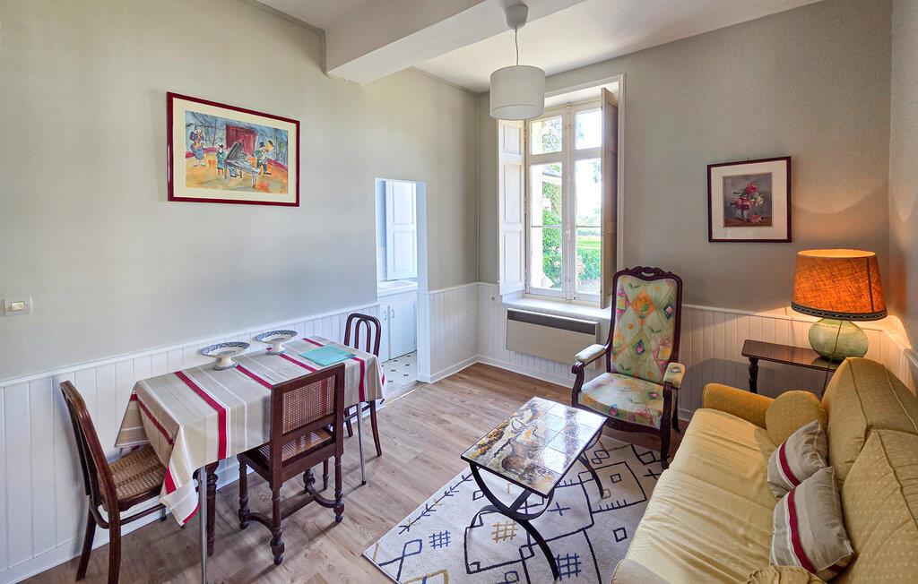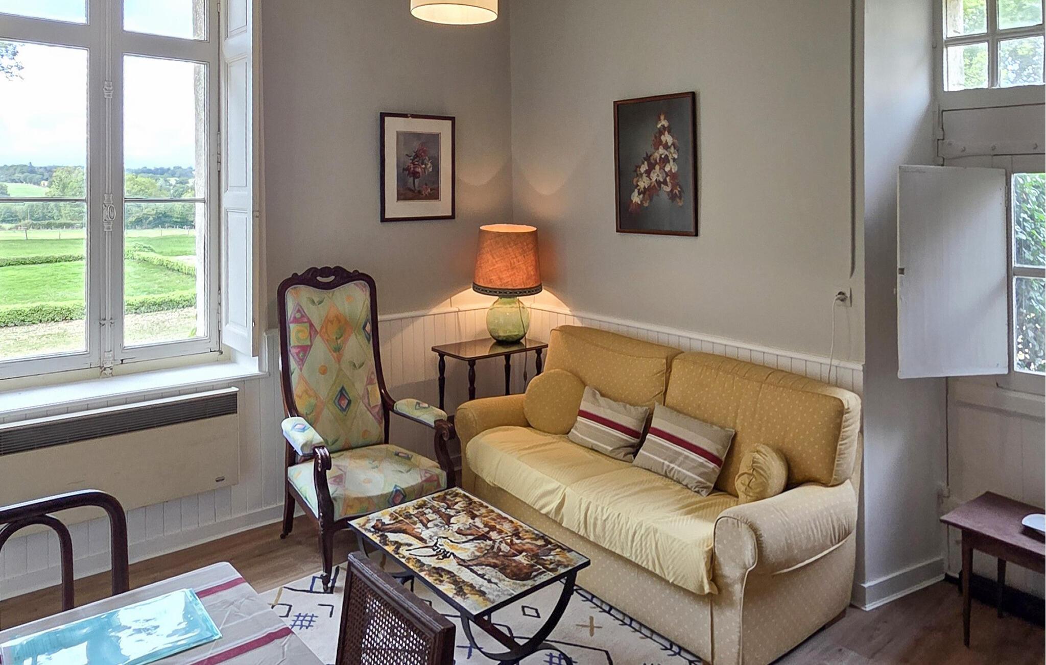 Tilbring en afslappende pause fra hverdagen i et historisk klokketårn, der er en del af et slot, men har sin egen private indgang. Her kan I nyde roen og den åbne natur i den omkringliggende park og opleve den særlige atmosfære i denne ejendom. Opholdsstuen er indrettet med klassiske møbler, et spisebord og en hyggelig siddekrog med udsigt til haven. Den rustikke indretning fremhæver bygningens historiske karakter.