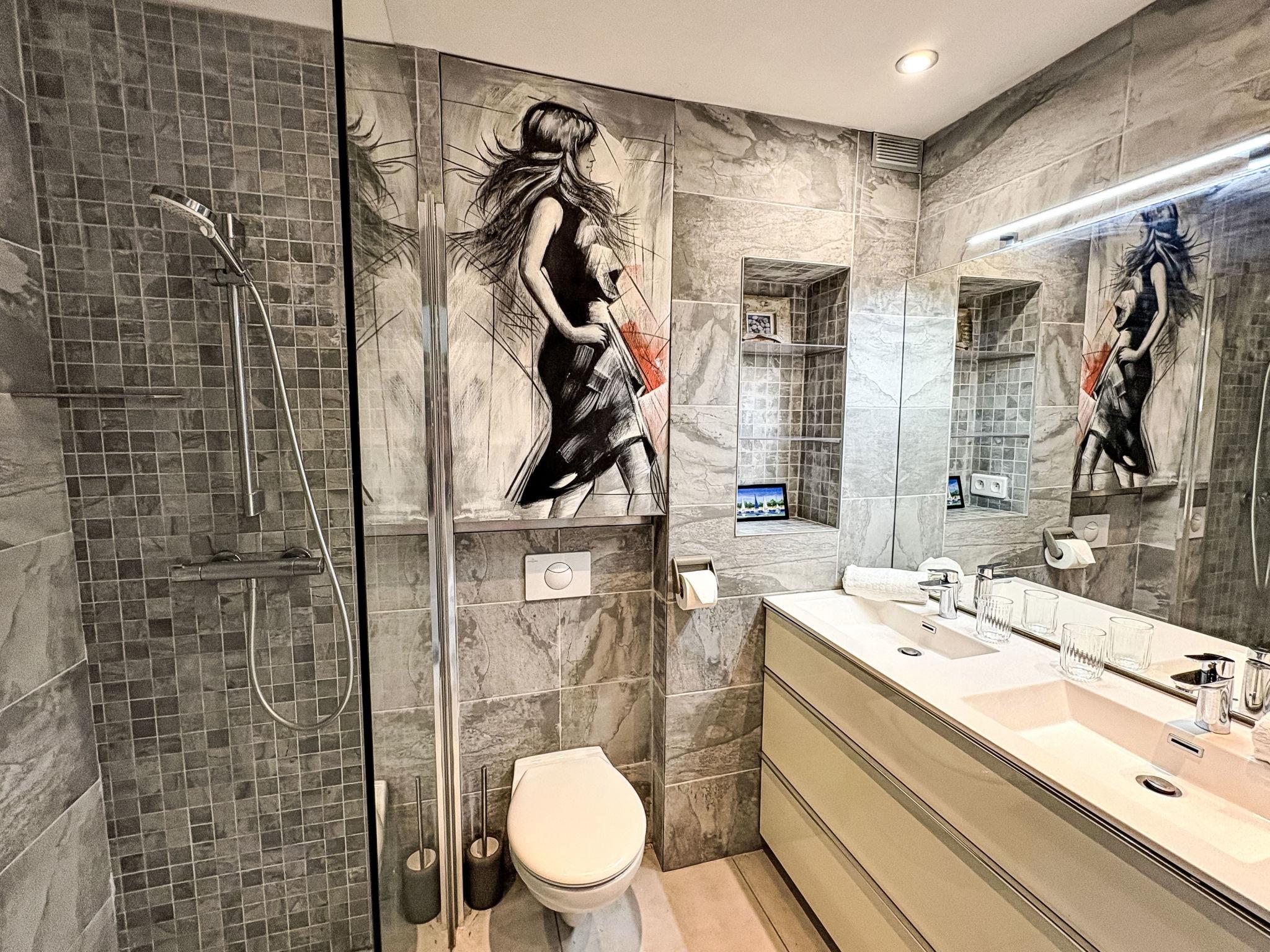 "Les Cascadelles 14", 1-room studio 28 m2 on 4th floor. Cosy furnishings: living/dining room with 1 sofabed (140 cm, length 190 cm), 1 fold-away bed (140 cm, length 190 cm), TV (flat screen). Open kitchen (dishwasher, 3 induction hot plates, toaster, kettle, freezer, electric coffee machine, Capsules for coffee machine (Nespresso) extra, combination microwave). Shower/WC. Electric heating. Beautiful view of the port. Facilities: washing machine. Internet (WiFi, free). Please note: non-smokers only. Maximum 1 small pet/ dog allowed. Smoke alarm. Offer by a private individual according to Art. 155, IV of CGI.