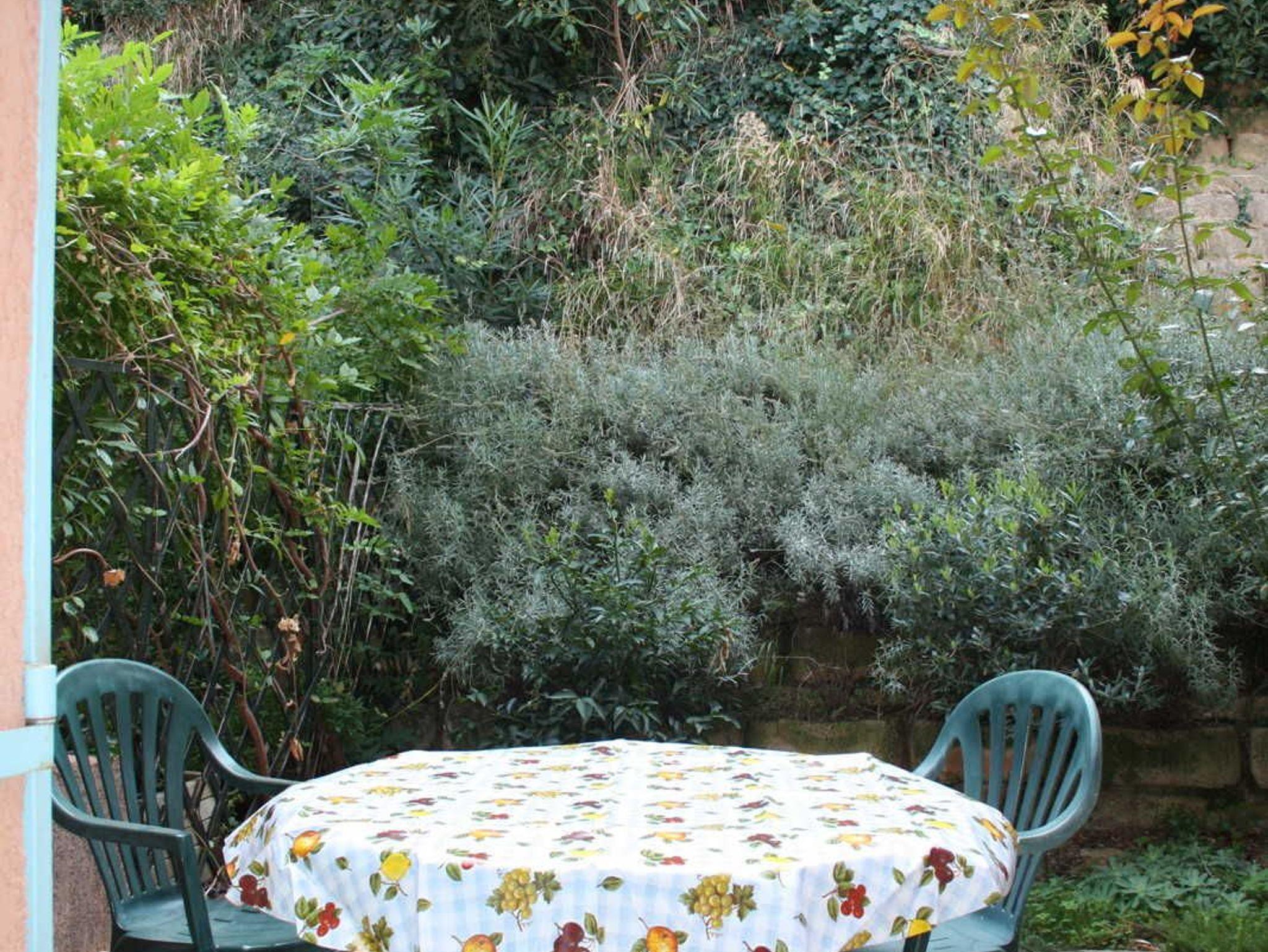 Es gibt zwei Terrassen: Eine kleine hinter dem Haus, die an die Küche angrenzt, und eine größere Terrasse vor dem Haus mit einen wunderschönen Blick auf Grimaud.