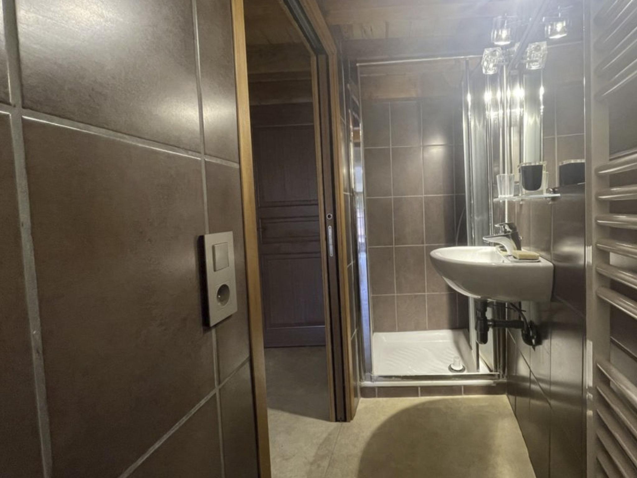 This fully-equipped apartment was completely refurbished in early 2010 and comprises an entrance hall leading to a large living room with a modern Arthur Bonnet fitted and equipped kitchen with granite worktop, a multitude of cupboards, SEB electric induction hob with 2 burners, pressure cooker, toaster, electric coffee maker, microwave oven with grill, electric extractor hood, granite dining table, toilet with shower cubicle and tiled enclosed WC. In the living room, colour DTT flat-screen TV, BZ 140 sofa bed for 2 people + 1 BZ 140 sofa bed on the mezzanine floor for a second bed for 2 people + 1 bed in a niche 80 cm wide for 1 person. Storage area, hoover, iron and ironing board. Surface area 36.54 m2.
