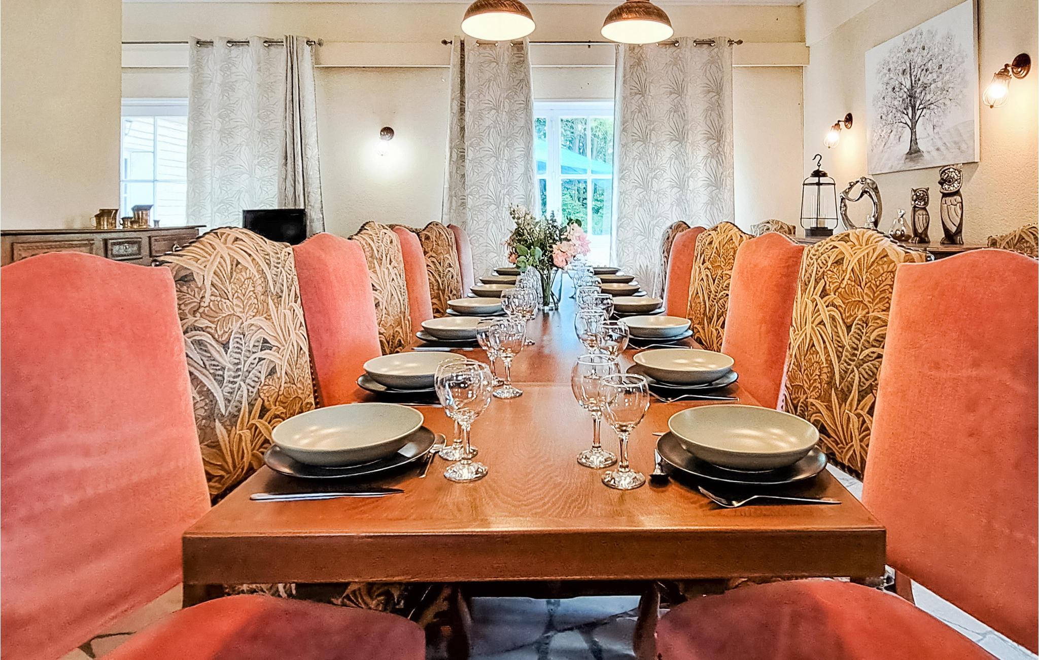 En smuk symbiose af moderne og klassiske elementer, dette skønne og rummelige feriehus tilbyder jer og jeres gruppe af venner og familiemedlemmer en beroligende atmosfære. en lang række soveværelser tilbyder jer afslappende nætter og lægger op til at mødes i fællesrummene og slappe af, mens I laver mad, leger eller slapper af. Det familievenlige er et paradis for jeres børn. De store græsplæner lægger op til at løbe rundt, mens I kan nyde solen og dagens måltider på den sydvendte terrasse.
