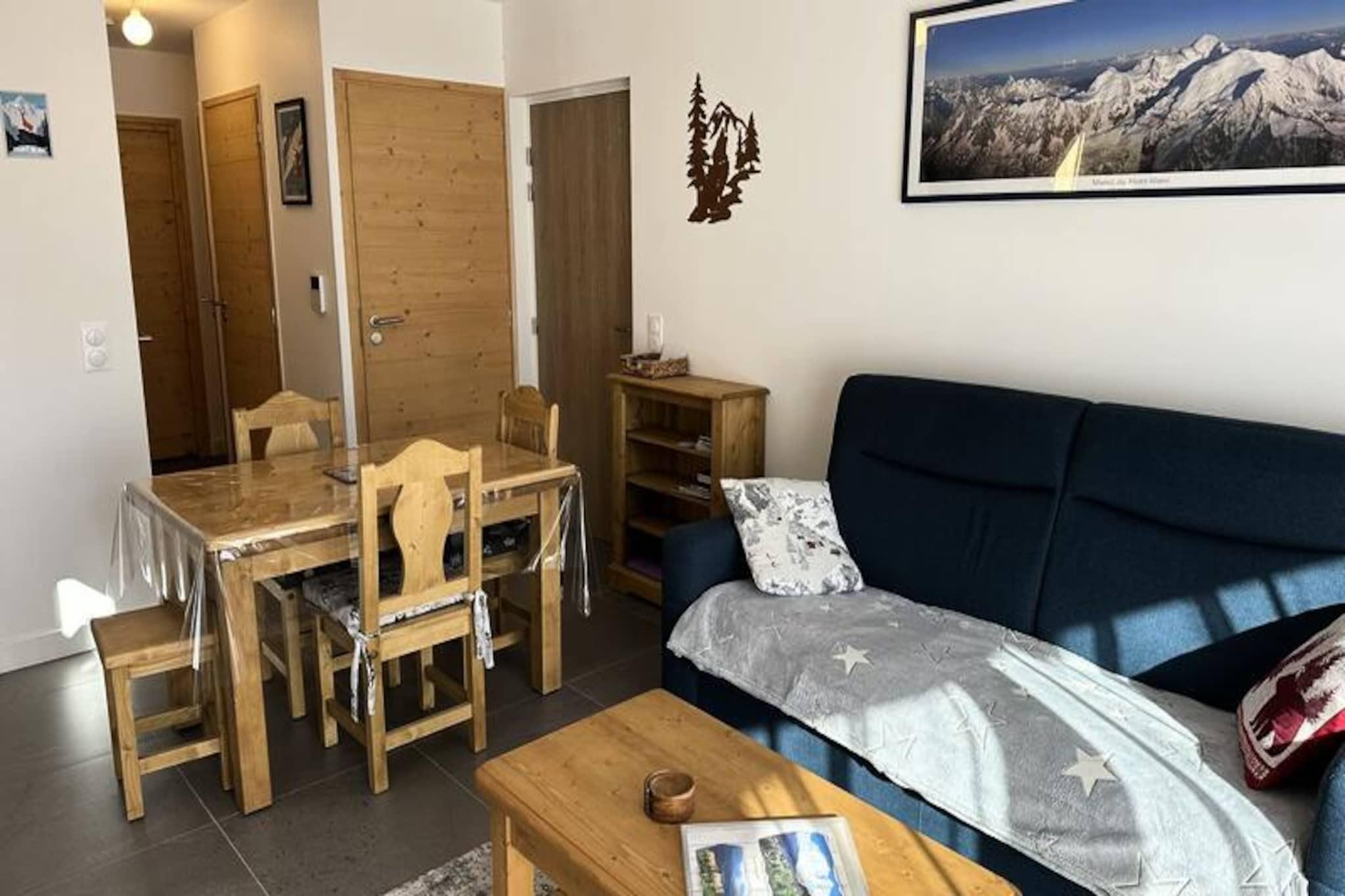 Omgivet af de franske alpers betagende skønhed tilbyder denne charmerende lejlighed i Chalet Flore-residensen en rolig oase kun 1 km fra den maleriske landsby Combloux. Med sin syd-/vestvendte balkon kan gæsterne nyde den fantastiske udsigt over bjergene, mens de nyder den friske alpeluft. Denne 48 m² store 3-værelses lejlighed er perfekt til familier eller venner, der søger et hyggeligt tilflugtssted, og kombinerer komfort og bekvemmelighed for en uforglemmelig ferieoplevelse. \n\nIndvendigt er lejligheden omhyggeligt designet til at rumme op til fire gæster. Stuen har en komfortabel dobbeltsovesofa, et tv og en spiseplads, hvilket skaber et indbydende rum at slappe af efter en dag med udforskning. Det åbne køkken er fuldt udstyret med moderne apparater, herunder køleskab/fryser, ovn, keramisk kogeplade, opvaskemaskine og vaskemaskine, hvilket gør madlavning til en leg. Sovearrangementet omfatter et soveværelse med en køjeseng og en master suite med en 160 cm dobbeltseng, hvilket sikrer afslappende nætter for alle. Yderligere faciliteter såsom Wi-Fi, skiboks og privat overdækket parkering gør dit ophold endnu mere behageligt.\n\nDenne lejlighed ligger kun 4 km fra skiløjperne og er en ideel base for vintersportsentusiaster. I de varmere måneder forvandles Combloux til et paradis for vandrere og naturelskere med stier, der fører til panoramaudsigter og frodige alpine enge. Selve landsbyen byder på charmerende butikker, traditionelle restauranter og en varm og imødekommende atmosfære, der indfanger essensen af ??det franske bjergliv.\n\nUanset om du er her for at klatre gennem pudrede pister eller for at slappe af midt i fantastiske naturlandskaber, tilbyder denne lejlighed den perfekte blanding af komfort, beliggenhed og alpin charme. Skab varige minder i hjertet af Alperne, hvor hvert øjeblik føles som et postkortværdigt eventyr.