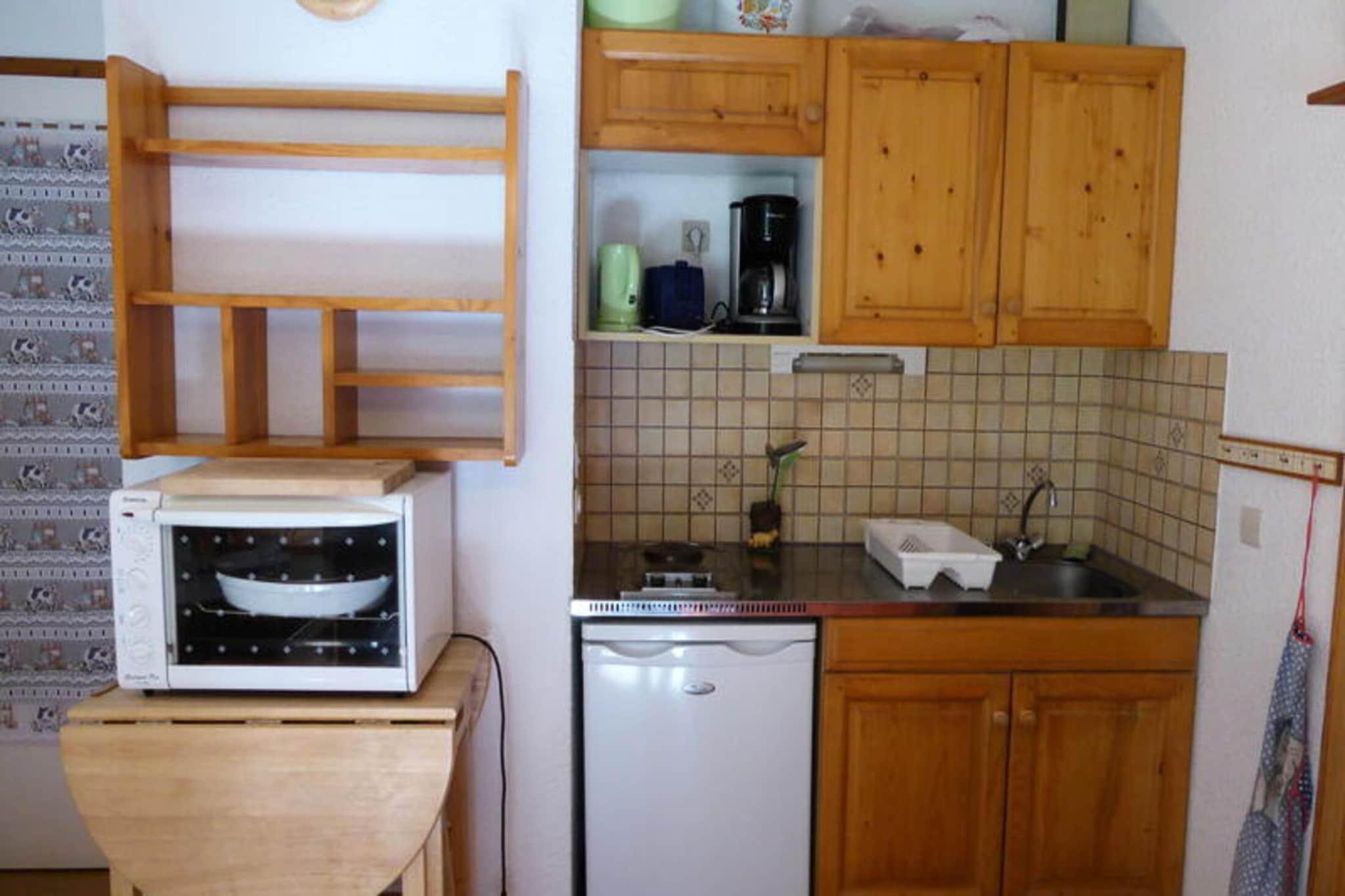 Denne charmerende 34 m² store 3-værelses lejlighed i Combloux er ideel til en familie eller gruppe af venner med plads til op til 6 personer. Lejligheden ligger i stueetagen i en bygning i L'Ecrin Des Glacier Daim-residensen og nyder en sydlig eksponering med en privat terrasse. Stuen er udstyret med en 140 cm sovesofa, et fjernsyn og en spiseplads, hvilket giver rigelig plads til afslapning og måltider. Køkkenet har grundlæggende faciliteter såsom 2 elektriske kogeplader, et køleskab og en miniovn til praktisk tilberedning af måltider. Boligen ligger 600 m fra Mowgli-skiliften og pisterne, hvilket gør den til en god base for skiløbere og snowboardere. Landsbyens centrum af Combloux, med sine charmerende butikker og restauranter, ligger 3 km væk. Der er også mulighed for tennisundervisning i området. Denne fredelige beliggenhed giver gæsterne et roligt miljø, mens den stadig er tæt på feriestedets vigtigste attraktioner. Gæsterne kan nyde både den naturlige skønhed i omgivelserne og bekvemmeligheden ved nærliggende tjenester. For ekstra komfort inkluderer lejligheden puder, dyner, tæpper og service. Husholdningsprodukter leveres dog ikke.
