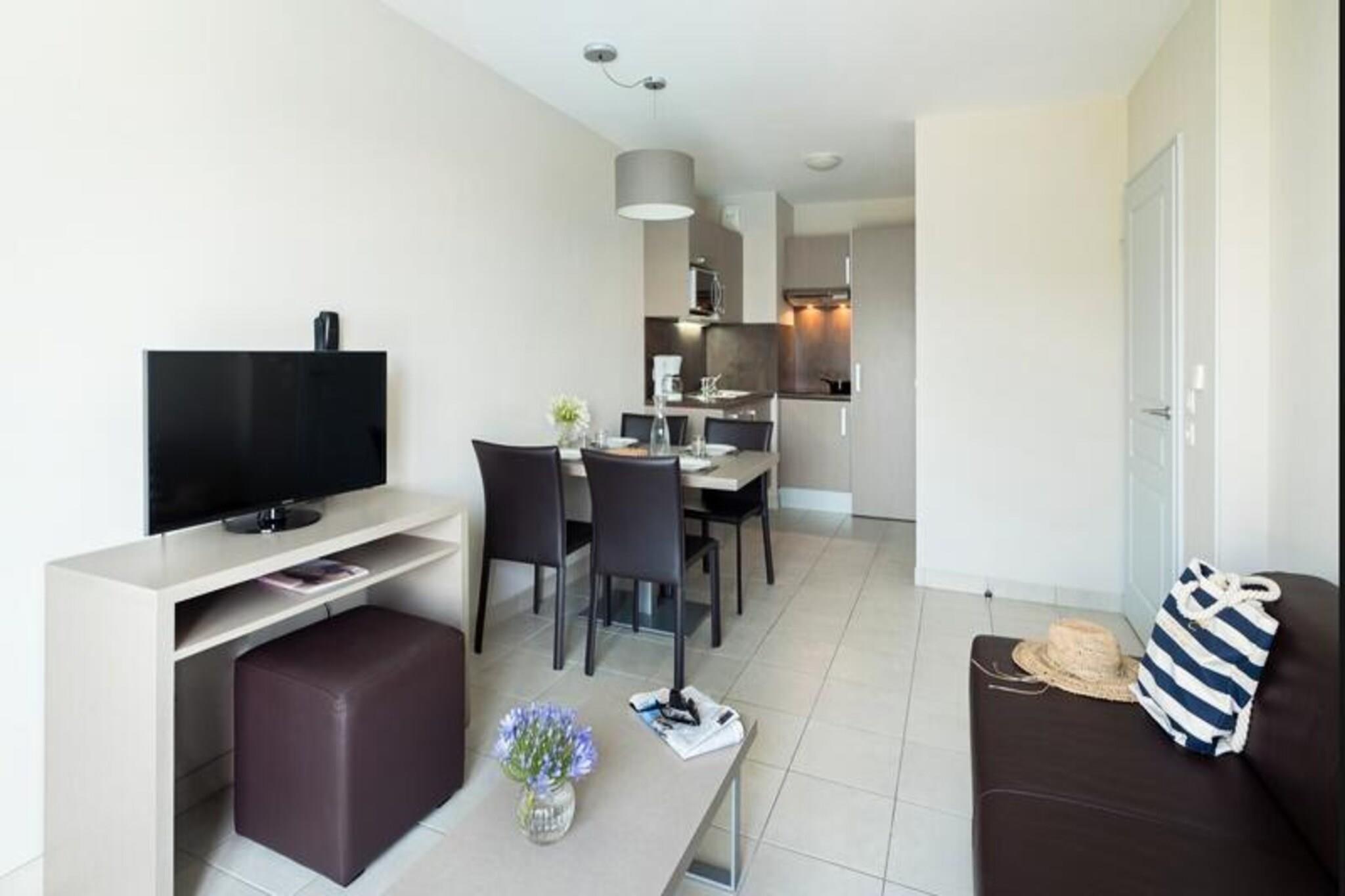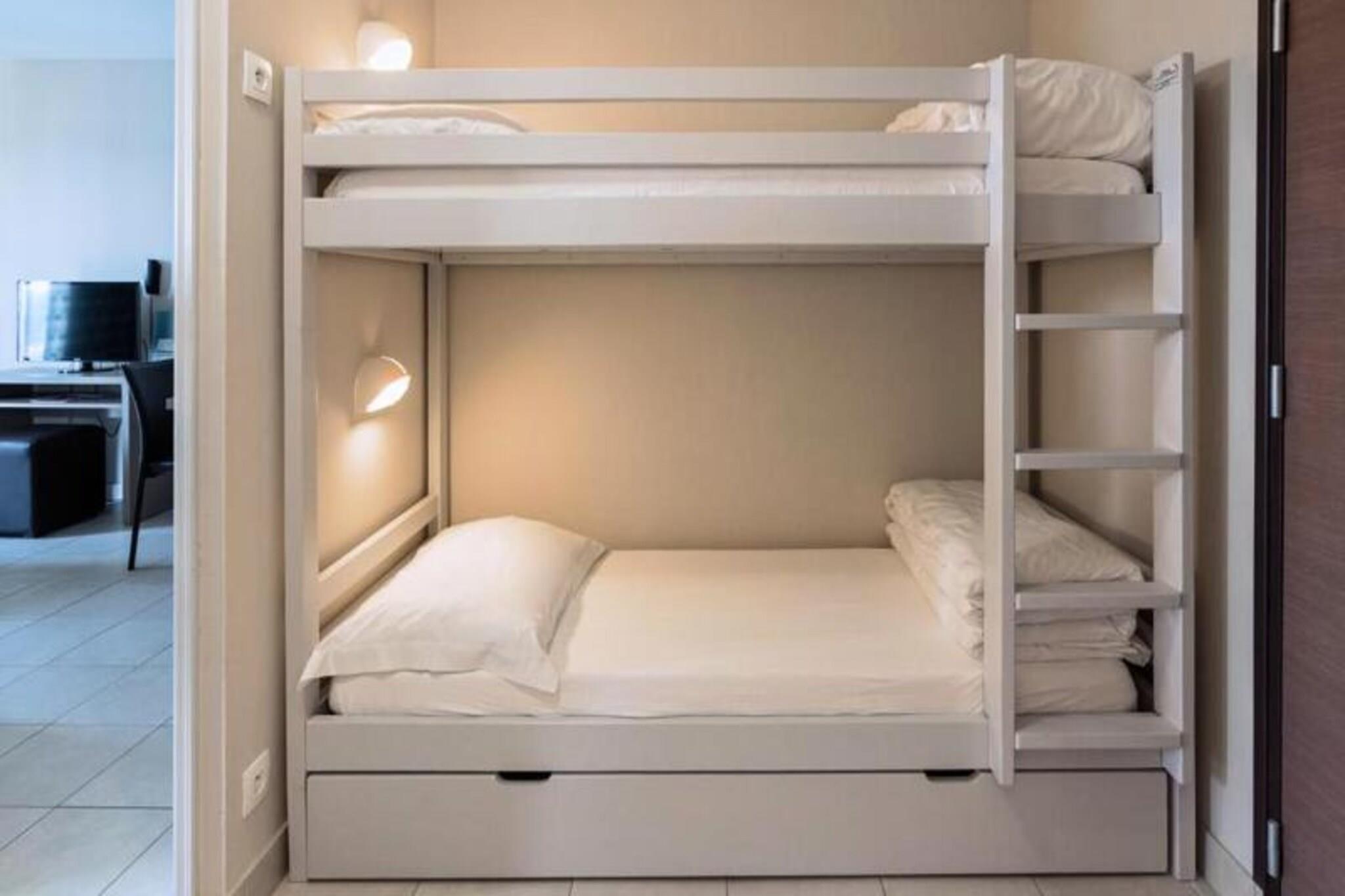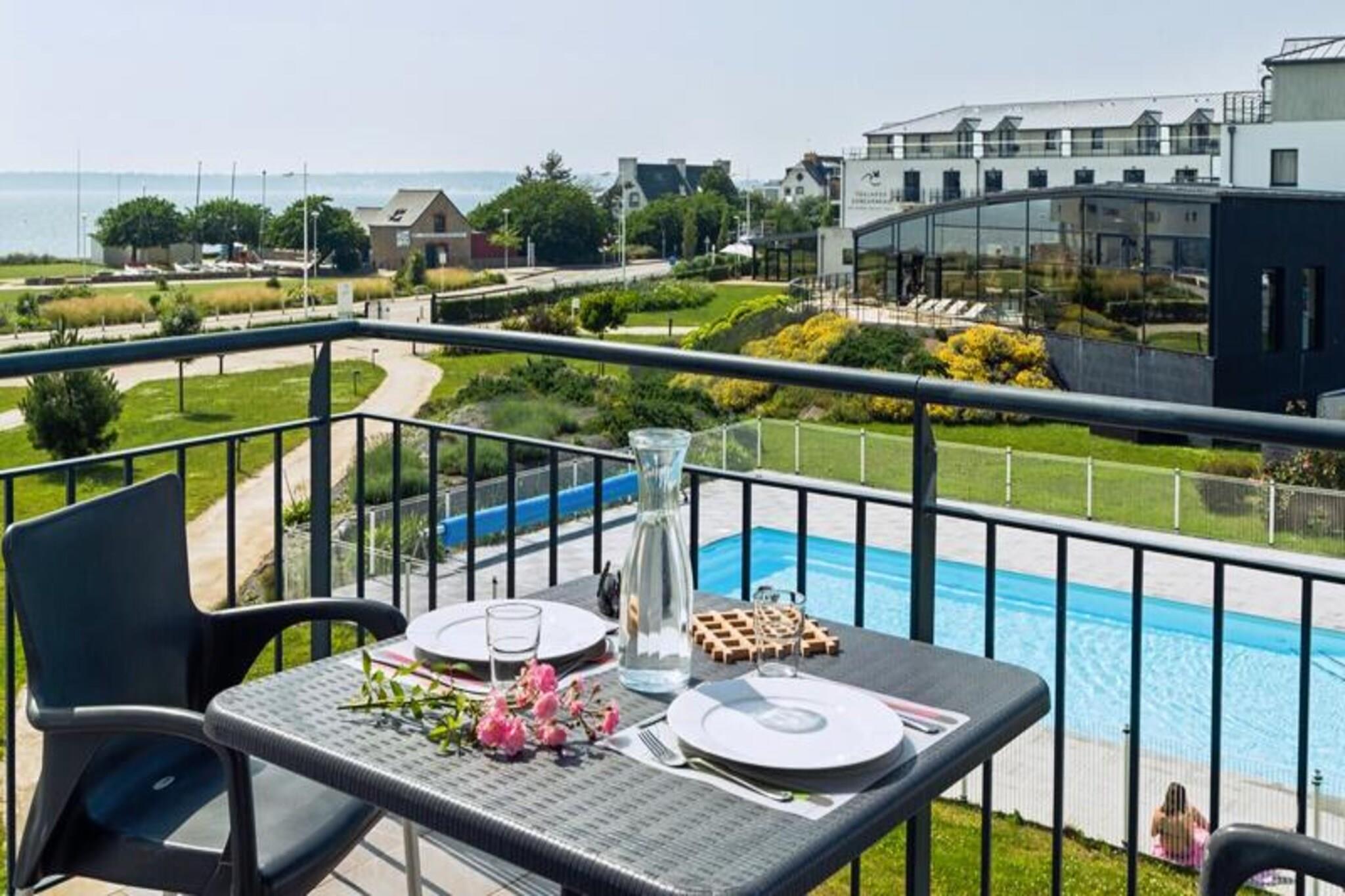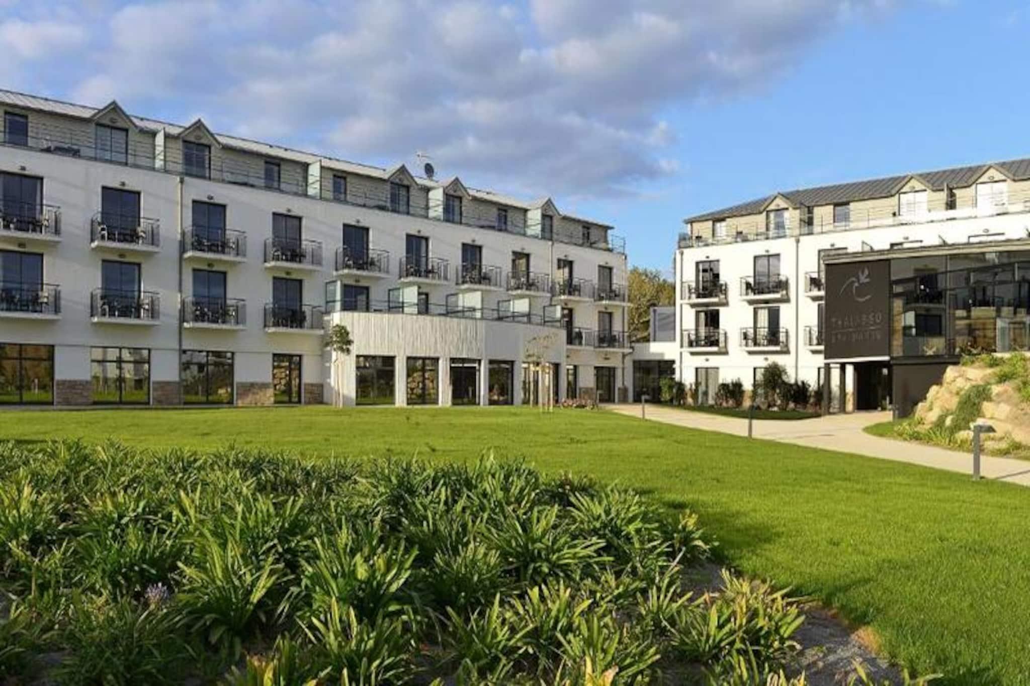 Résidence Thalasso Concarneau**** vender ud mod Sables Blancs-stranden og byder dig velkommen i hjertet af en af ??de smukkeste bugter i Bretagne for et fredeligt og fredeligt ophold ved havet. Dens nærhed til stranden og dens storslåede udsigt over havet vil forføre dig! Under dit ophold vil du have følelsen af ??at være i hjertet af en kokon af blødhed, hvor alt er designet til dit velvære. Du kan nyde adgang til Thalasso (fra 14 år) og kan bruge Residences opvarmede udendørs swimmingpool, som du ønsker det. Residence tilbyder moderne, uafhængige lejligheder med terrasse eller balkon, hvoraf de fleste har en fantastisk udsigt over havet. Alle lejligheder byder på raffineret indretning og kvalitetsmøbler. 2 Værelser 2/4 Personer. Terrasse med side havudsigt. Ophold. Udstyret køkken. Soveværelse med dobbeltseng og 2 køjesenge. Separat badeværelse og toilet. Bemærk venligst: op til 4 personer (inklusive 2 børn) + mulighed for at tilføje en babyseng. Wifi adgang - gratis i lejligheder og i fællesarealer Husdyr tilladt - 14€ / nat / dyr Depositum (ekstra) - 400 Sengetøj - inkluderet Håndklæder - inkluderet Barneseng - gratis Slutrengøring - valgfrit, med en sats på 60€ (inkluderer køkkenområde, tallerkener og skraldespande). Parkering - lukket udvendigt og gratis Morgenmad - buffet: 17€ / person - på værelset: 20€ - barn: 8€ Swimmingpool - udendørs opvarmet i sæsonen (åben fra 15. juni til 15. september), forbeholdt beboere Turistskat (ekstra gebyr) - € betales på stedet efter gældende takster Fjernsyn - inkluderet i lejlighederne