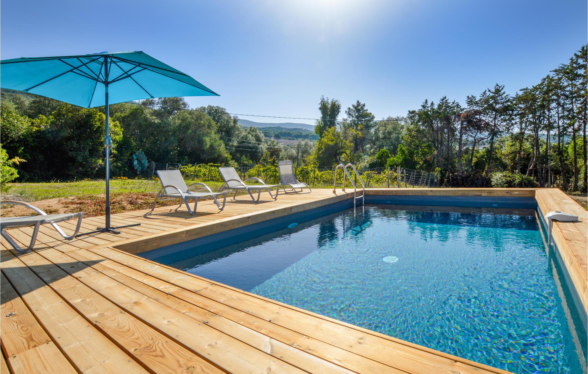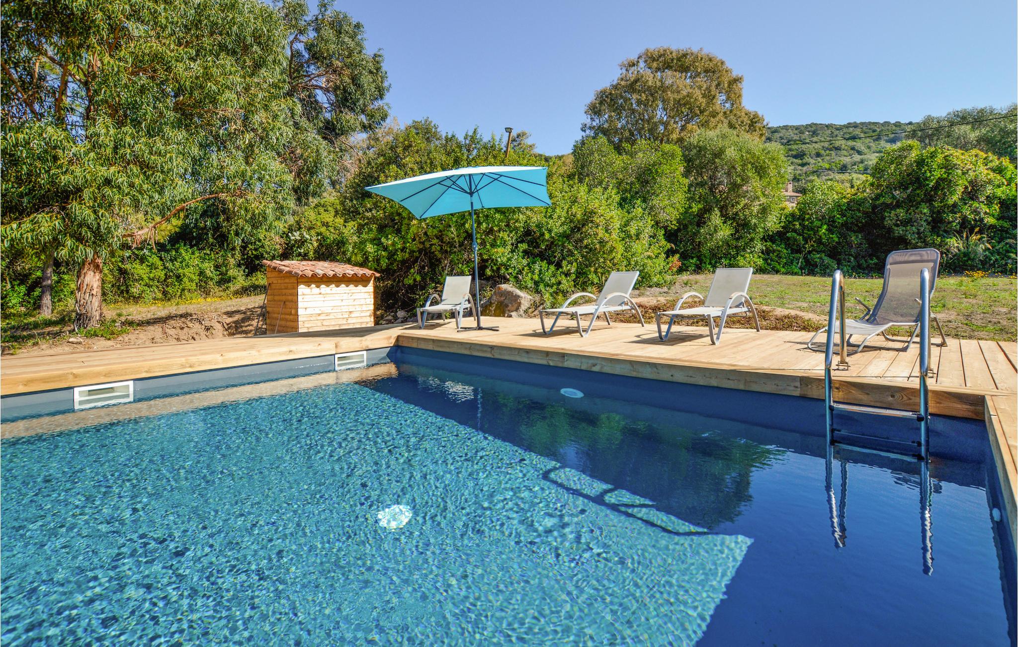 35 km fra Ajaccio og kun 3 km fra havet, indbyder dette store feriehus i typisk korsikansk stil til en uforglemmelig ferie. Huset ligger i en lille gammel bebyggelse med seks huse ogligger på en 3.000 m² stor lukket grund med udsigt over Ajacciobugten og Îles Sanguinaires (de blodrøde øer). Til huset er der både åben og overdækket terrasse. Chiavariskoven med eukalyptustræer, korkege og ruinerne efter et oprindeligt fængsel fra det 19. århundrede er et dejligt udflugtsmål. Der er ti km til den skønne halvø Capu di Muru du Conservatoire du Littoral. Halvøens spændende fortid afspejles af genuesertårnet, det historiske hus i typisk korsikansk stil og et kapel. Kysten fortryller med sine uberørte klippebugter og lange, hvide sandstrande og lægger op til afslappede badedage. På Îles Sanguinaires kan I opleve usandsynlige solnedgange og i Ajaccio er det oplagt at besøge Napoleons fødebolig og Palais Fesch. Der er fire km til butikker: bageri, dagligvare og butikker.