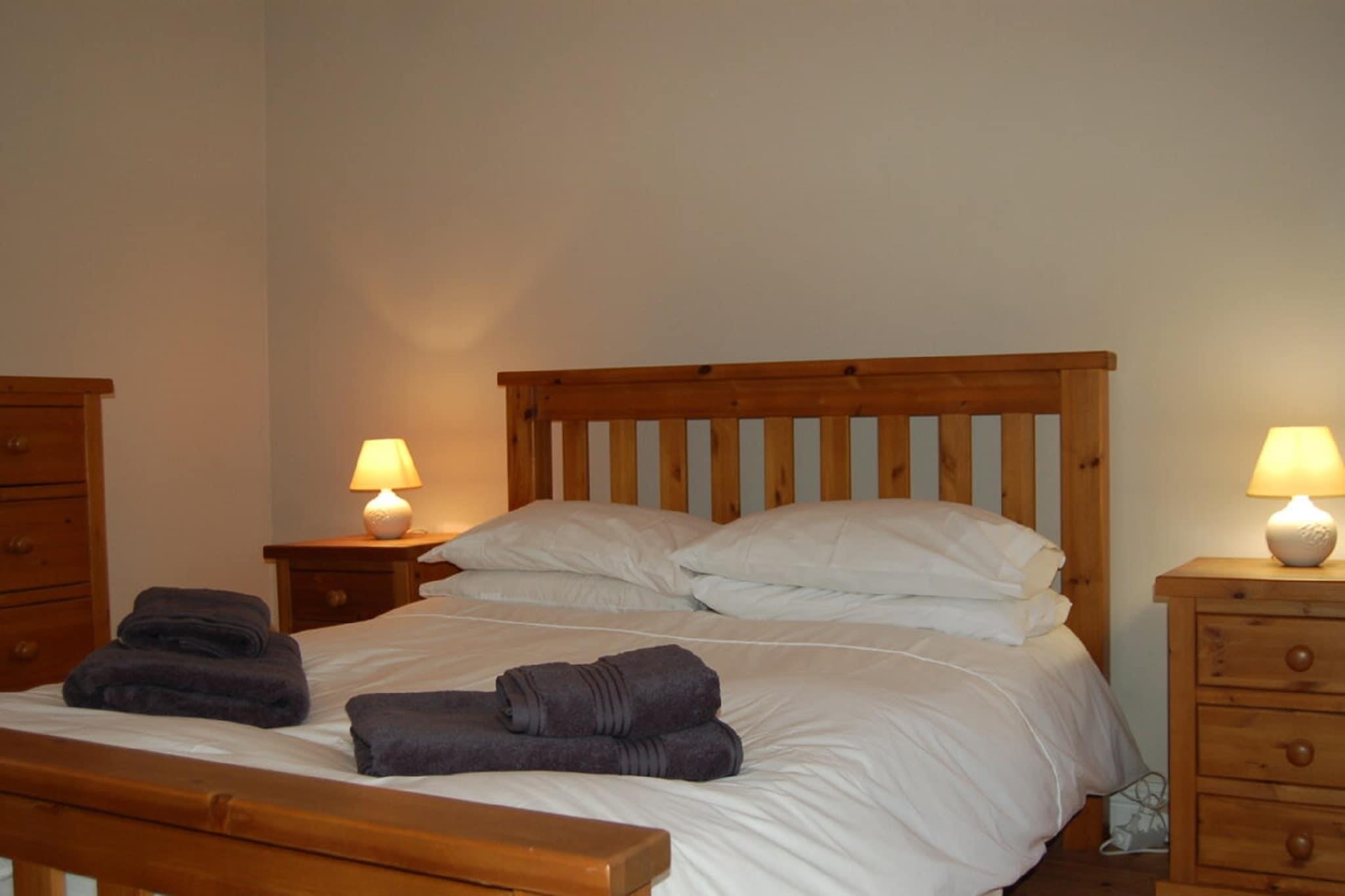 Stueetage: (Køkken(brødrister, komfur(elektrisk), emhætte, kaffemaskine, ovn, køle-fryseskab, vaskemaskine, strygebræt, strygejern), stue / spisestue(25 m2)(Fjernsyn, spisebord, pejs, sofahjørne, DVD-afspiller), soveværelse(enkeltseng, enkeltseng), soveværelse(dobbeltseng), badeværelse(bruser, håndvask, toilet)) spisebord(4 personer), tremmeseng, grill(trækul), parkering, barnestol