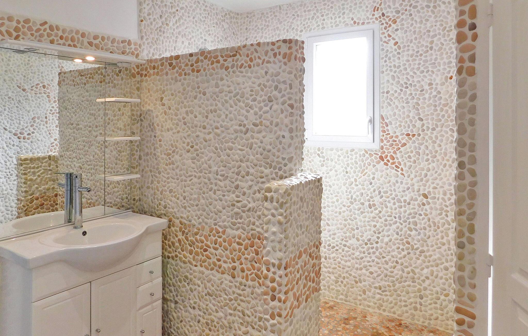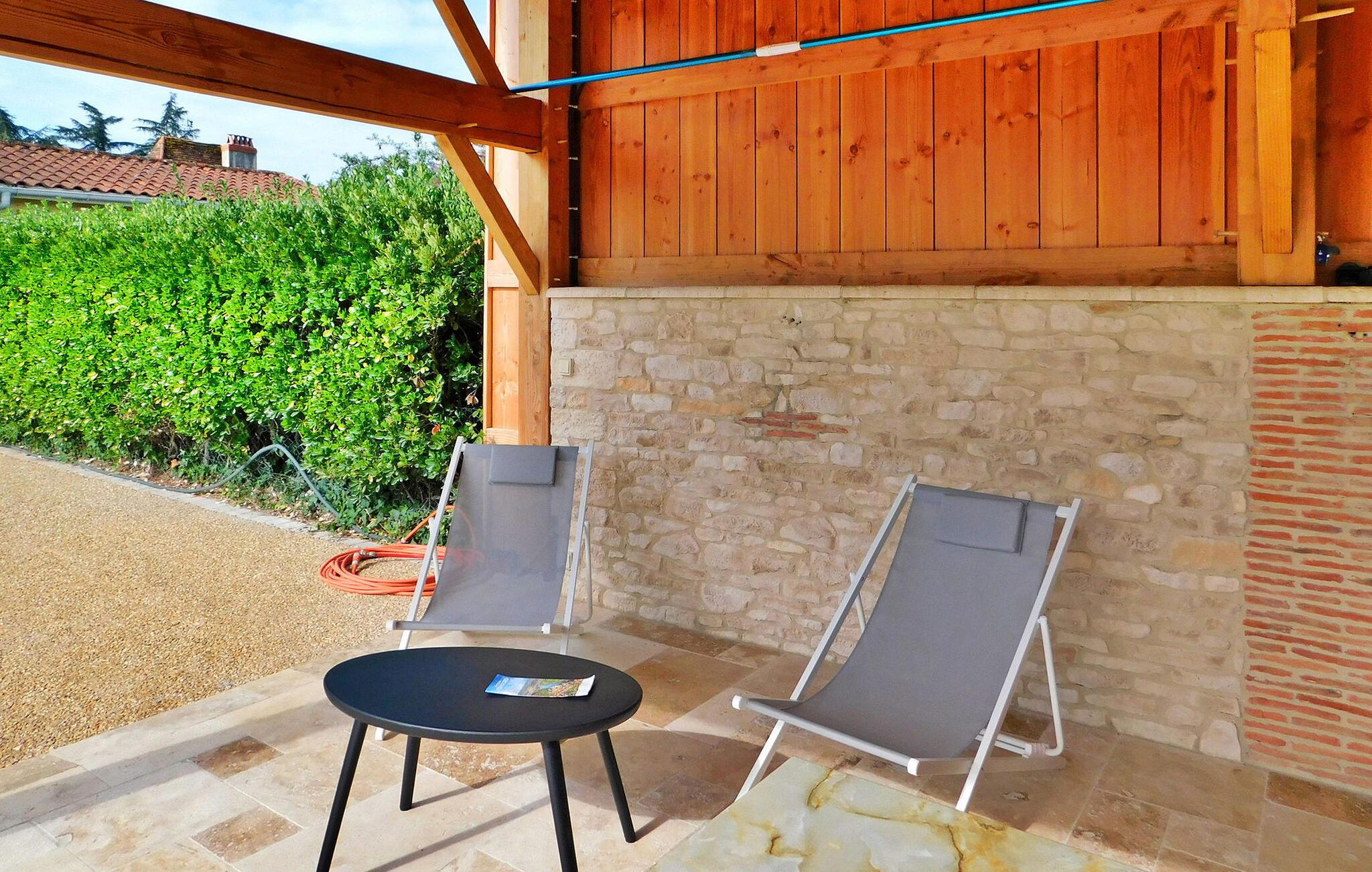 Dette feriehus i Perigord har en privat opvarmet pool, som ligger langs vinruten Bergerac lige uden for landsbyen Cours-de-Pile. Stueetagen består af en entré/opholdsstue med en komfortabel sofa og tv, der åbner ud til terrassen samt et veludstyret køkken/alrum. Derudover er der et soveværelse og et praktisk brusebad i stueetagen. Ovenpå indeholder et centralt åbent rum et andet opholdsområde med sofa og tv, to soveværelser. Det udendørs rum har en privat opvarmet swimmingpool med dimensioner på 7,5m x 3,6m og en dybde på 1,6m, sikret med en elektrisk lukker. Et poolhus tilbyder faciliteter såsom en vask, køleskab og en gasplancha. Adgang sker gennem en fjernstyret elektrisk port, der giver parkeringsplads til op til tre køretøjer. Feriehuset er beliggende nær en vej i udkanten af landsbyen Cours-de-Pile, hvor alle nærbutikker kan nås inden for 5 minutters gang. Flere butikker i Creysse (5 km) eller Bergerac (8 km).
