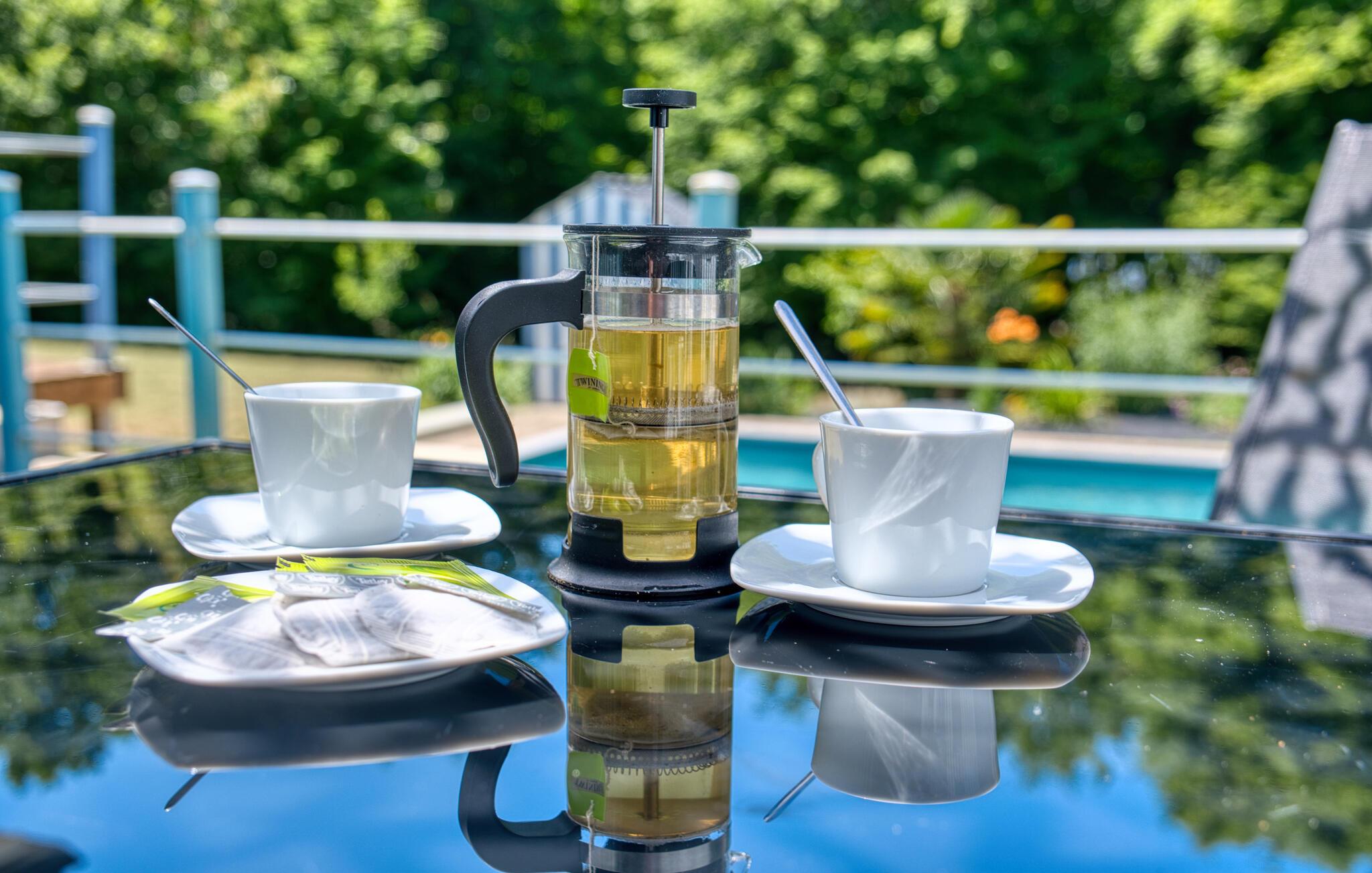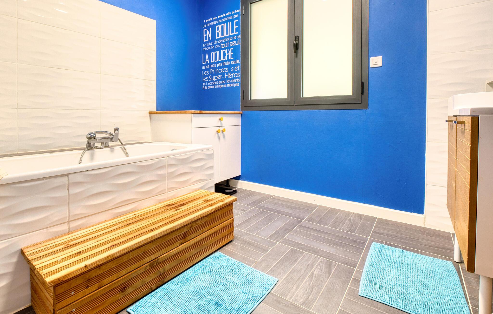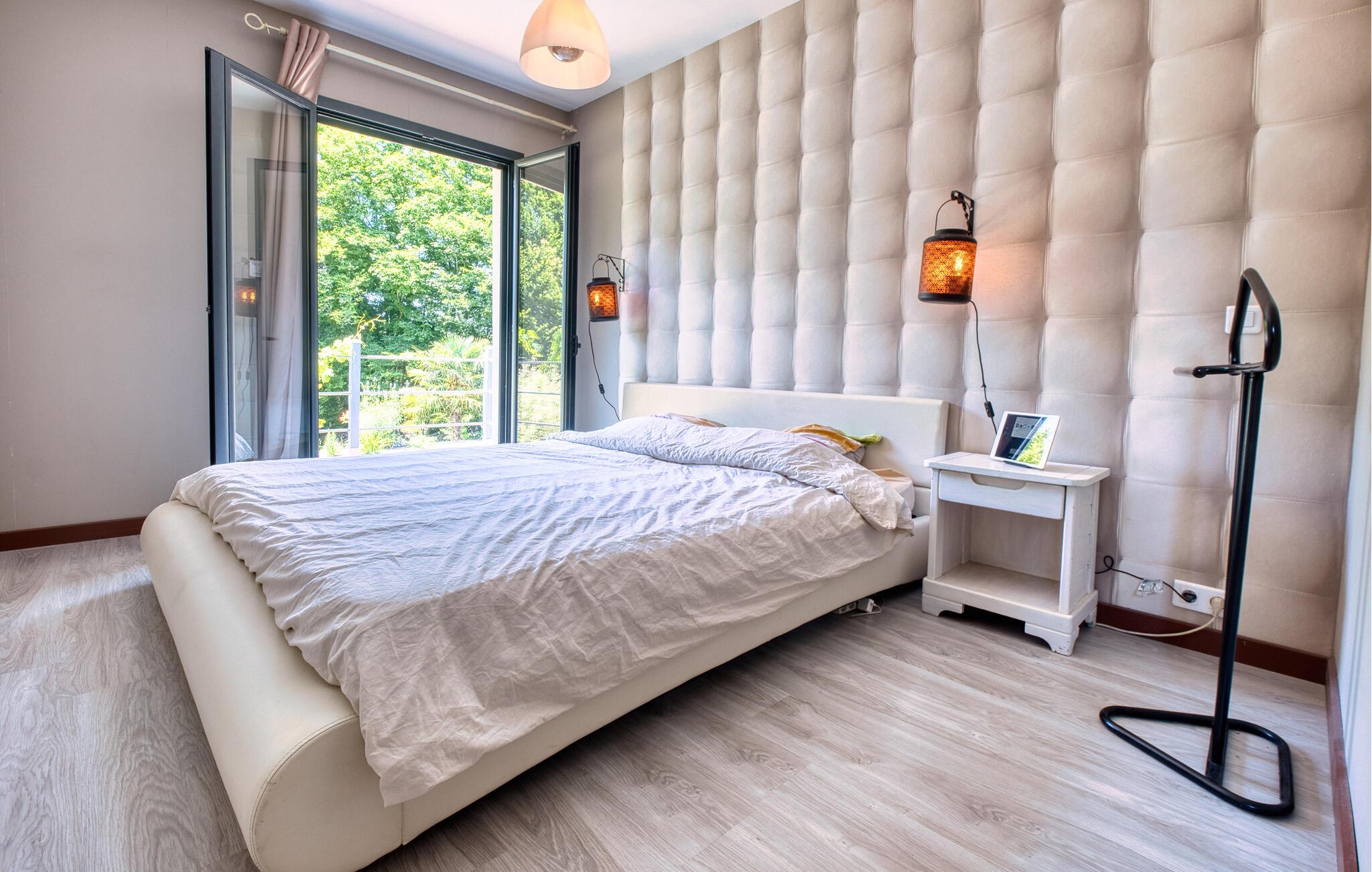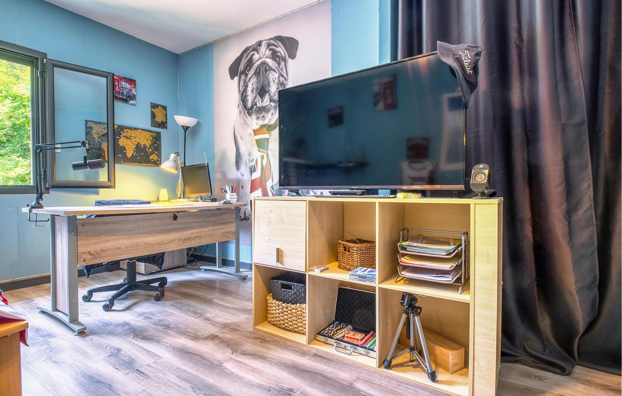 Tilbring jeres næste ferie i Frankrig i dette stilfulde feriehus nær Coursac. Glæd jer til at tilbringe tid sammen med familien i den rummelige opholdsstue. Den moderne indretning med lyse trægulve, et åbent køkken og en behagelig sofagruppe skaber en behagelig atmosfære. De farverige accenter bidrager også til den ubekymrede stemning. Tag dagens måltider ved den hyggelige spiseafdeling og nyd hyggelige timer. Afslut aftenen med at slappe af foran brændeovnen eller med en film på storskærms-tv.