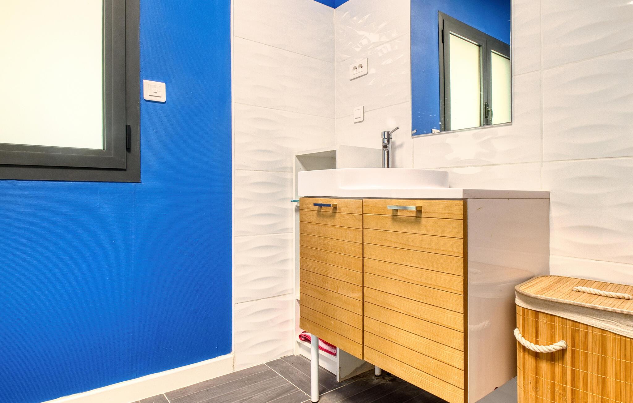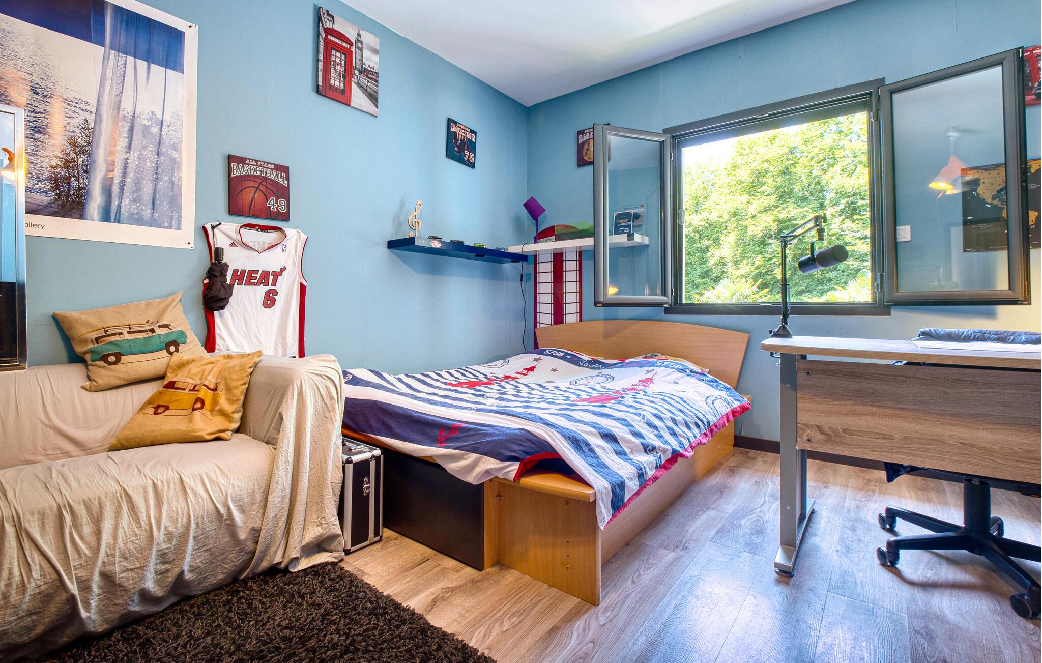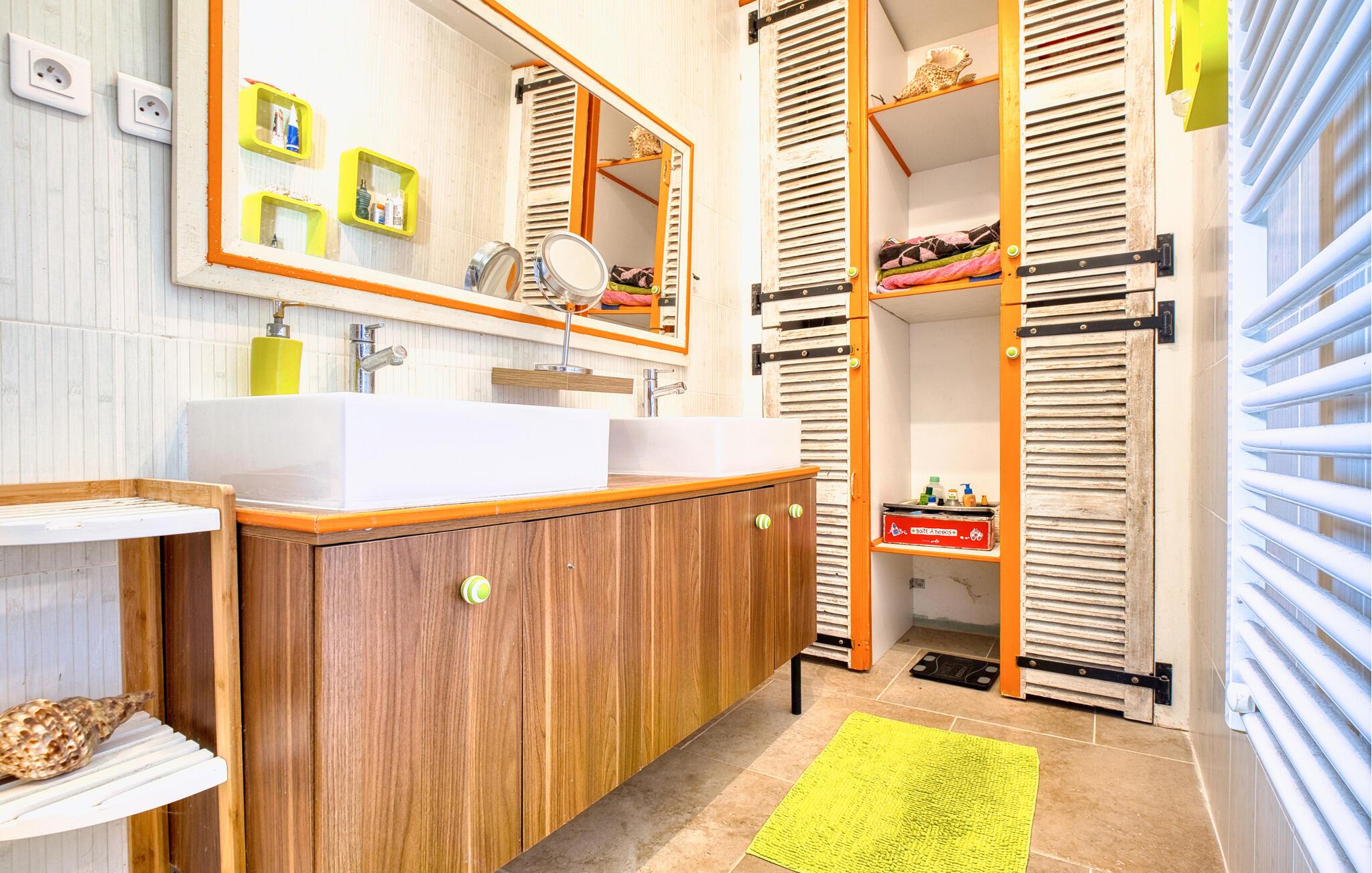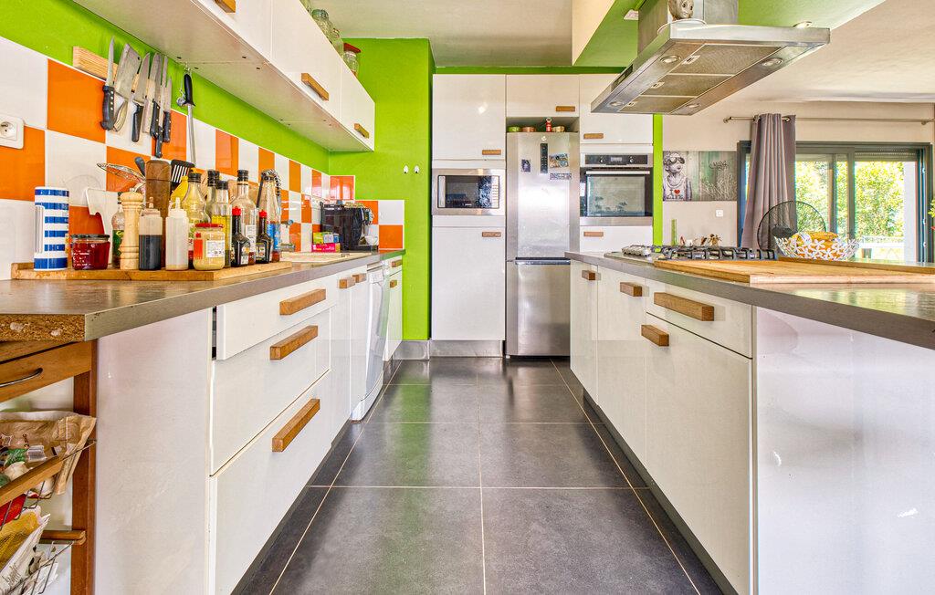 Tilbring jeres næste ferie i Frankrig i dette stilfulde feriehus nær Coursac. Glæd jer til at tilbringe tid sammen med familien i den rummelige opholdsstue. Den moderne indretning med lyse trægulve, et åbent køkken og en behagelig sofagruppe skaber en behagelig atmosfære. De farverige accenter bidrager også til den ubekymrede stemning. Tag dagens måltider ved den hyggelige spiseafdeling og nyd hyggelige timer. Afslut aftenen med at slappe af foran brændeovnen eller med en film på storskærms-tv.