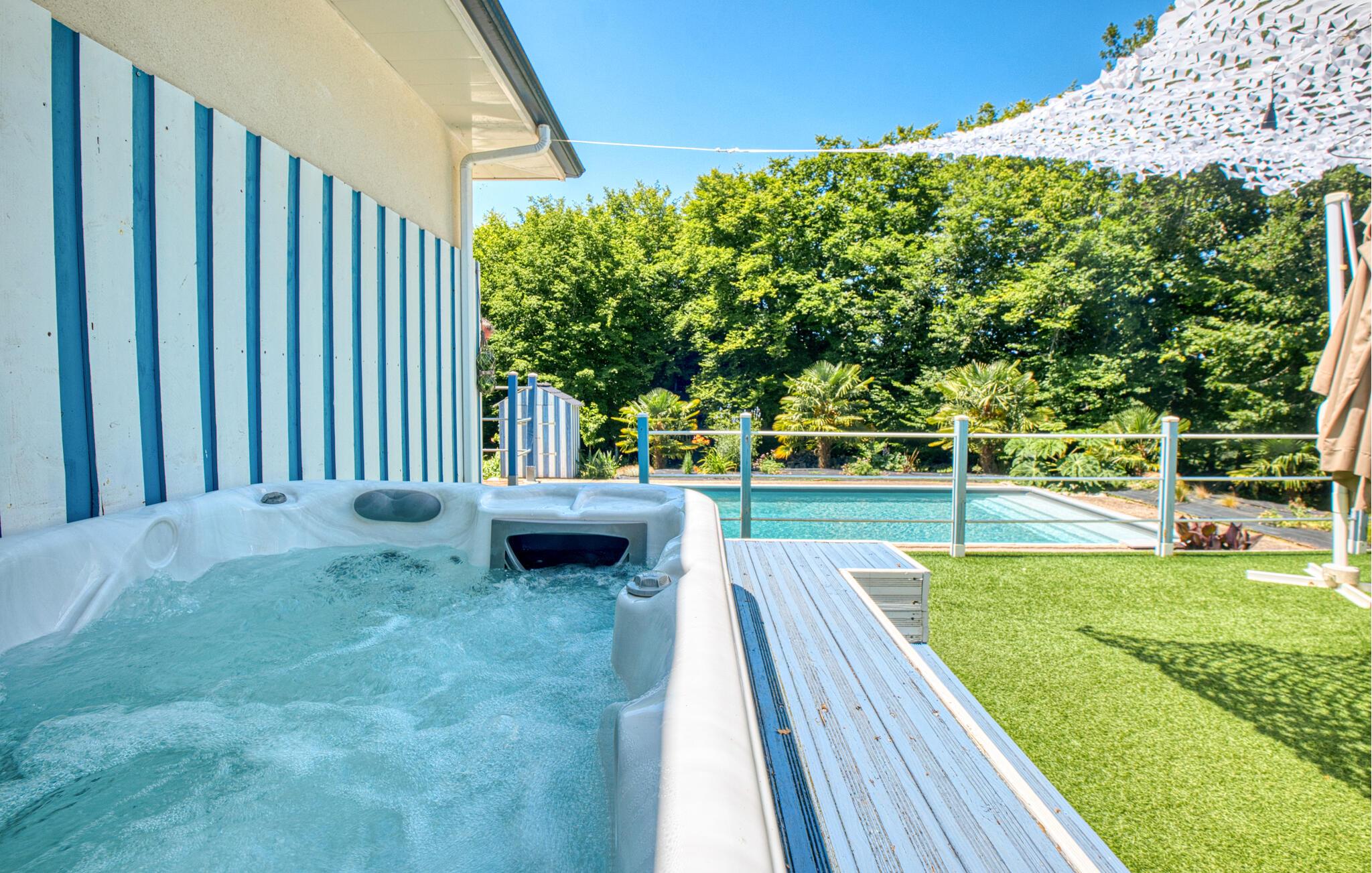 Nyd en afslappende pause i dette charmerende feriehus med pool og spabad.