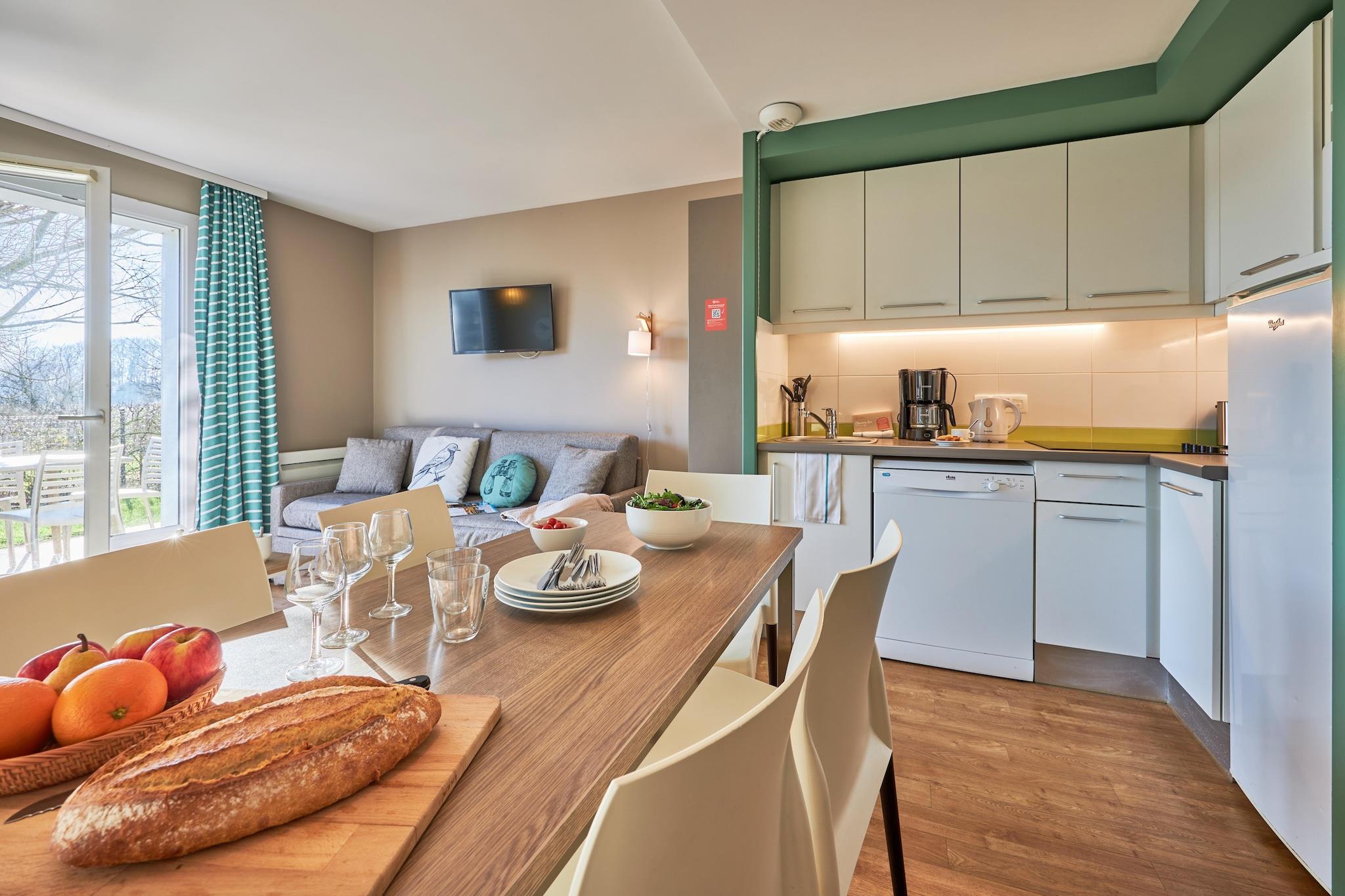 Tekøkken(kakkelovn, kogeplade(glaskeramisk), brødrister, kaffemaskine, mikrobølgeovn, opvaskemaskine , køleskab(+ fryser)), Stue/soveværelse(enkeltsovesofa, enkeltsovesofa, Fjernsyn), soveværelse(dobbeltseng), soveværelse(køjeseng), badeværelse(badekar, toilet), badeværelse(bruser, toilet), vaskemaskine(deles med andre gæster, betalt), balkon eller terrasse, havemøbler, parkering, swimmingpool(deles med andre gæster, indendørs, herunder en del for børn (maks. dybde 50 cm)), legeredskaber(deles med andre gæster)