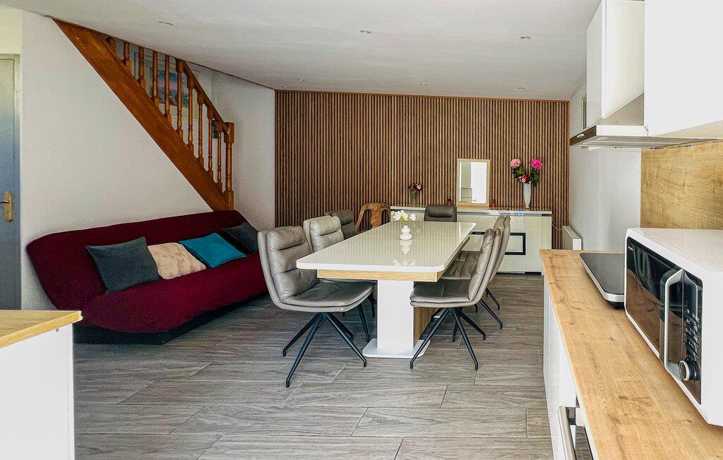 Dette moderne indrettede feriehus tilbyder en komfortabel base, hvor I kan nyde en varieret ferie med familie eller venner. Glæd jer til hyggelige aftener med madlavning sammen og dejlige måltider omkring spisebordet, planlæg jeres aktiviteter i ro og mag og afslut en begivenhedsrig dag med en spilleaften.