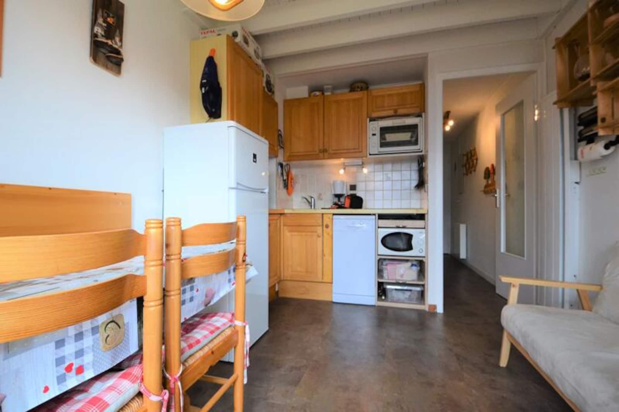 Højt over de fredfyldte pister i skiområdet Espace Diamant tilbyder denne charmerende duplexlejlighed i La Sapinière-residensen et tilflugtssted, der blander alpin ro med moderne bekvemmeligheder. Forestil dig at vågne op til den betagende udsigt over Mont Charvin og Aravis-bjergkæden, med den pulserende landsby Cohennoz kun få skridt væk. Uanset om du er her for at sno dig gennem 192 km sammenhængende skiløjper eller for at nyde den fredelige atmosfære, er denne ejendom perfekt placeret til at gøre din bjergferie uforglemmelig. \n\nLejligheden strækker sig over to etager og tilbyder en hyggelig, men funktionel indretning. Stueetagen har en spiseplads med et fuldt udstyret køkken, der åbner ud til en vestvendt balkon, ideel til at nyde solnedgange over bjergtoppene. Et juniorværelse med køjesenge og et badeværelse med bruser fuldender underetagen. Ovenpå finder du en varm loftsstue med tv, et dobbeltværelse og en alkove med en enkeltseng, der giver fleksible sovemuligheder for op til fem gæster. Yderligere faciliteter inkluderer et skirum, kælder og overdækket parkeringsplads, hvilket sikrer både komfort og praktisk anvendelighed under dit ophold. \n\nTræd udenfor, og du vil befinder dig kun 100 meter fra skiløjperne og 200 meter fra landsbyens centrum og skiskole. Om vinteren tilbyder Espace Diamant-området uendelige skiløbsmuligheder på tværs af seks maleriske feriesteder, mens sommeren forvandler regionen til et paradis for vandreture, mountainbiking og udforskning af panoramaudsigt over Mont Blanc og Aravis-bjergkæden. Den nærliggende Flumet-sø og fritidscenter, kun 10 km væk, føjer sig til listen over aktiviteter for naturelskere. \n\nUanset om du søger eventyr eller afslapning, er denne lejlighed i 1450 m højde den perfekte base for at opleve charmen og autenticiteten i de franske alper. Med sin førsteklasses beliggenhed, fantastiske udsigt og gennemtænkte faciliteter er det et sted, hvor uforglemmelige minder skabes.