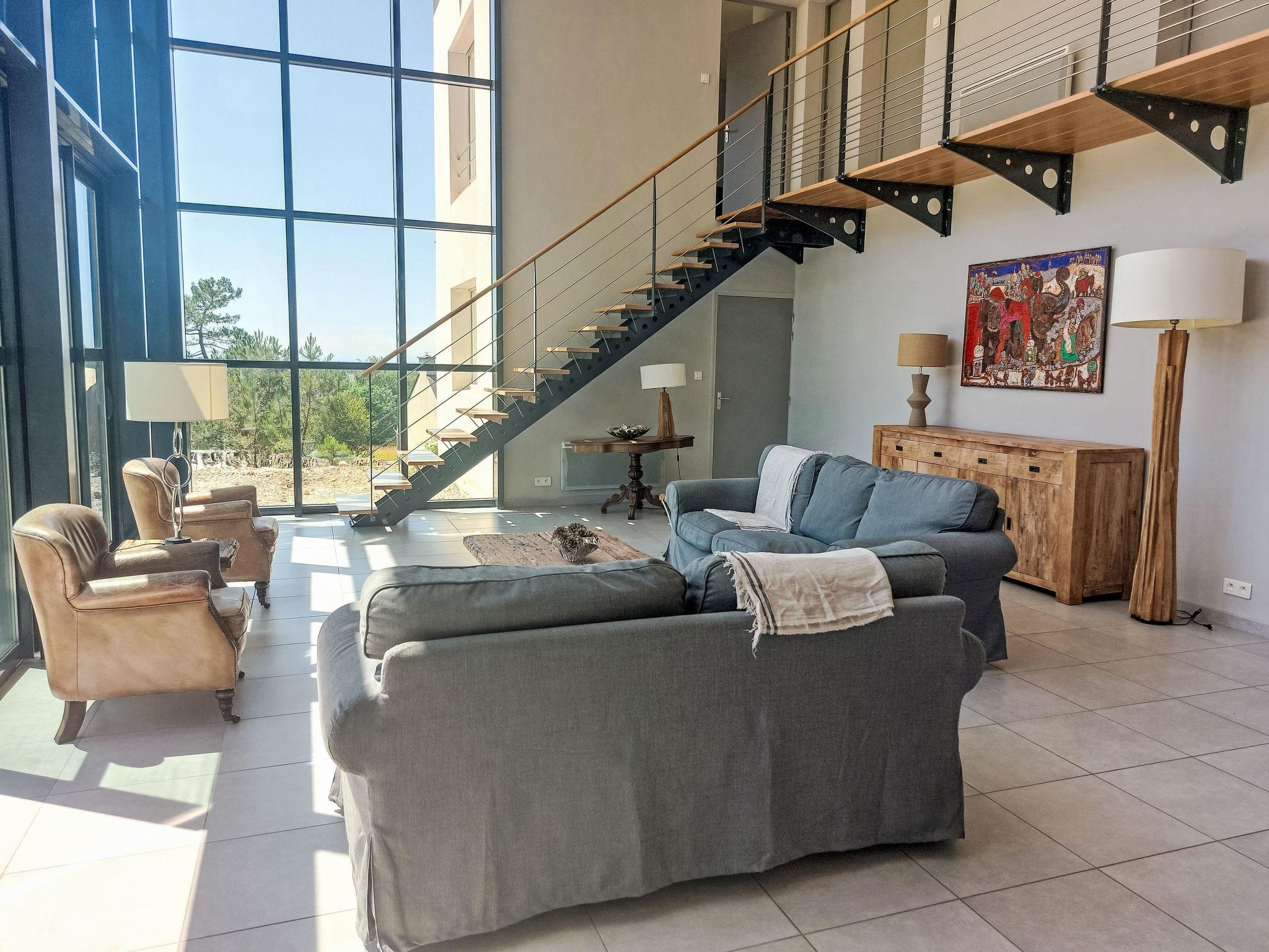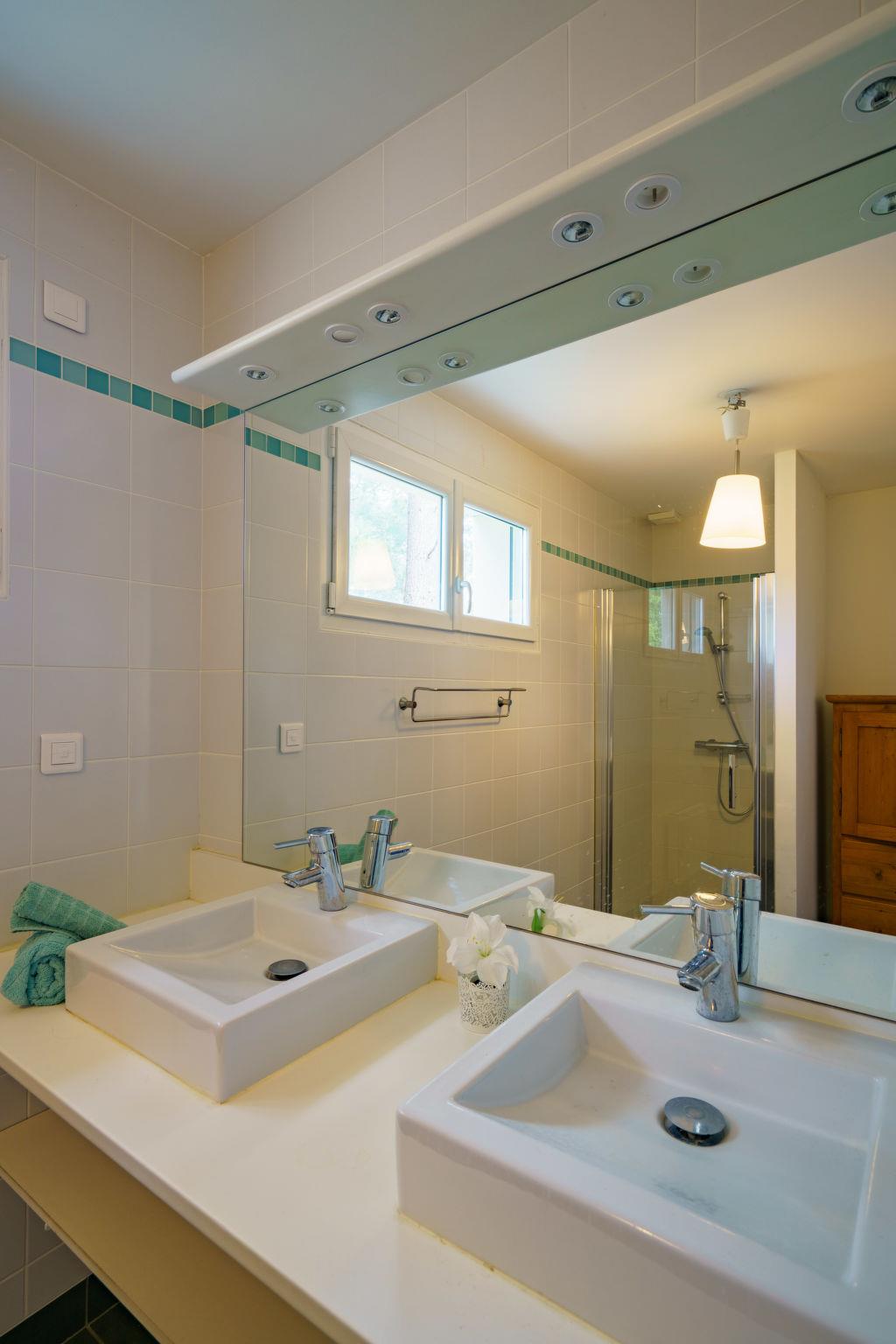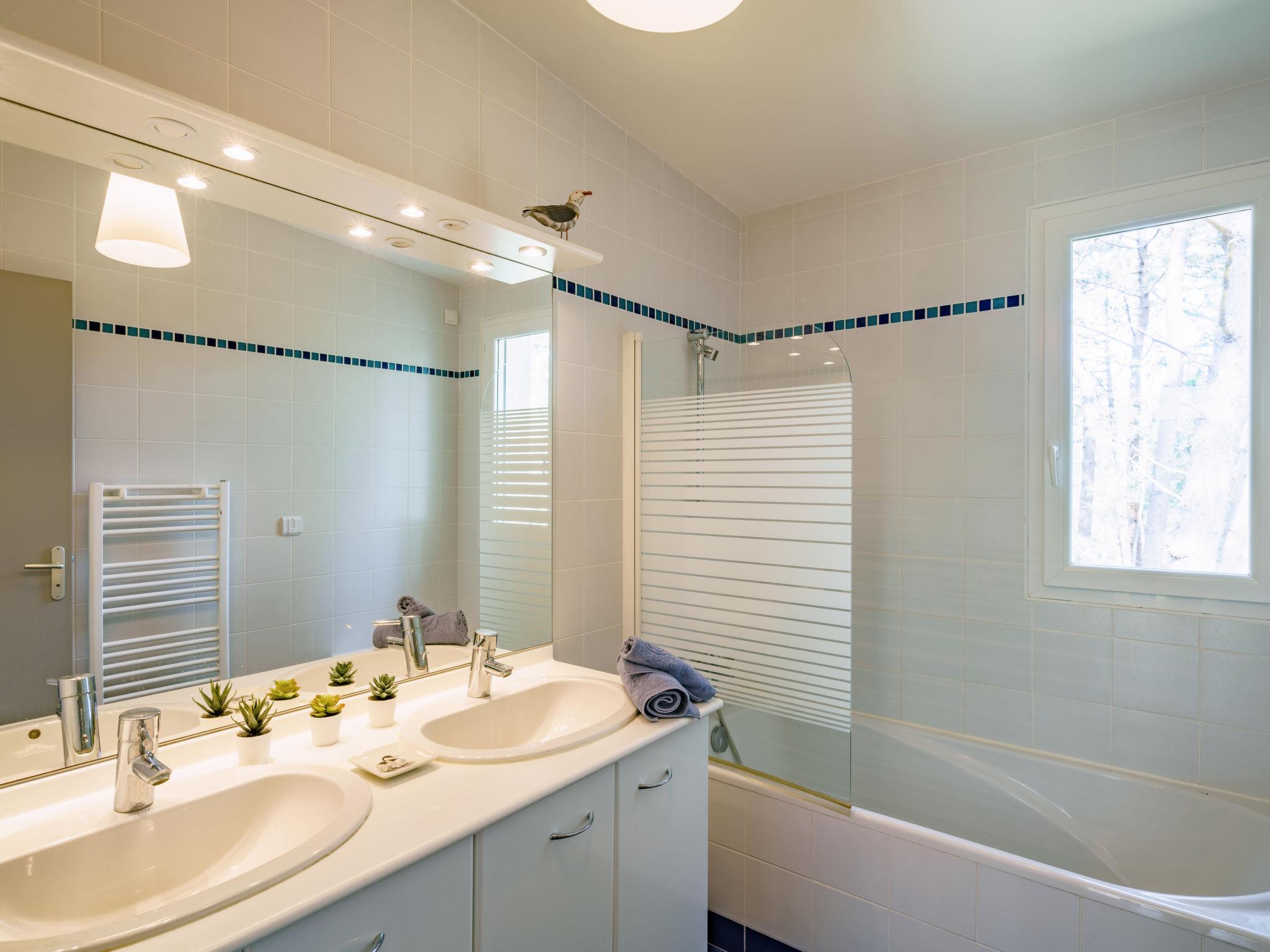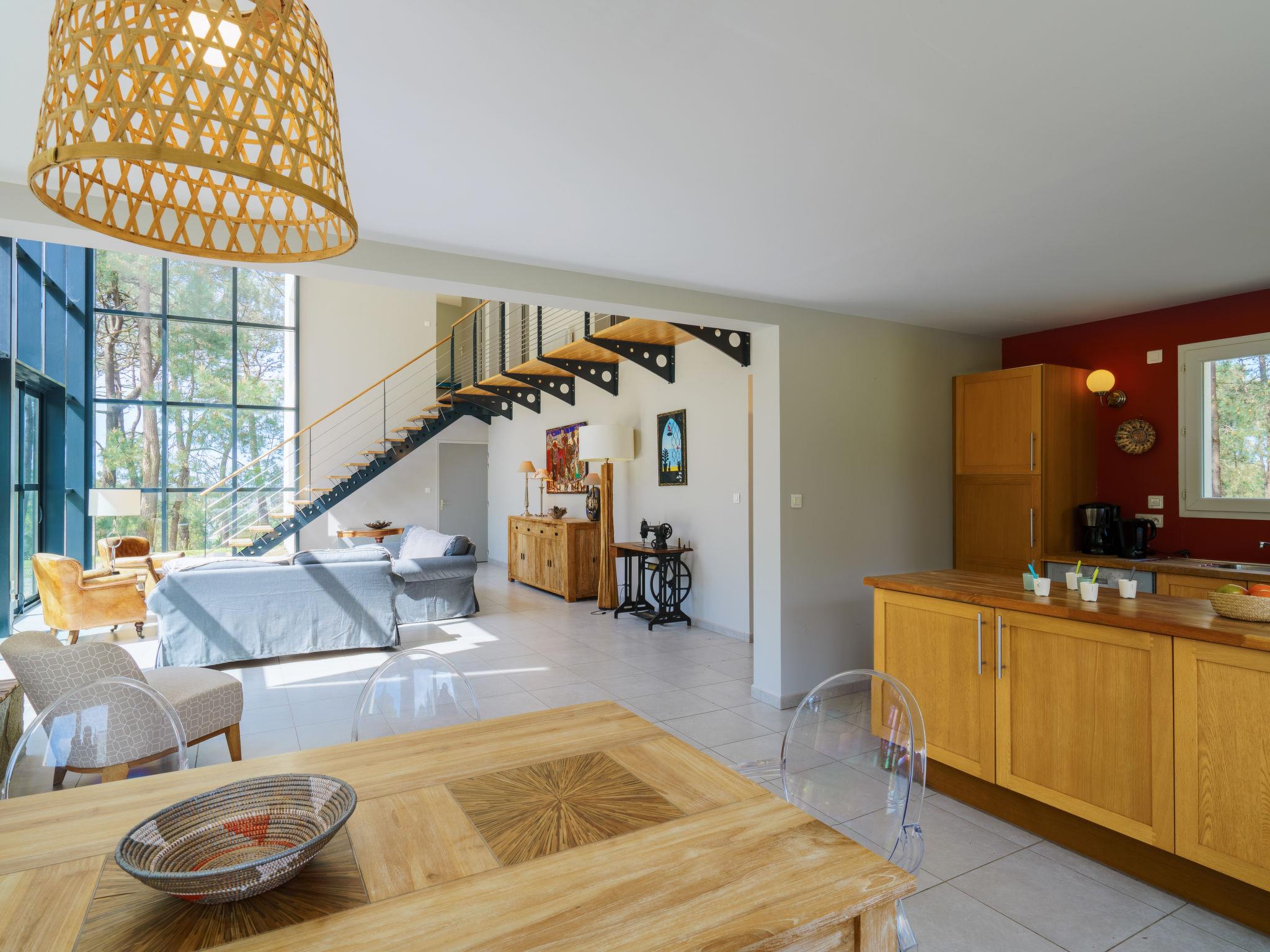 "Maison du bois du Kador", 7-room villa 200 m2, south facing position. Comfortable and modern furnishings: large living/dining room 70 m2 with panoramic window with open-hearth fireplace (only for decoration), electric shutters. Exit to the garden. 1 large room 12 m2 with 1 french bed (2 x 80 cm), shower, double hand-basin and electric shutters. Large, open kitchen (oven, dishwasher, 4 induction hot plates, toaster, kettle, microwave, electric coffee machine). Electric heating. Upper floor: 1 children's room 8 m2 with 1 bed (120 cm, length 190 cm). 1 room 10 m2 with 1 french bed (1 x 160 cm, length 190 cm), hand-basin and shower. 1 children's room 8 m2 with 1 bed (90 cm, length 190 cm). 1 room 12 m2 with 1 french bed (1 x 140 cm, length 190 cm). Large lounge with library and DVD. Bathroom, sep. WC, double hand-basin. Electric heating. Terrace furniture, deck chairs. Facilities: washing machine, dryer, iron, hair dryer, logs (extra). Parking (3 cars). Please note: suitable for families. Non-smoking house. Maximum 1 pet/ dog allowed. Smoke alarm.