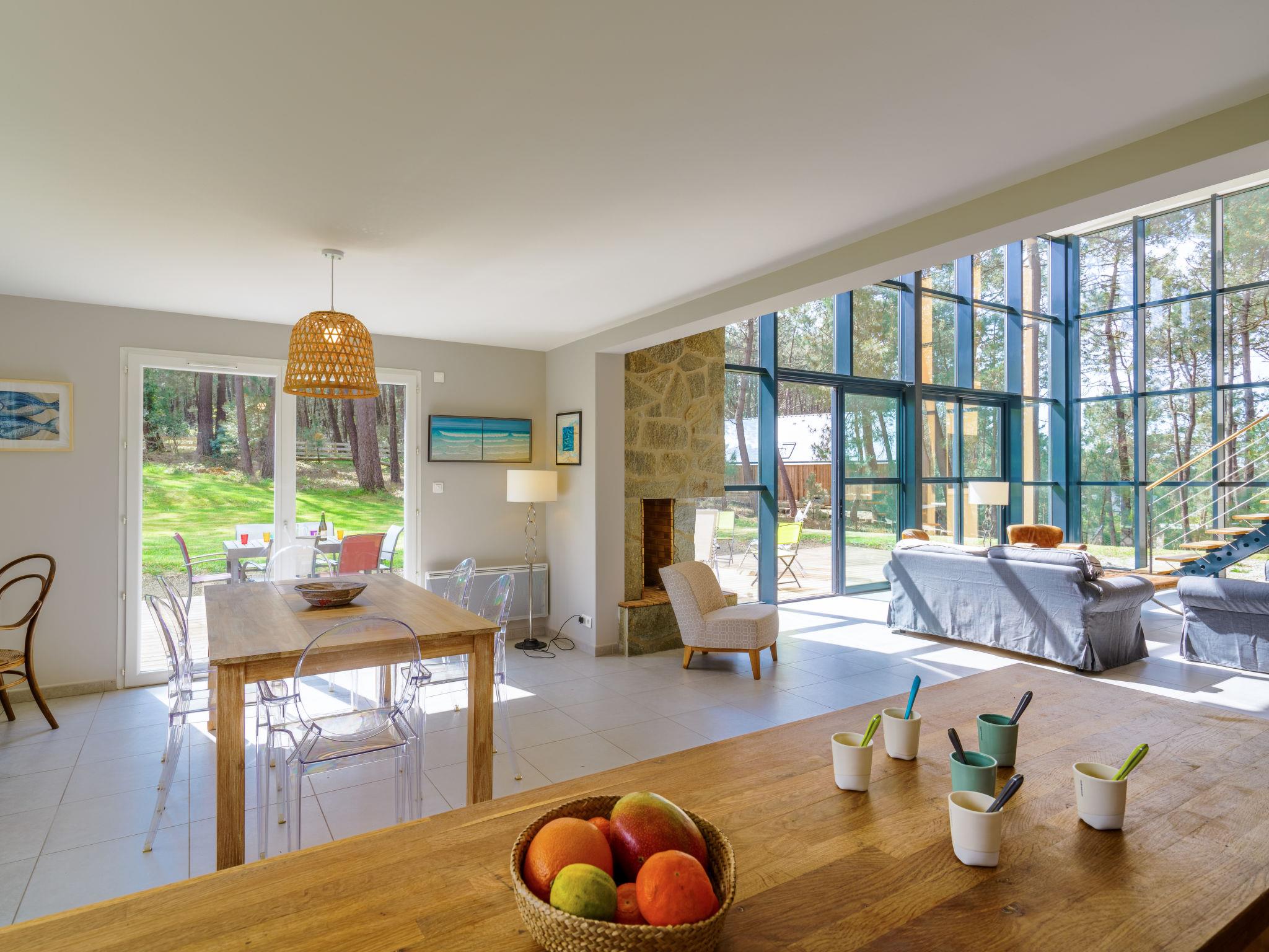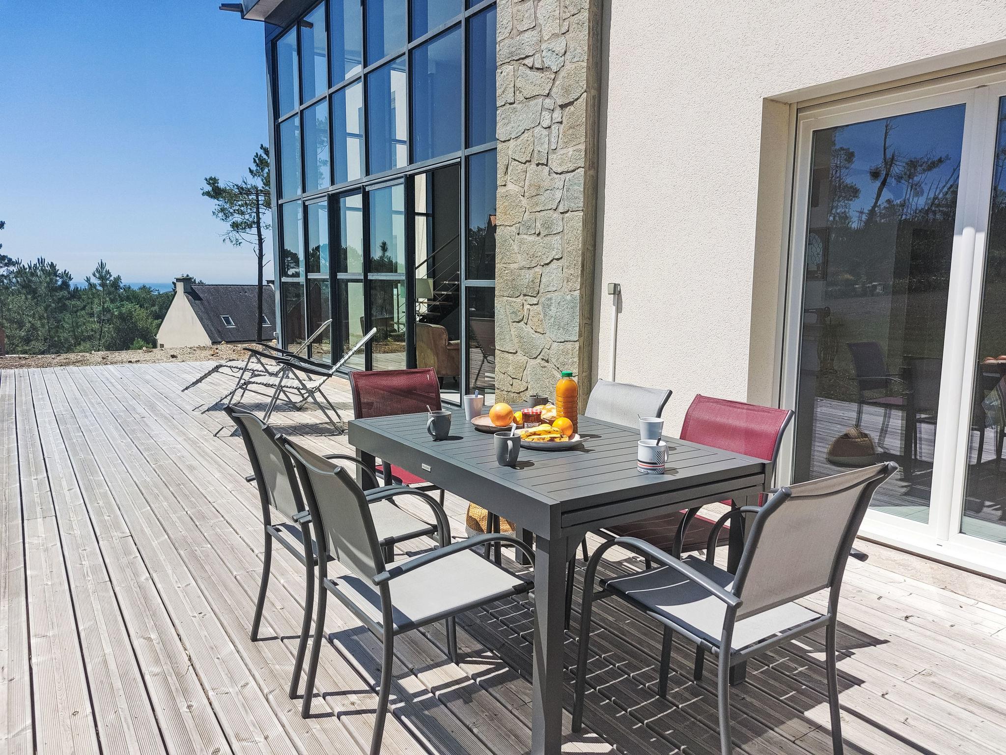 Modern, beautiful, comfortable single-family house "du bois du Kador". Above Port de Morgat, in the district of la pointe du Kador, 450 m from the sea, 450 m from the beach. Private: property 6'000 m2, large garden 3'000 m2 (not fenced) with lawn and trees. In the house: central heating system. Parking (for 4 cars) on the premises. Shop 1 km, grocery 1 km, restaurant 1 km, bus stop 2 km, sandy beach "Bois de Kador" 450 m, diving center 1.5 km, outdoor swimming pool 2 km. Sports harbour 1 km, sailing school 1.5 km. Nearby attractions: Plage de l'ile vierge 3 km, Cap de la chèvre 7 km, Pointe de Pen Hir 15 km, Camaret 13 km, Landévennec 22 km, Locronan 38 km. Please note: car recommended. The owner does not accept any groups.