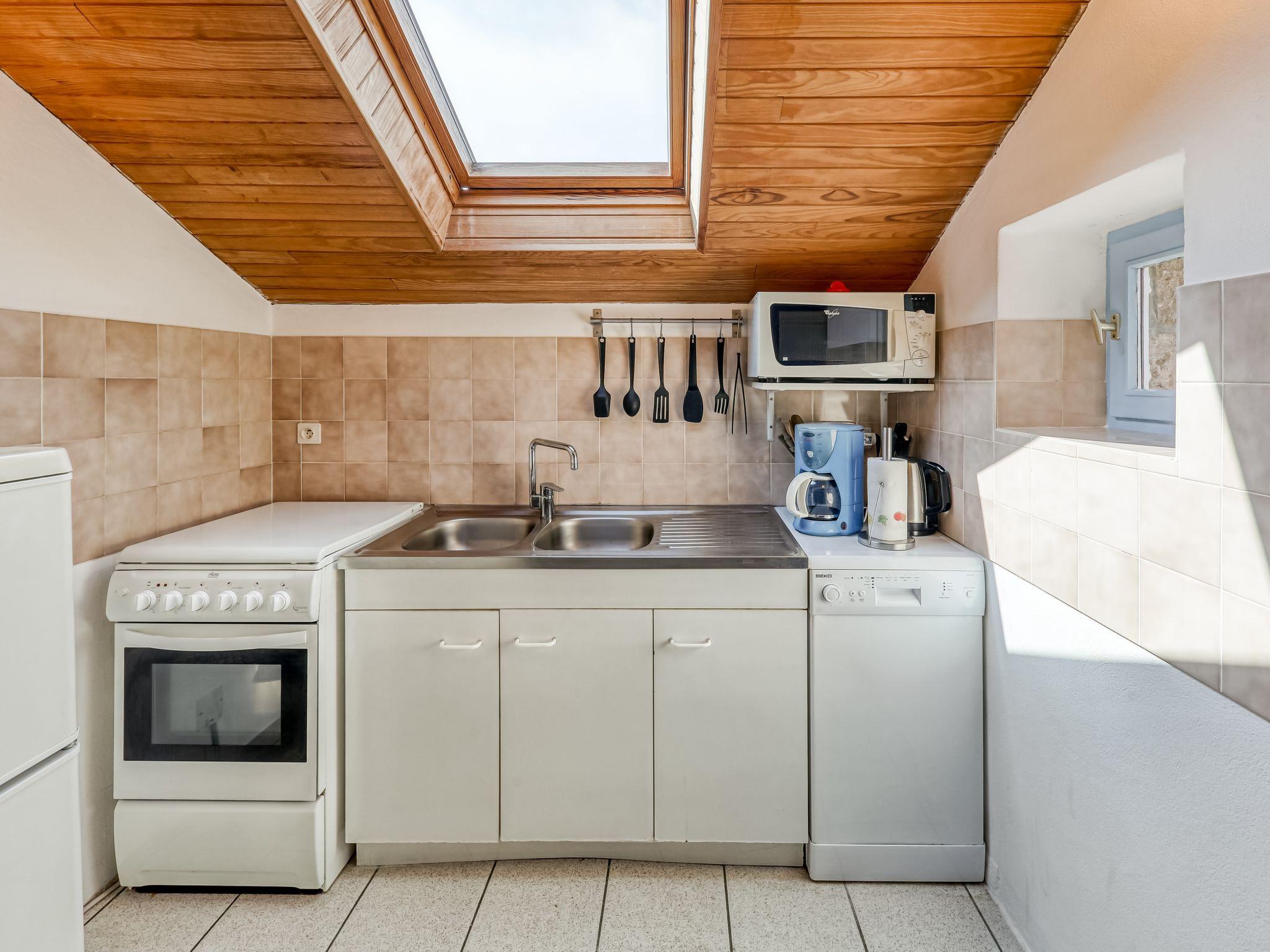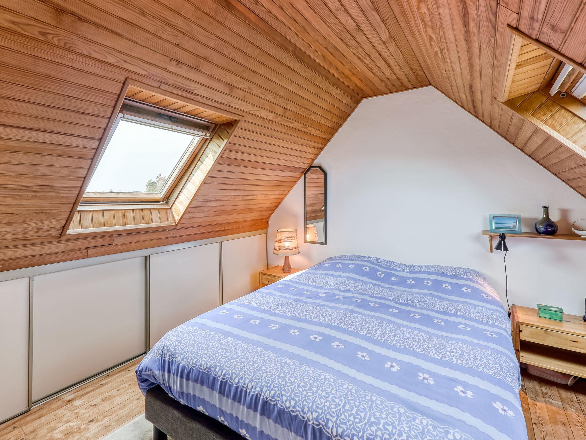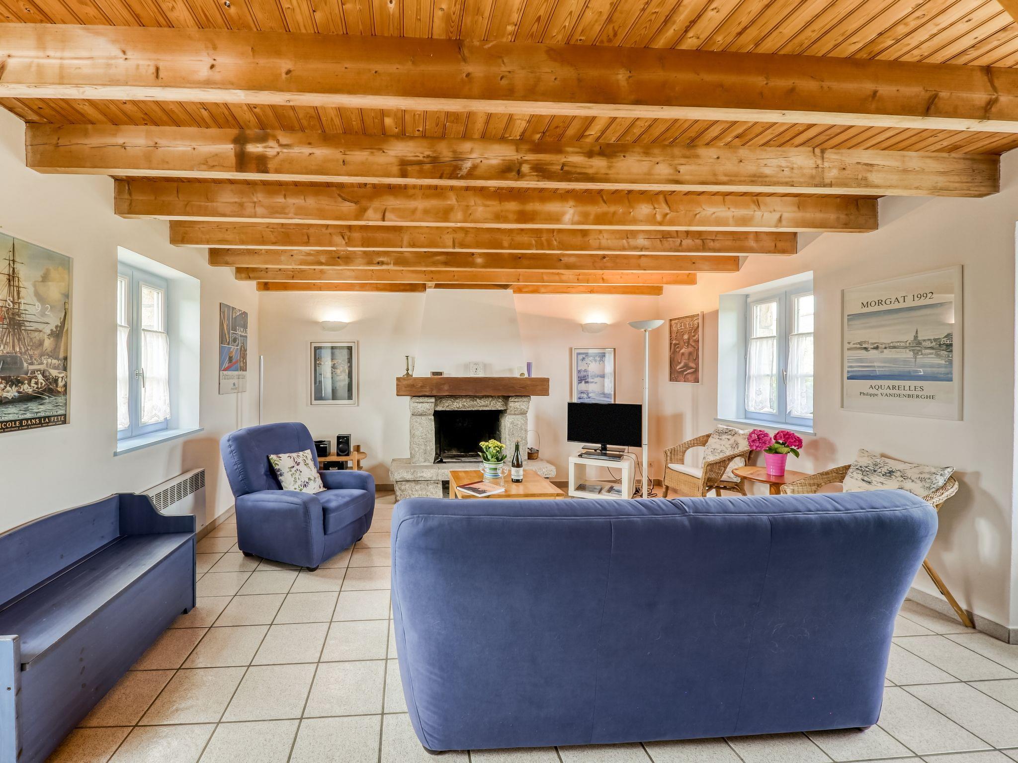 "Ker Kébec", 3-room house 55 m2. Beautiful and wooden furniture furnishings: living room with open-hearth fireplace and TV (flat screen), hi-fi system, DVD and electric heating. Exit to the garden. Open kitchen (1 hot plate, dishwasher, 3 gas rings, toaster, kettle, microwave, freezer, electric coffee machine) with dining table. Shower, sep. WC. Upper floor: 1 room with sloping ceilings with 1 double bed (160 cm, length 200 cm). 1 room with sloping ceilings with 2 beds (90 cm, length 190 cm). Terrace furniture, deck chairs (2). Facilities: iron, hair dryer. Internet (WiFi, free). Please note: non-smoking house. 1 small pet/ dog allowed. Smoke alarm.