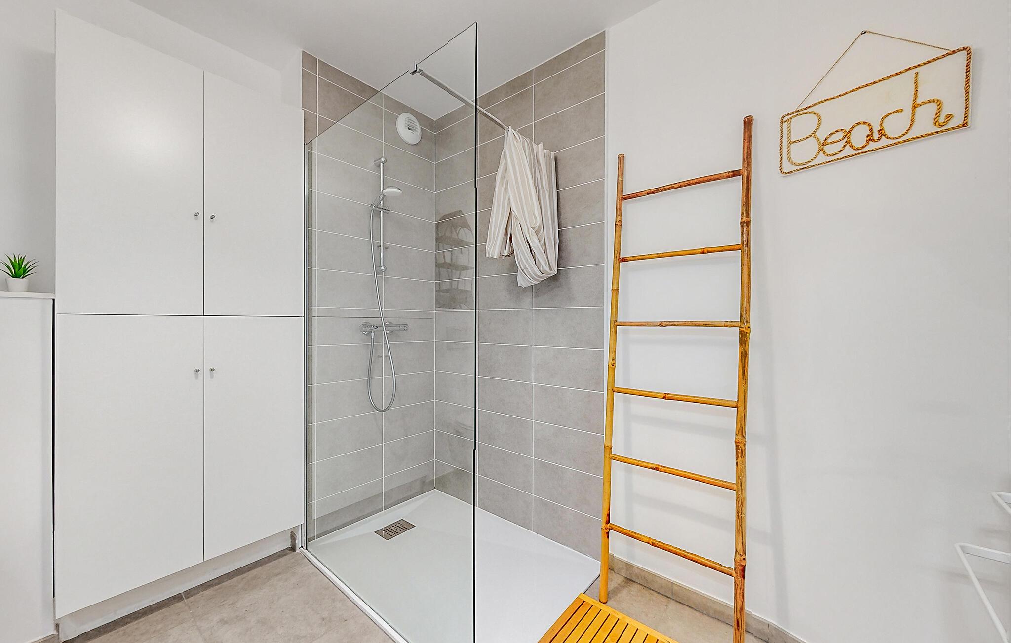 Den moderne bolig giver jer en stilfuld, hyggelig atmosfære, mens altanen byder på en vidunderlig udsigt over klitterne. Nyd direkte adgang til diget og fyld lungerne med den friske havluft. Den lyse, moderne etværelseslejlighed er ideel til afslappende dage ved havet, og den gennemtænkte indretning vil straks få jer til at føle jer hjemme. Her kan I se frem til høj komfort og havudsigt.