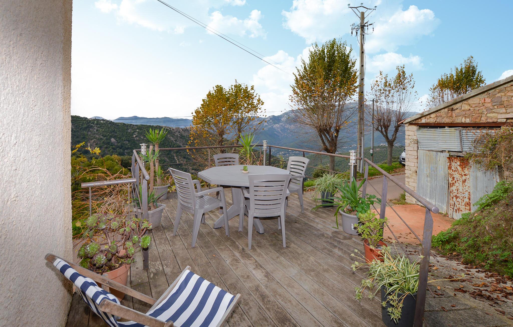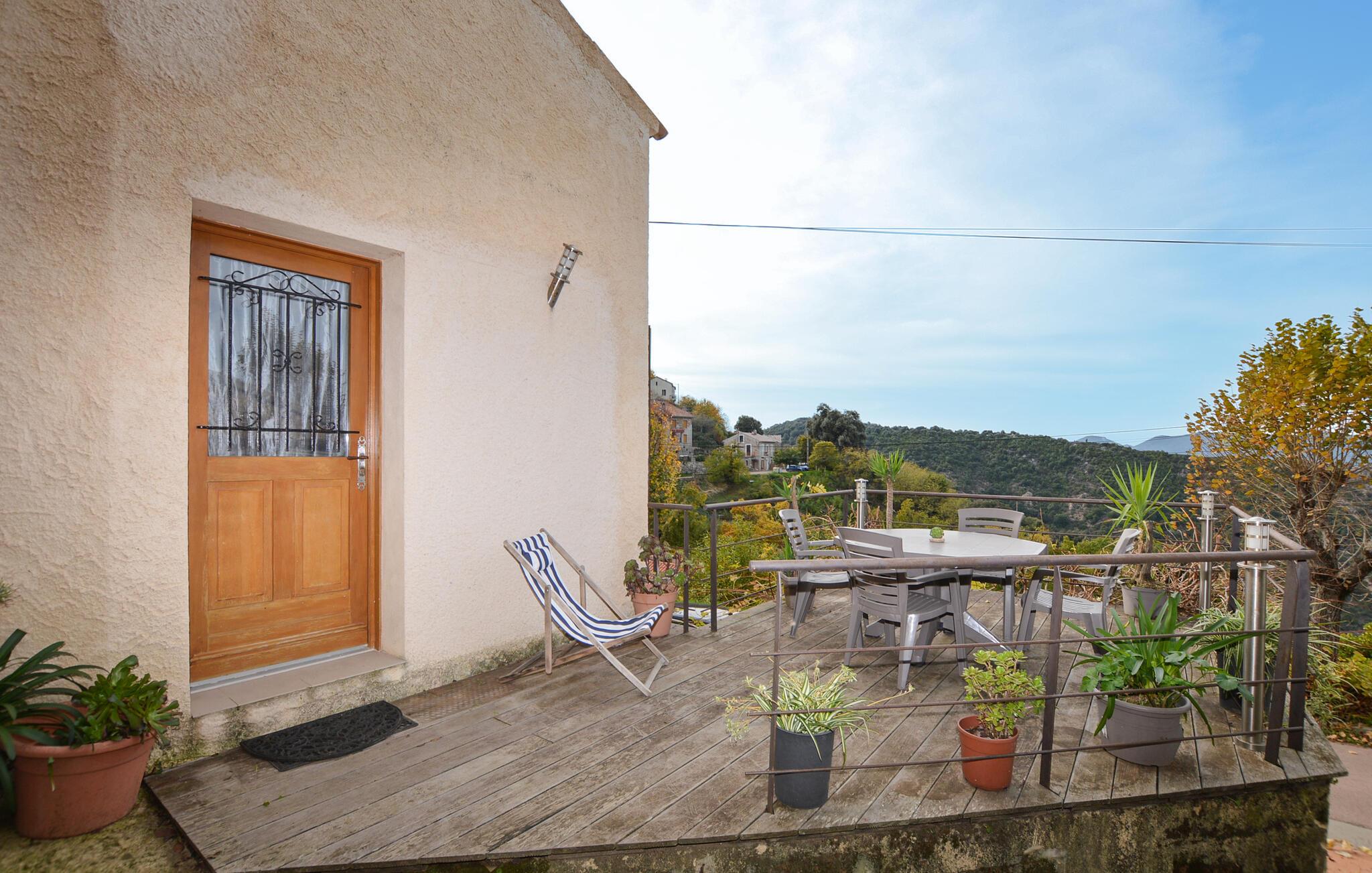 Tilbring dejlige dage i denne charmerende ferielejlighed med udsigt over bjergene og tæt på havet. Denne lejlighed byder jer velkommen med en venlig og afslappet atmosfære. Smukke trædetaljer, rustikke møbler og landlig charme sikrer, at I hurtigt kan slappe af. Uanset om I nyder en afslappet snak, lytter til jeres yndlingsmusik eller tilbereder lækre måltider sammen, vil I hurtigt glide ind i ferietilstand her. Fra den dejlige terrasse kan I nyde udsigten over bjergene når som helst på dagen og se solen bade landskabet i evigt skiftende farver. Nyd en afslappet morgenmad her og fordyb jer derefter i en god bog. Om aftenen kan I bruge grillen til at tilberede frisk fisk eller en saftig bøf. Beliggenheden er højt oppe i det korsikanske bagland og fortryller besøgende med en storslået udsigt over Gravona-dalen. Tag naturskønne vandreture eller cykelture gennem de bølgende bakker og frodige dale. Fordyb jer i den pulserende kultur: lokale producenter tilbyder korsikansk charcuteri, hjemmelavet marmelade, olivenprodukter og traditionel keramik. Og hvis I er i humør til havet, kulturen og en pulserende byatmosfære, kan I besøge det nærliggende Ajaccio. Der finder I smukke strande, en charmerende havneatmosfære, en historisk gammel bydel og museer.