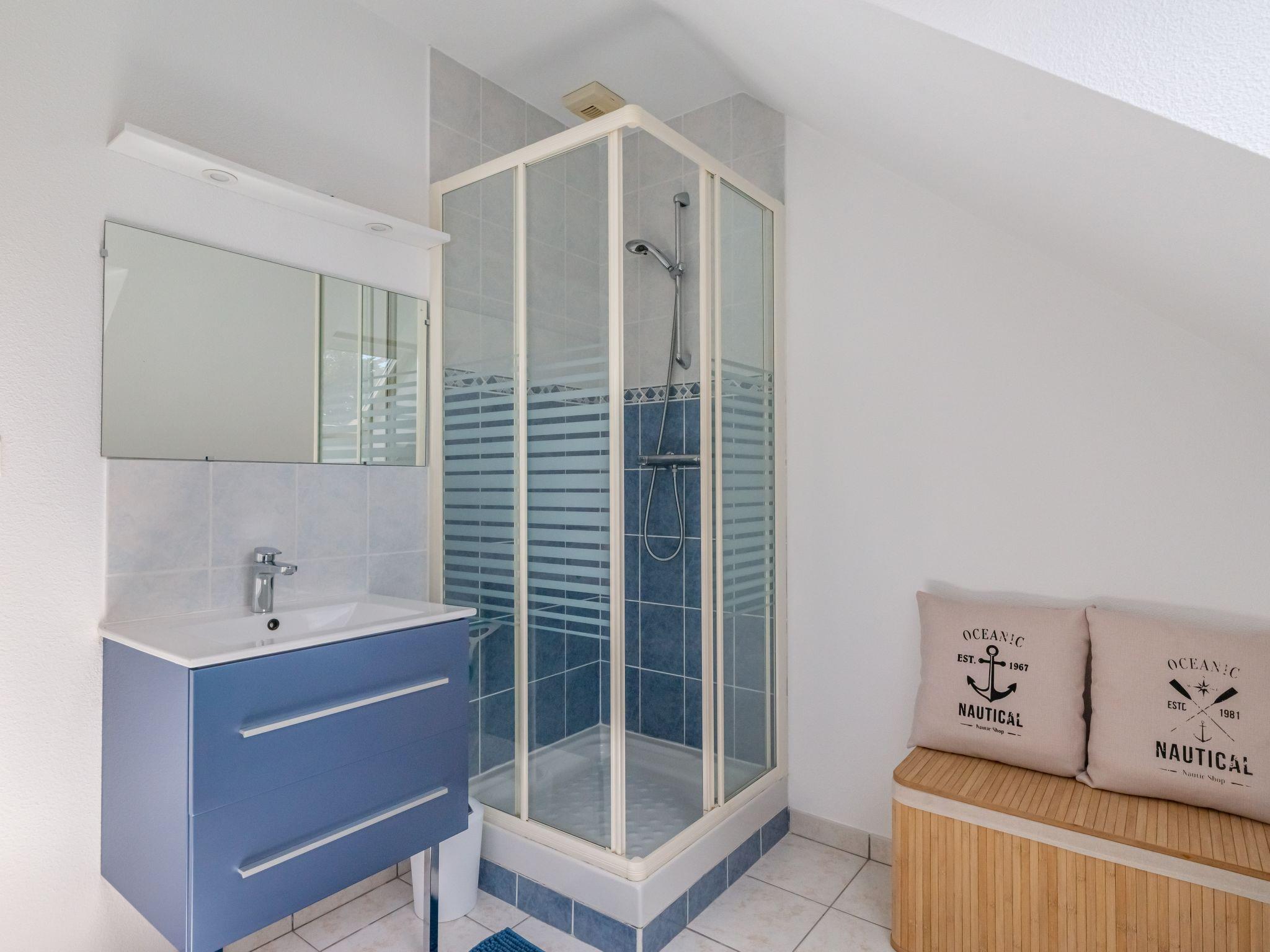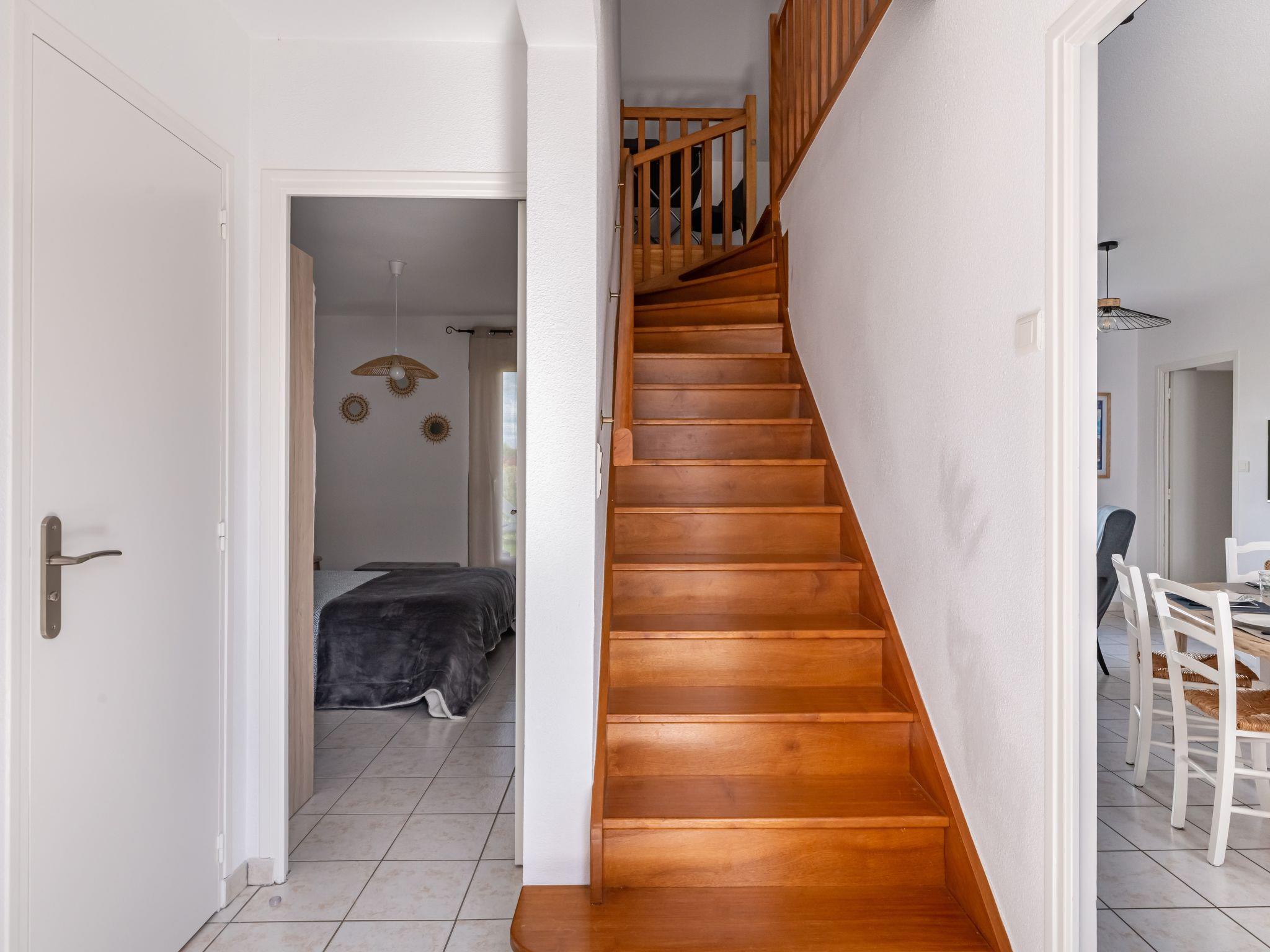 "La Perle de Damgan", 4-room terraced house 76 m2 on 2 levels. Beautiful furnishings: living/dining room with TV (flat screen). Exit to the terrace. 1 room with 1 double bed (140 cm, length 190 cm). Open kitchen (oven, dishwasher, 3 induction hot plates, toaster, kettle, microwave, electric coffee machine). Shower, sep. WC. Upper floor: 1 room with sloping ceilings with 1 french bed (140 cm, length 190 cm). 1 room with sloping ceilings with 2 beds (90 cm, length 190 cm). Shower, sep. WC. Electric heating. Terrace. Terrace furniture, barbecue, deck chairs (2). Facilities: washing machine, iron, baby cot. Internet (WiFi, free). Please note: non-smoking house. Smoke alarm.