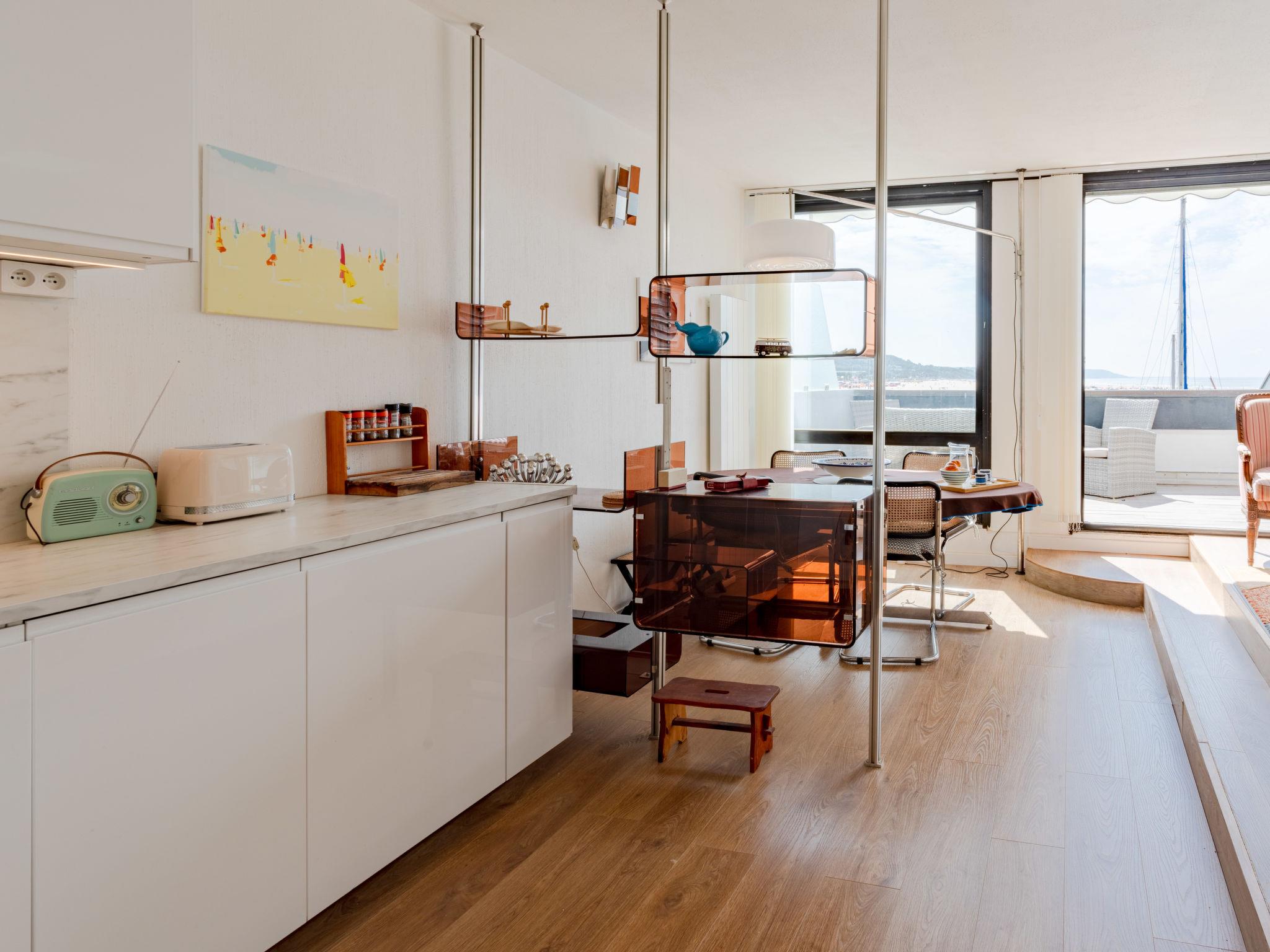 "Les Marinas", 2-room apartment 50 m2 on 1st floor, south-west facing position. Bright: living/dining room. Exit to the terrace, south facing position and west facing position. 1 room with 1 french bed (1 x 140 cm, length 190 cm), TV (flat screen). Open kitchen (oven, dishwasher, 4 induction hot plates, toaster, kettle, microwave, electric coffee machine). Bath/shower, sep. WC. Electric heating. Large terrace 7 m2. Terrace furniture. Very beautiful panoramic view of the sea. Facilities: washing machine, baby cot (extra). Internet (WiFi, extra). Parking. Please note: non-smokers only. Maximum 1 pet/ dog allowed. Smoke alarm, no lift. Offer by a private individual according to Art. 155, IV of CGI. 14220001804UT