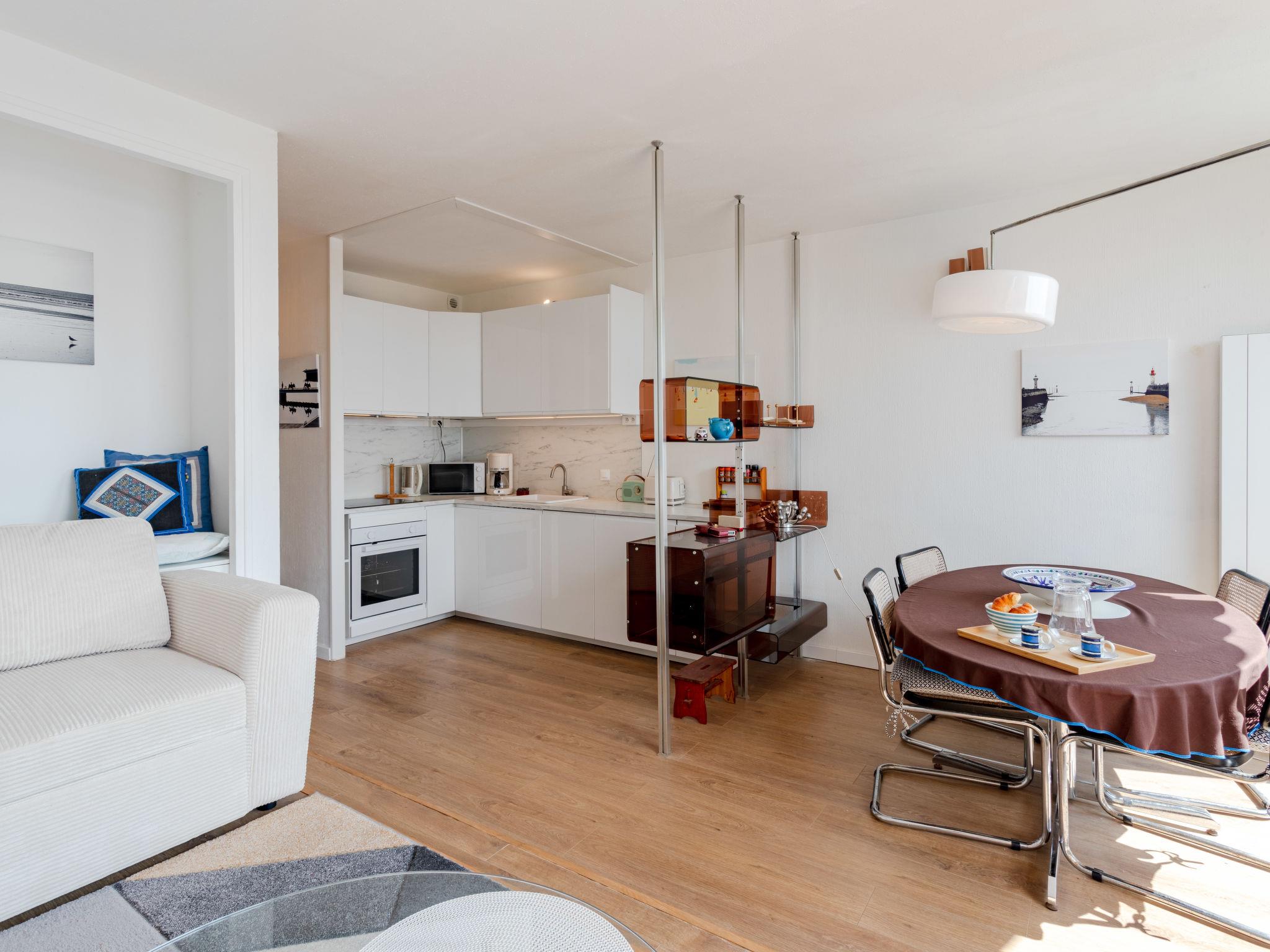 Deauville: Residence "Les Marinas". In the district of Port Deauville, 800 m from the centre, 500 m from the sea, 500 m from the beach. In the complex: lift. (20 steps). Public parking on the road. Shop 650 m, grocery, supermarket 950 m, restaurant 650 m, bus stop 400 m, railway station "Deauville-Trouville" 1.2 km, indoor swimming pool 1.1 km, thermal baths "Deauville" 1.1 km. Golf course (18 hole) 4.1 km, tennis, riding stable 750 m. Nearby attractions: Centre International Deauville - CID 900 m, Hippodrome Deauville-La Touques 1.3 km, Mémorial de Caen 55 km, Plage du débarquement d'Arromanches 87 km. Please note: Additional accommodations can be booked.