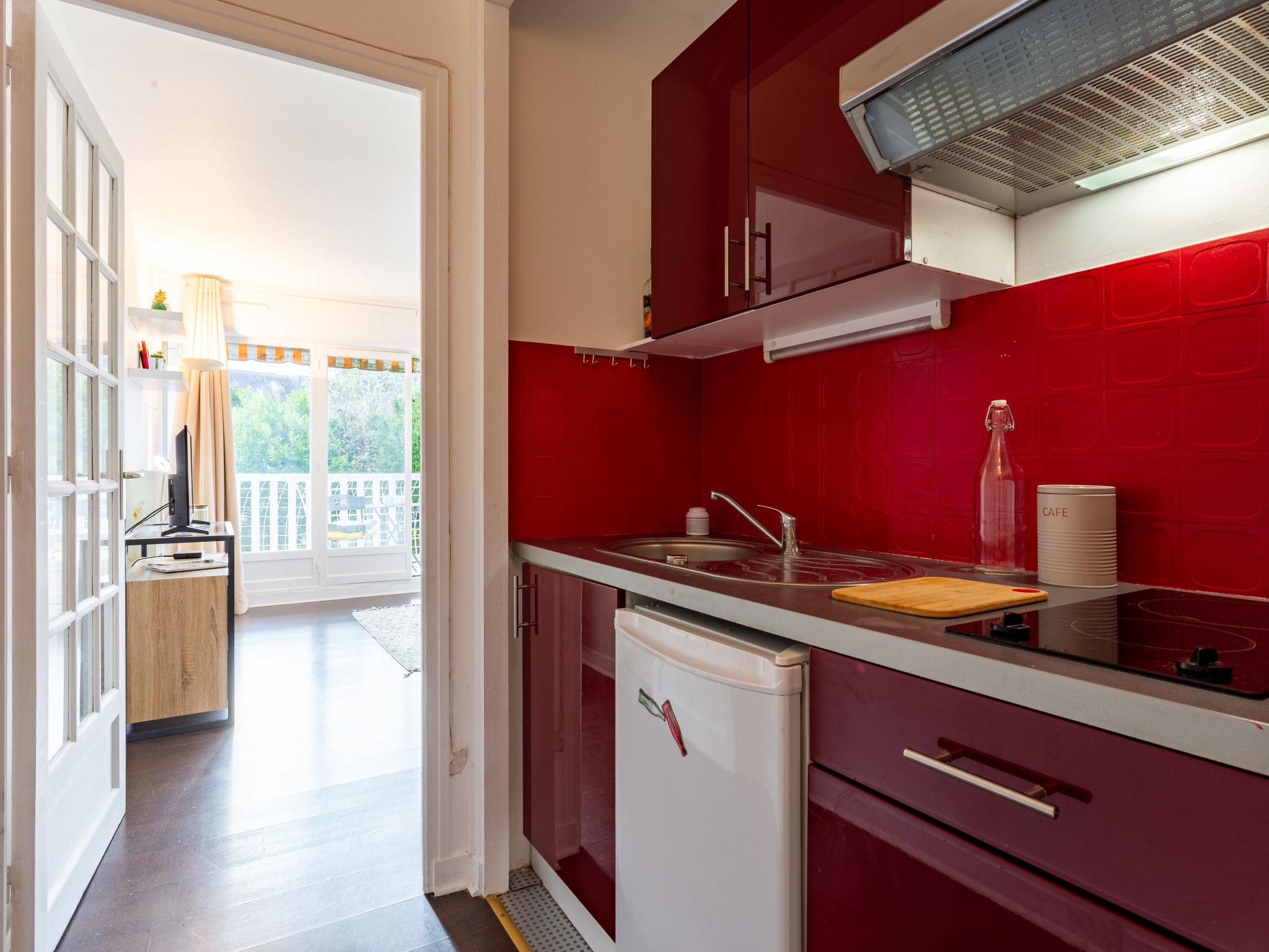1-room studio 28 m2, on the ground floor. Living/dining room with 1 sofabed (140 cm, length 190 cm), 1 french bed (1 x 160 cm, length 200 cm), TV (flat screen). Exit to the balcony. Kitchenette in the entrance (2 hot plates, dishwasher, toaster, kettle, electric coffee machine, combination microwave). Shower/WC. Electric heating. Large balcony 7 m2, west facing position. Balcony furniture. Facilities: iron. Internet (WiFi, free). Parking. Please note: non-smokers only. Maximum 1 pet/ dog allowed. Smoke alarm. Offer by a private individual according to Art. 155, IV of CGI. 14715000158MI