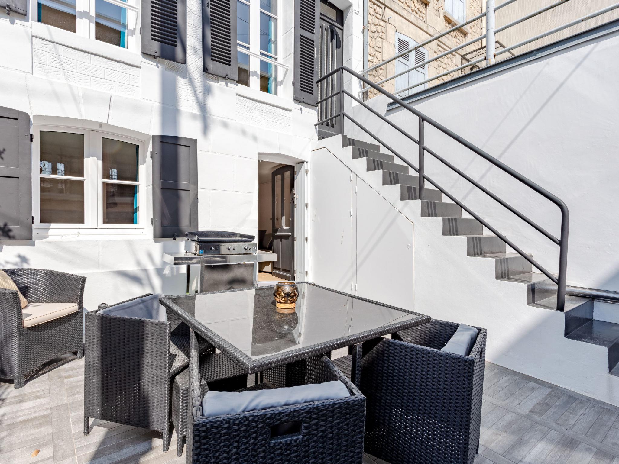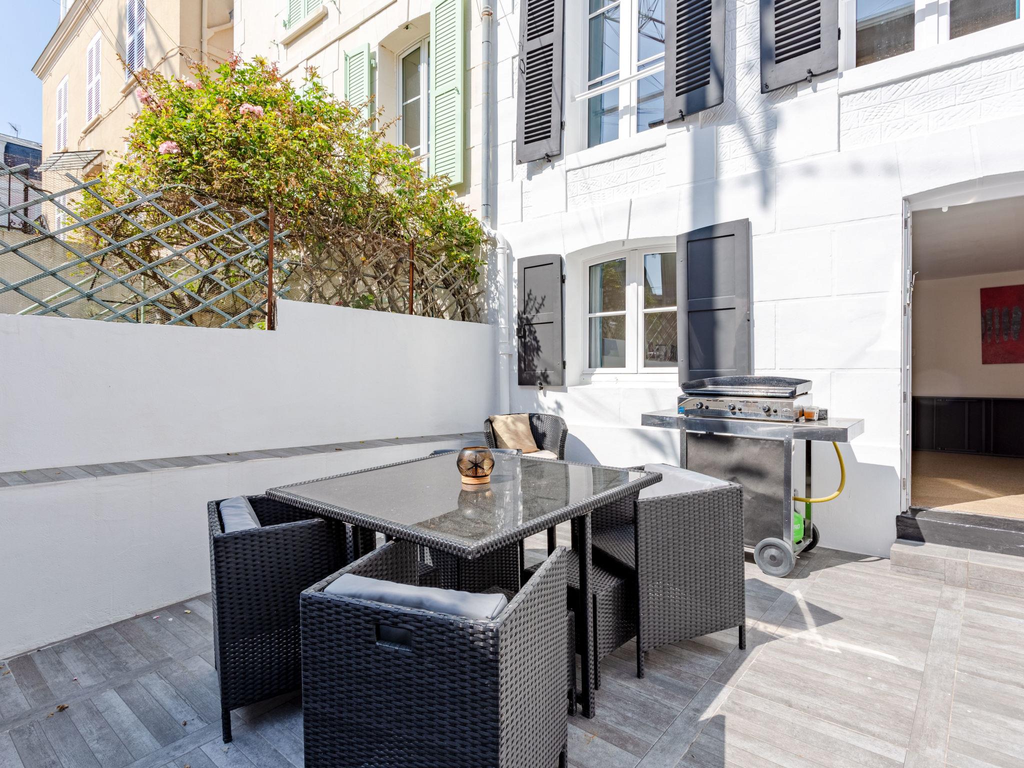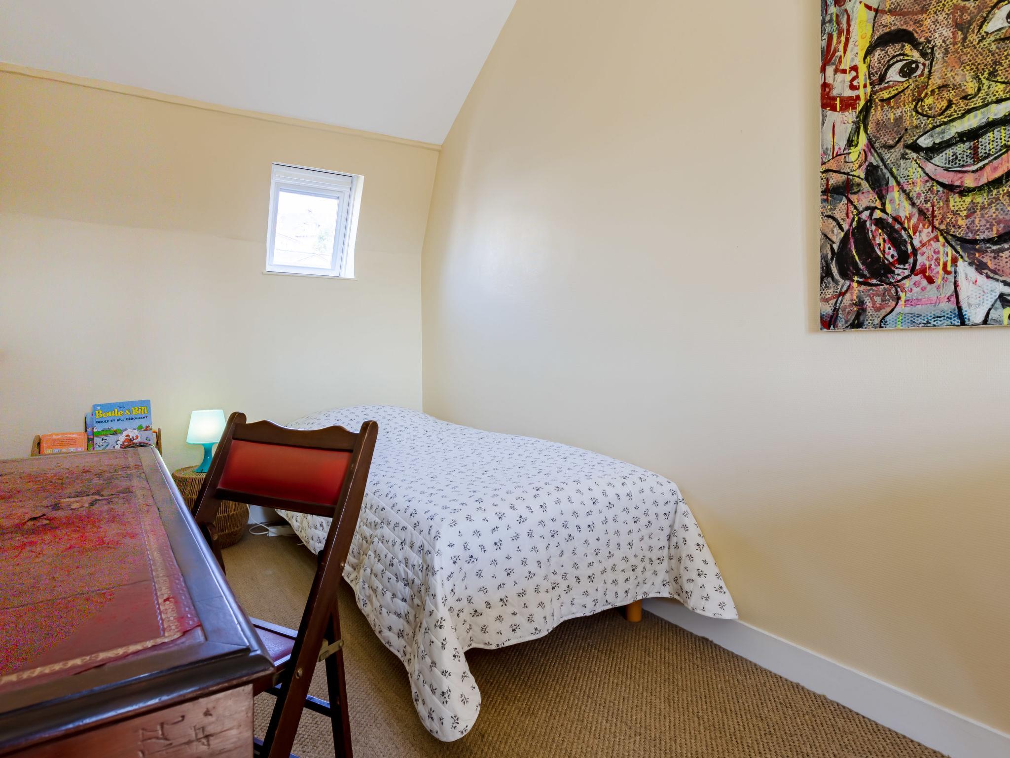 5-room house 120 m2 on 4 levels. Bright, renovated in 2022, beautiful furnishings: living/dining room with TV (flat screen). Open kitchen (4 hot plates, oven, dishwasher, toaster, kettle, freezer, electric coffee machine). Sep. WC. Electric heating. On the lower ground floor: (spiral staircase), 1 room with 2 beds (90 cm). Exit to the terrace. Kitchenette). Shower/WC. Upper floor: 1 room with 1 french bed (160 cm). Bath/WC. 2nd upper floor: (spiral staircase), 2 rooms, each room with 1 bed (90 cm). Large terrace 30 m2, west facing position. Terrace furniture, deck chairs. Facilities: washing machine, iron. Internet (WiFi, free). Parking (1 car). Please note: non-smokers only. Smoke alarm. Please note: the ground floor and the first floor (living room ) both have a separate outside entrance. Please note: breakage deposit is 750 euro. 14715000183SV