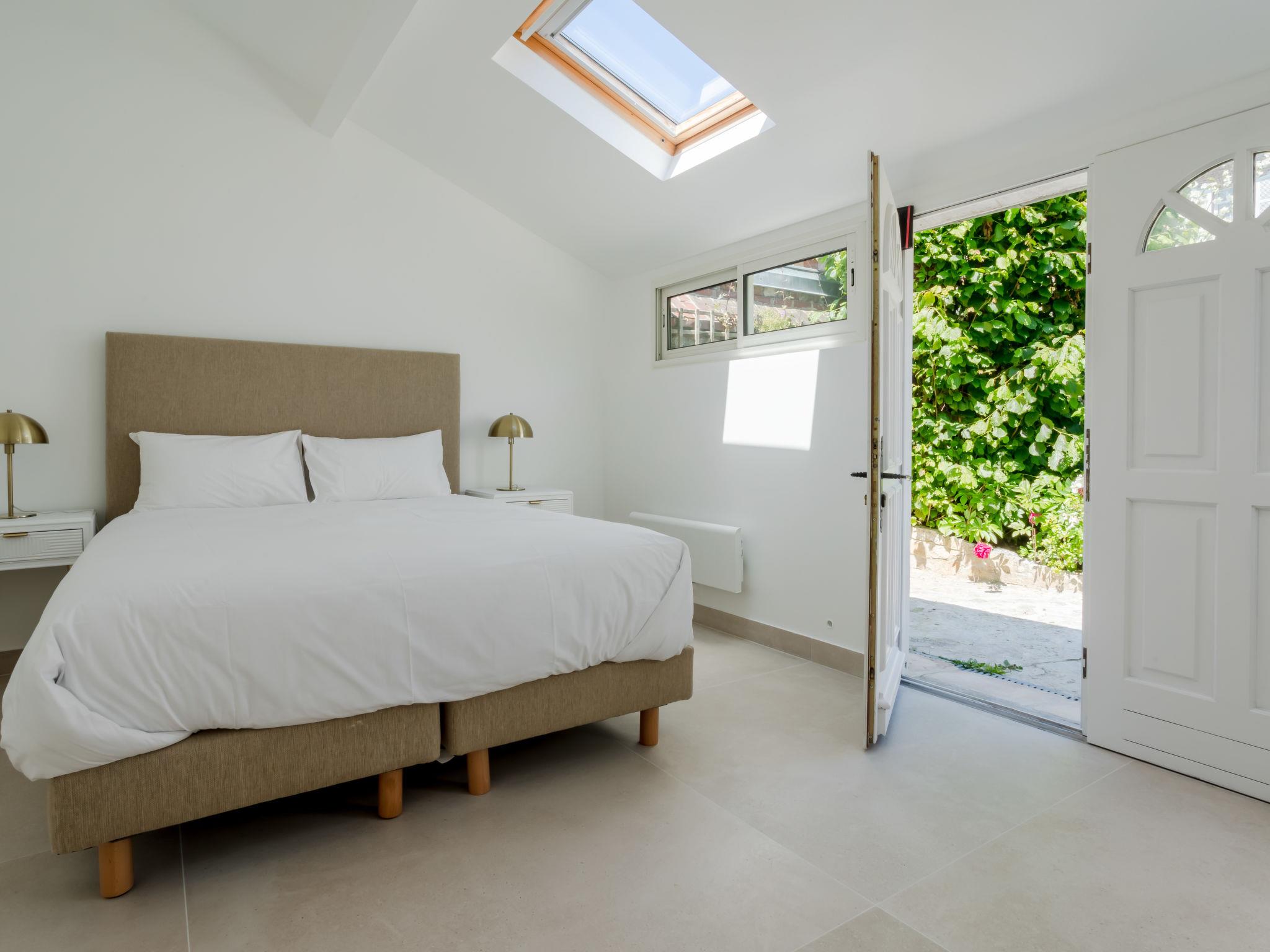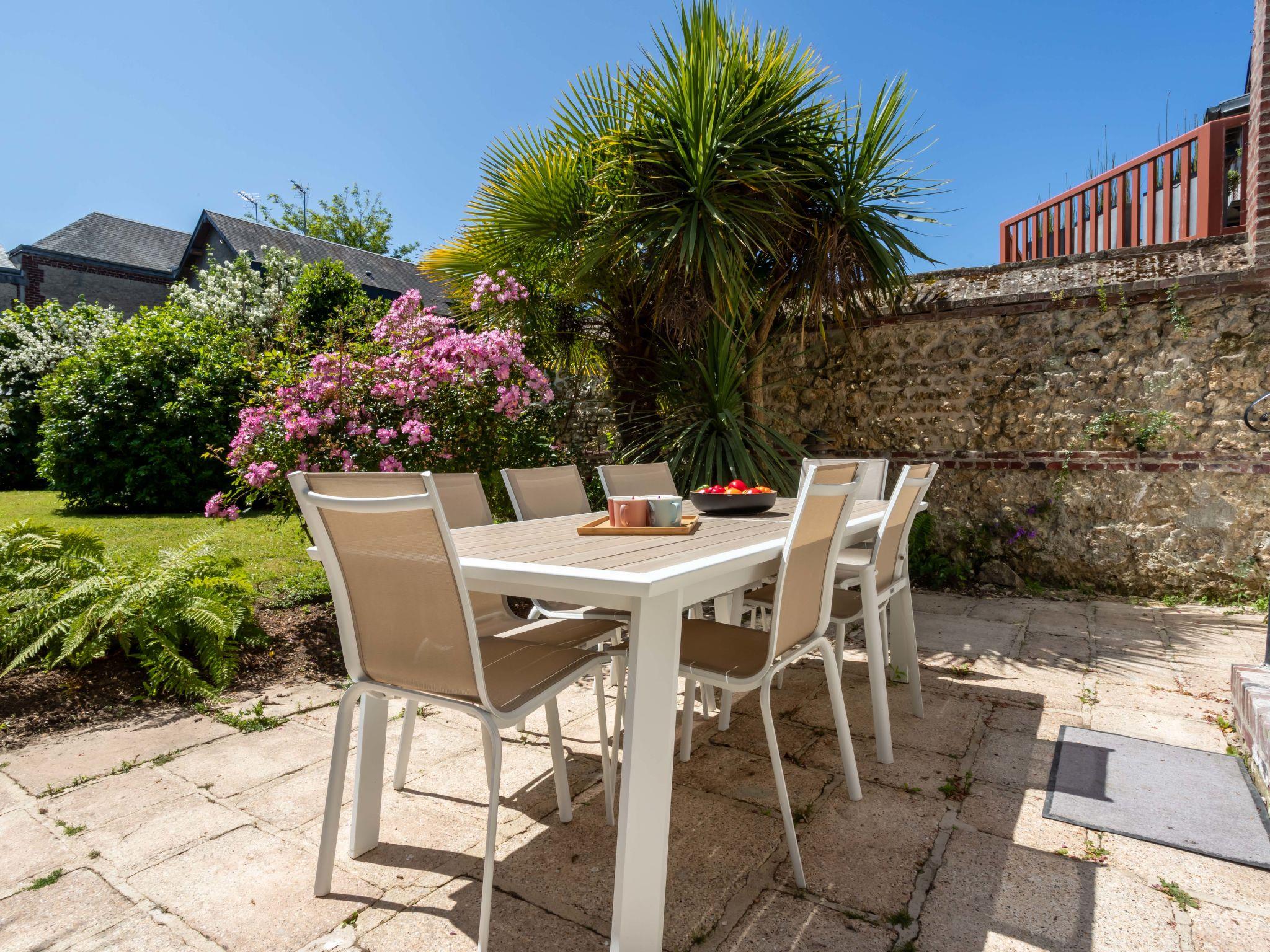 Deauville: Single-family house "Villa Deauville", 3 storeys in 2024. Property composed of main house and outbuilding, in the centre of Deauville, excellent location: right in the centre but still quiet, 900 m from the sea, 900 m from the beach. Public parking 50 m on the road. Shop 50 m, grocery 130 m, restaurant 50 m, bakery 200 m, bus stop "Deauville Art Station" 150 m, railway station "Deauville-Trouville" 1.8 km, sandy beach "Planches de Deauville" 900 m, indoor swimming pool 1.3 km, thermal baths "de Deauville" 1.3 km. Golf course (18 hole) 3.1 km, tennis 800 m, riding stable 650 m. Nearby attractions: Casino de Deauville 650 m, Hippodrome de Deauville La Touques 280 m, CID Centre International de Deauville 650 m, Honfleur - village normand 17 km, Memorial de Caen 54 km. The keys‘ handover takes place by the agency Interhome in Deauville.