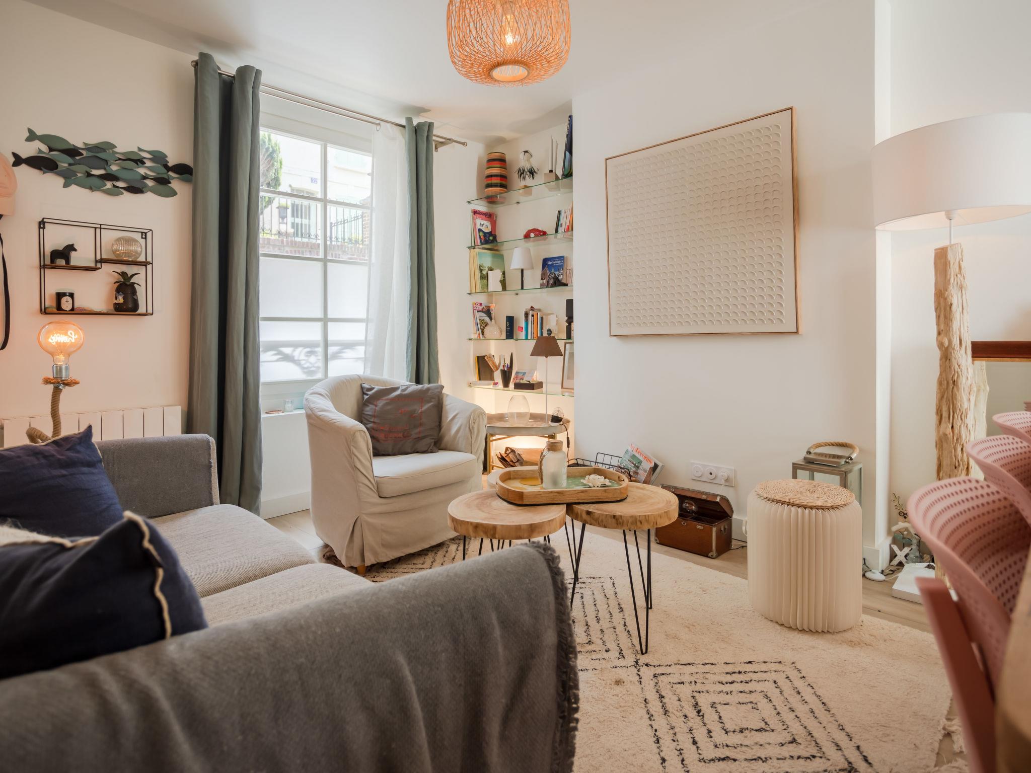 "La Trouvillaise", 3-room terraced house 60 m2 on 2 levels, south-east facing position. Fully renovated in 2022: living/dining room. Exit to the terrace, south facing position and west facing position. Kitchen (oven, dishwasher, 2 ceramic glass hob hotplates, toaster, kettle, electric coffee machine). Sep. WC. Upper floor: 1 room with 1 french bed (1 x 140 cm, length 190 cm). 1 room with 1 french bed (1 x 140 cm, length 190 cm). Shower/WC. Electric heating. Large terrace 20 m2, south facing position and west facing position. Terrace furniture. Facilities: baby cot (extra). Internet (WiFi, extra). Please note: apartment courtyard side. Non-smokers only, no parking. 1 small pet/ dog allowed. Smoke alarm. Offer by a private individual according to Art. 155, IV of CGI. 14715000104MS