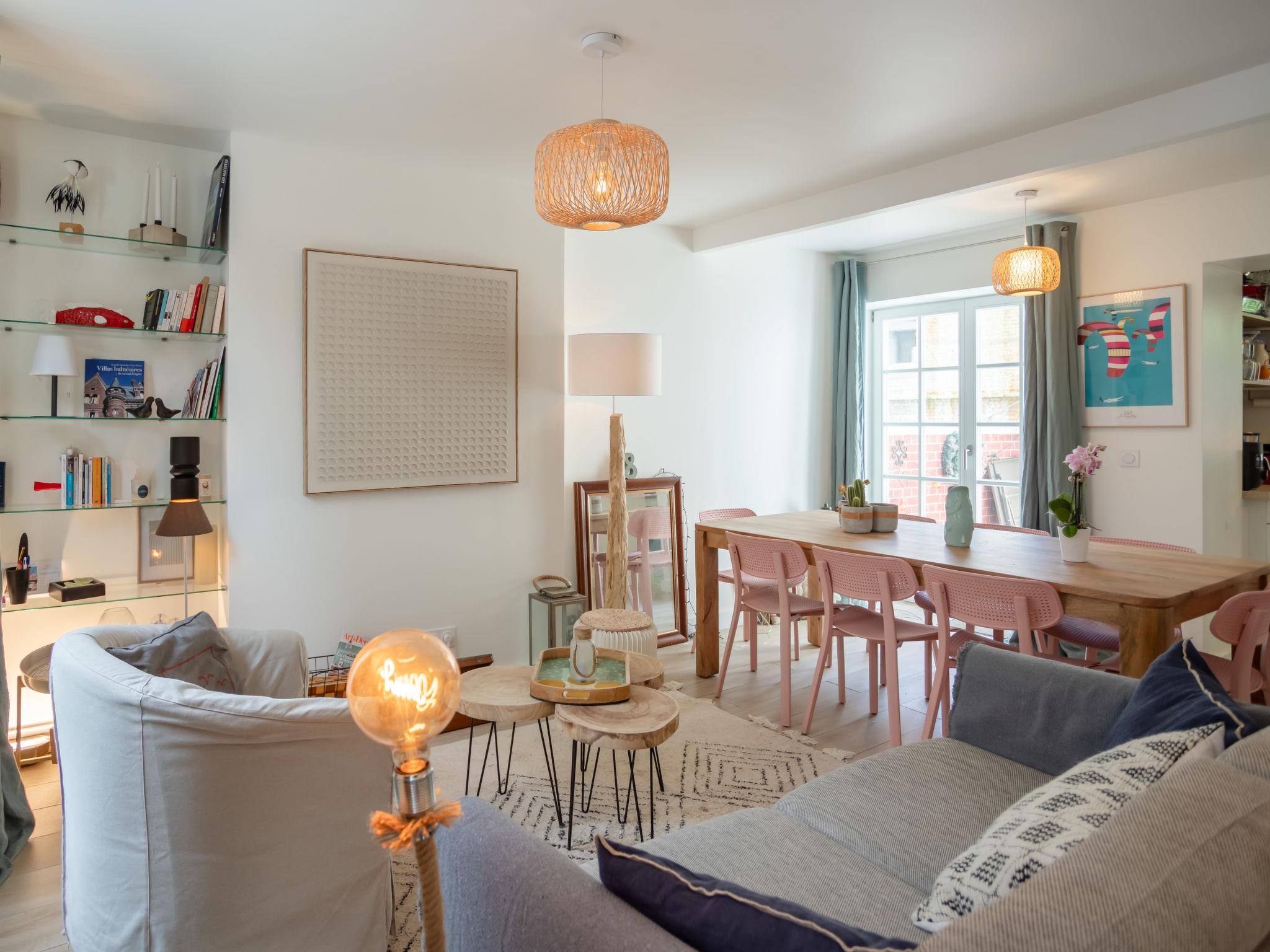Trouville sur Mer: Terraced house "La Trouvillaise", 2 storeys, renovated in 2022. 400 m from the centre, excellent location: right in the centre but still quiet, 900 m from the sea, 900 m from the beach, south-west facing position. Shop, grocery 250 m, supermarket 2.3 km, bus stop "Eglise notre-dame" 180 m, railway station "Deauville-Trouville" 550 m, sandy beach "Planches de Trouville", indoor swimming pool 900 m, thermal baths "Trouville sur Mer" 900 m. Golf course (18 hole) 9.3 km, sailing school 1.7 km, tennis 950 m. Nearby attractions: Casino Barrière Trouville-sur-mer 650 m, Hippodrome Deauville - La Touques 1900 km, Mémorial de Caen 55 km, Honfleur 15 km. The keys‘ handover takes place by the agency Interhome in Deauville.