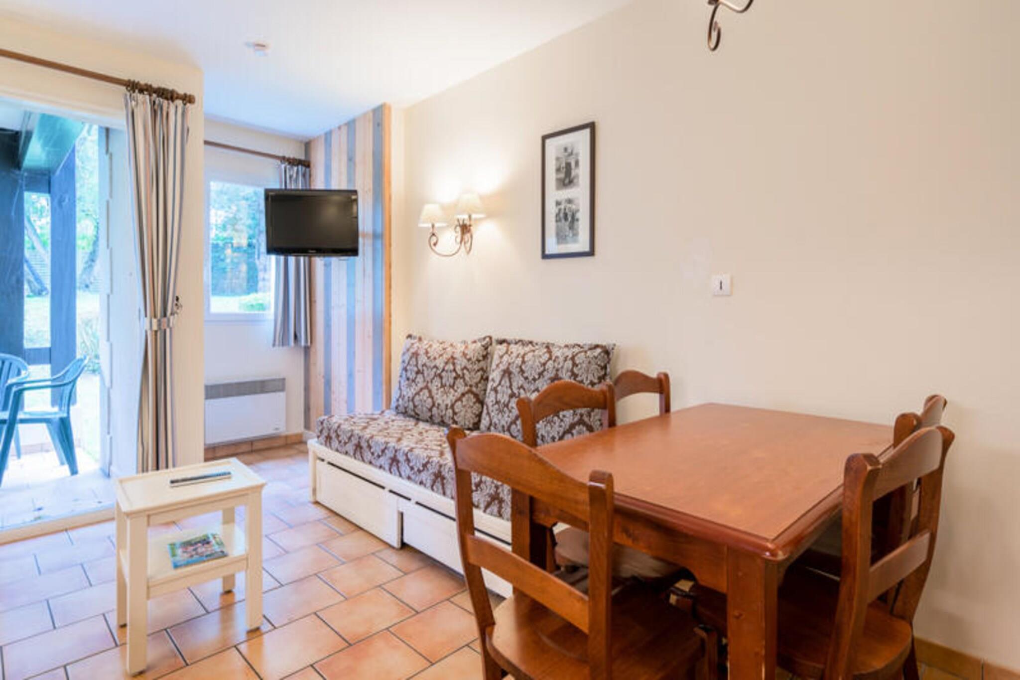 Denne lejlighed, beliggende i en charmerende bolig med traditionel normannisk arkitektur, tilbyder et fredeligt tilflugtssted p? h?jderne af Deauville. Det omfatter et sovev?relse med en dobbeltseng, en stue med to enkeltsovesofaer (den ene med en udtr?ksseng, der kan rumme op til tre personer) og et separat badev?relse med badekar. Ejendommen er k?ledyrsvenlig mod et till?gsgebyr og inkluderer en parkeringsplads i et sikkert, overd?kket omr?de. Boligen er omgivet af frodige gr?nne omr?der og ligger p? kanten af ??Lucien Barri?re golfbane. G?sterne kan nyde nem adgang til en r?kke aktiviteter, herunder den opvarmede swimmingpool, soppebassin, golf, tennis og et ridecenter. Det ber?mte Casino Barri?re i Deauville og "Planches" er kun en kort afstand, og tilbyder underholdning og natursk?n udsigt. Deauville-La Touques Hippodrome ligger i n?rheden, hvor bes?gende kan opleve sp?ndende hestev?ddel?b, is?r om sommeren. Lejligheden har et veludstyret k?kken med ?bent design, s? du nemt kan tilberede m?ltider. En spiseplads med bord og fem stole er perfekt til f?lles m?ltider. Yderligere faciliteter omfatter separate toiletter og en balkon til afslapning udend?rs. Reng?ring er tilg?ngelig mod et ekstra gebyr, og senget?j, h?ndkl?der og andre tjenester tilbydes efter anmodning.