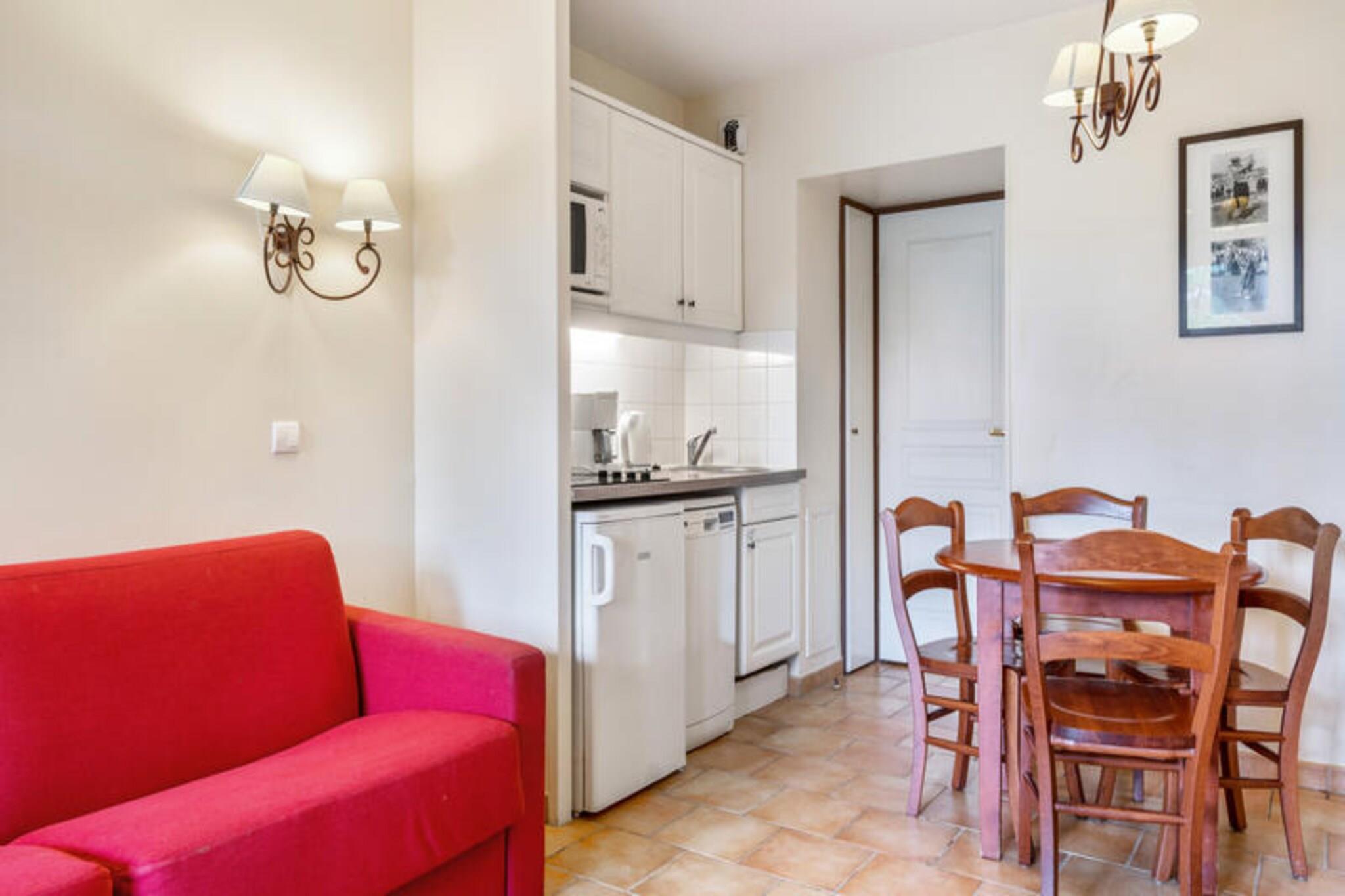 Denne dejlige lejlighed tilbyder et fredfyldt tilflugtssted med sin traditionelle normanniske arkitektur og moderne bekvemmeligheder. Den kan rumme op til fire gæster og har et soveværelse med to enkeltsenge og et opholdsområde med en sovesofa til to. Ejendommen er kæledyrsvenlig mod et ekstra gebyr, hvilket gør det til et godt valg for rejsende med lodne ledsagere. Gæsterne kan nyde en privat balkon, gratis overdækket parkering og adgang til en opvarmet swimmingpool og soppebassin, som er tilgængelig fra 1. maj til 15. september. Beliggende i et roligt, grønt miljø støder boligen op til den prestigefyldte Lucien Barrière-golfbane og byder på maleriske omgivelser. Gæsterne er kun 2,5 km fra det ikoniske Deauville "Planches" og det pulserende Casino Barrière, hvor de kan nyde spil, shows eller en livlig atmosfære. Deauville-La Touques Hippodrome er i nærheden, hvilket giver en unik mulighed for at overvære hestevæddeløb, især om sommeren. Udforsk Deauvilles charmerende caféer, markeder og kulturelle steder, alle inden for rækkevidde. Lejligheden er omhyggeligt designet med et åbent køkken udstyret med moderne apparater, herunder køleskab og madlavning, der problemfrit smelter ind i stue og spisestue. Badeværelset har badekar, og der er separat toilet for ekstra bekvemmelighed. Yderligere tjenester såsom Wi-Fi, babyudstyr og sengetøj er tilgængelige mod et ekstra gebyr, hvilket sikrer et behageligt og problemfrit ophold.
