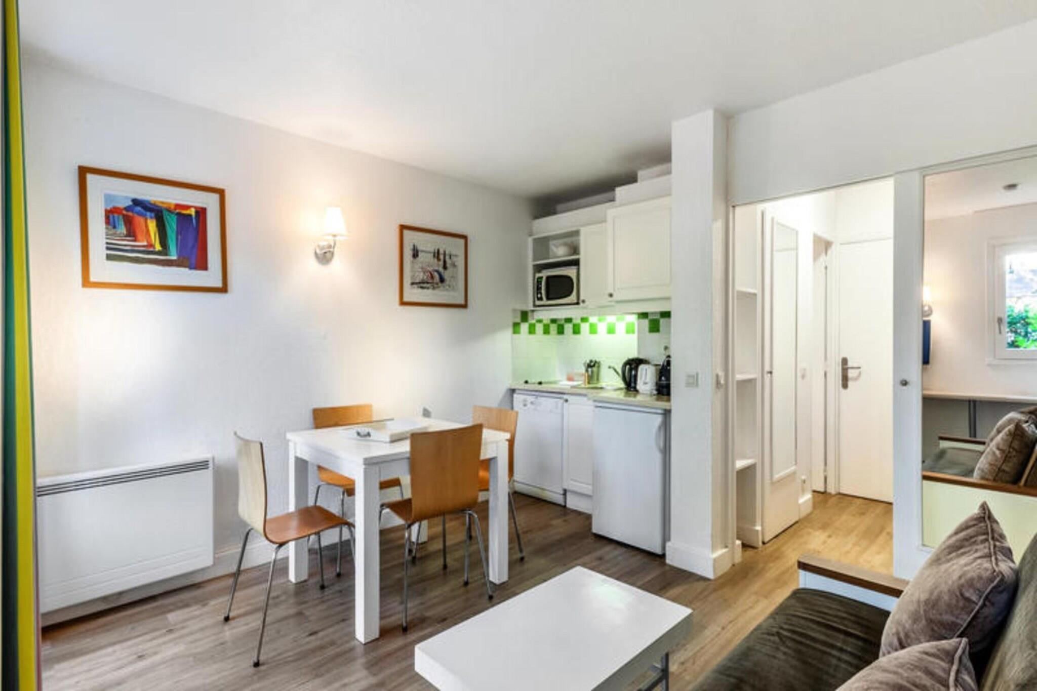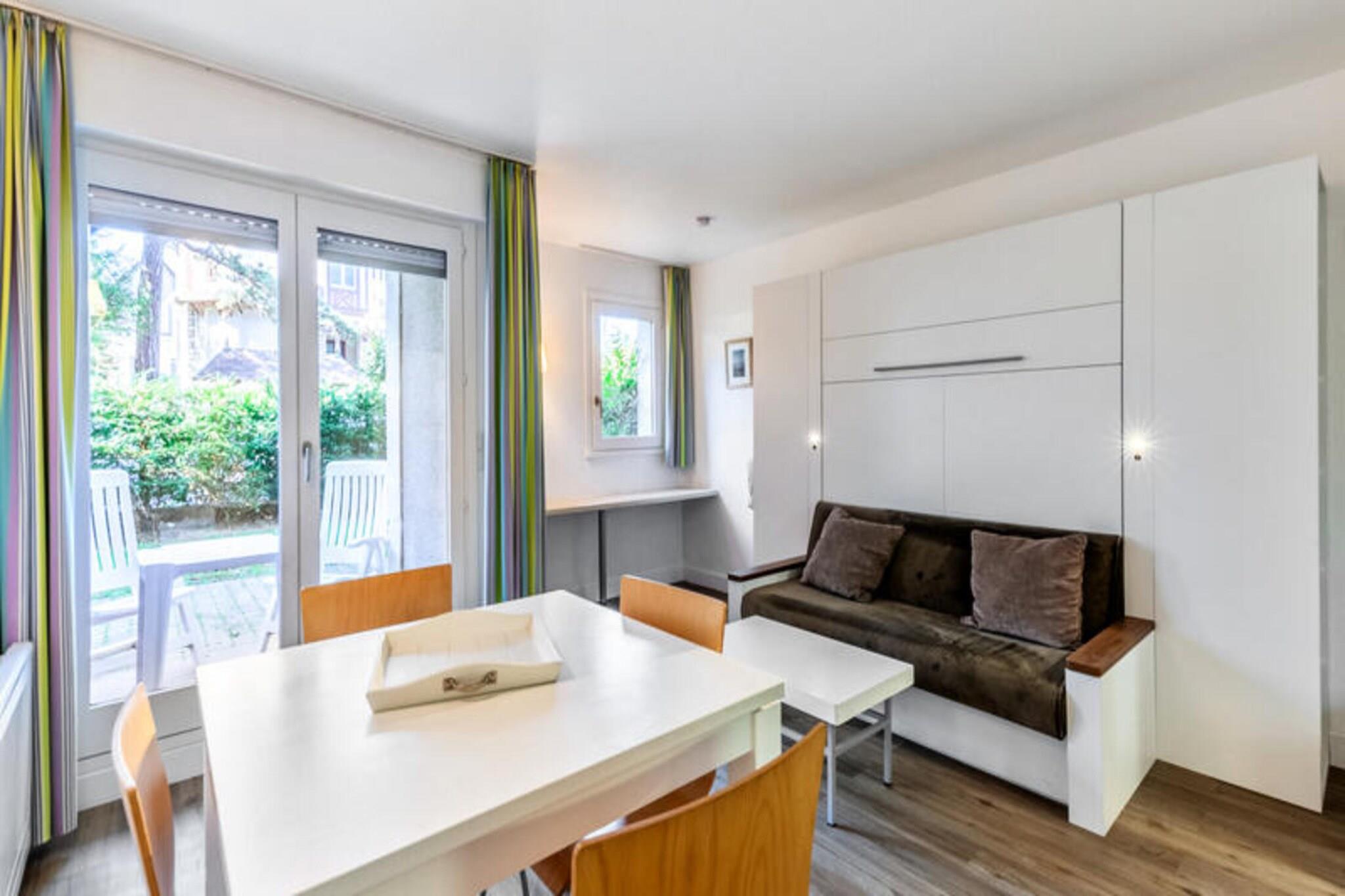 Beliggende kun 250 meter fra butikkerne, stranden og den ikoniske "Planches de Deauville", tilbyder denne charmerende lejlighed et behageligt ophold med alle n?dvendige faciliteter. I stuen er der en sovesofa til to, et spisebord til fire og et hyggeligt kabineomr?de med k?jesenge til b?rn. Badev?relset har badekar, og der er separat toilet. Denne bolig er k?ledyrsvenlig, med k?ledyr tilladt mod et ekstra gebyr. Wi-Fi og tv er tilg?ngelige, hvilket sikrer et behageligt og forbundet ophold. Lejlighedens f?rsteklasses beliggenhed i Deauville giver dig mulighed for nemt at udforske det pulserende omr?de. Kun en kort g?tur fra ejendommen finder du et udvalg af butikker, caf?er og restauranter, hvor du kan nyde det lokale k?kken og atmosf?re. Den n?rliggende strand byder p? solbadning og aktiviteter ved havet, mens den travle bymidte inviterer dig til at opdage Normandiets charme. Med nem adgang til den ber?mte "Planches de Deauville", kan du nyde omr?dets livlige energi under dit ophold. Lejligheden er udstyret med et fuldt funktionelt k?kken, s? du kan tilberede m?ltider, n?r det passer dig. Haven og terrasseomr?det giver udend?rs siddepladser, s? du kan nyde den friske luft. Yderligere tjenester, s?som babys?t og parkering (gratis om vinteren), er tilg?ngelige efter anmodning. Slutreng?ring og senget?j tilbydes mod et till?gsgebyr for ekstra bekvemmelighed.