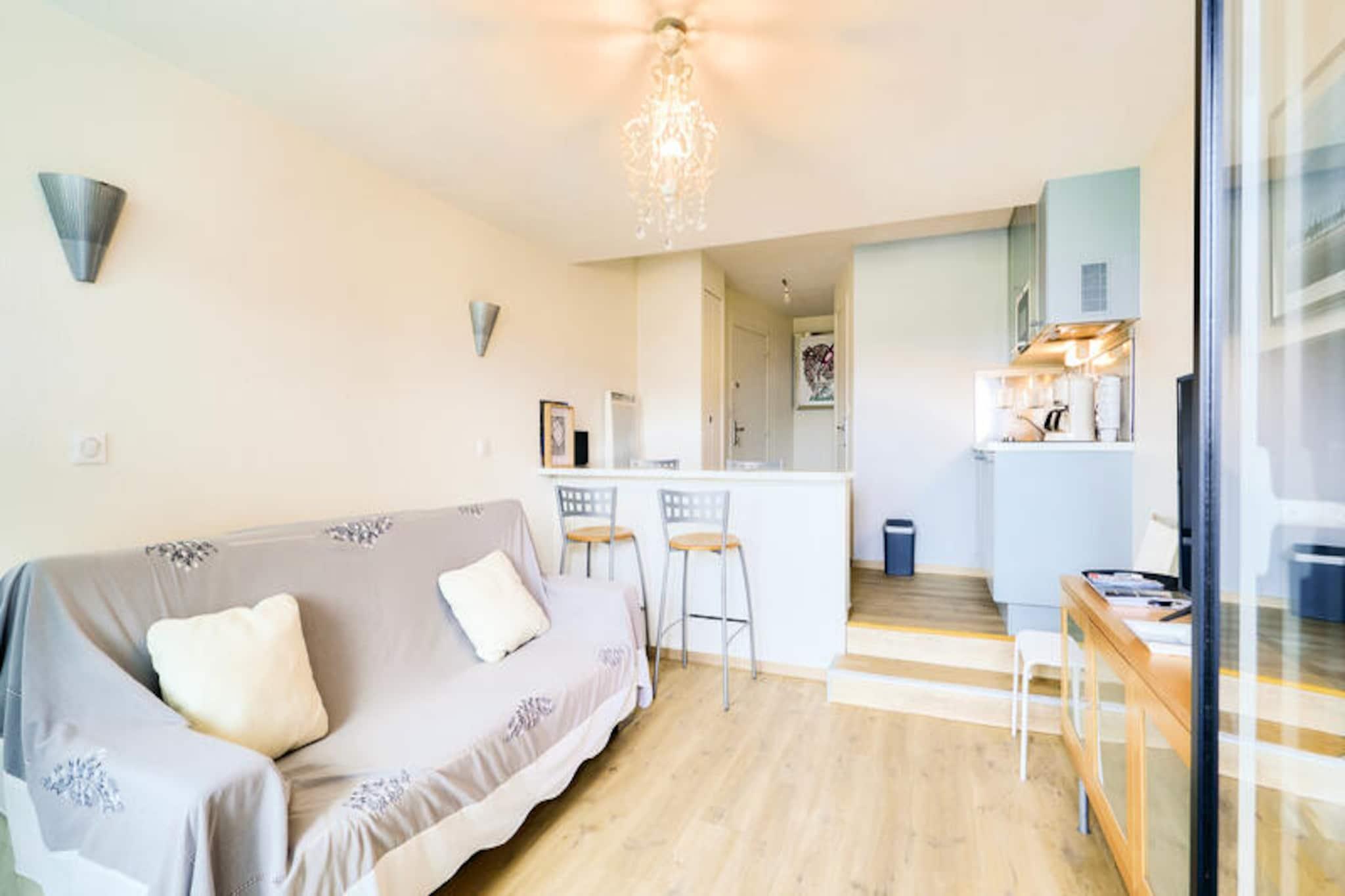 I hjertet af det charmerende Port Deauville-distrikt tilbyder denne hyggelige studiolejlighed et dejligt tilflugtssted, kun en kort gåtur fra den gyldne sandstrand på Deauville-stranden. Beliggende på 5. sal i 'Les Marina'-residensen kombinerer ejendommen bekvemmelighed med komfort, hvilket gør den til et ideelt valg for par eller solorejsende, der søger en ferie ved havet. Fra din private balkon kan du nyde den fredfyldte udsigt og den forfriskende kystbrise, der sætter tonen for en afslappende ferie. Det 25 m² store studio er omhyggeligt designet med en sovesofa, en spiseplads til fire personer og et fuldt udstyret åbent køkken, der sikrer alle de nødvendige faciliteter til et behageligt ophold. Badeværelset har et badekar, og der er et separat toilet for ekstra bekvemmelighed. Moderne faciliteter såsom gratis Wi-Fi, en vaskemaskine og adgang til offentlig parkering forbedrer din oplevelse, mens selve residensen tilbyder en elevator og cykelopbevaring for nem brug. Træd udenfor og find dig selv kun 500 meter fra stranden, perfekt til solbadning eller afslappende gåture langs stranden. Det pulserende bycentrum med dets udvalg af butikker og restauranter ligger kun 800 meter væk, mens det berømte Deauville International Centre og Deauville-La Touques-væddeløbsbanen er inden for rækkevidde. For dem, der søger afslapning, ligger Deauvilles termiske center og indendørs swimmingpool lidt over en kilometer væk. Golfentusiaster vil sætte pris på den nærliggende bane, og busstoppestedet og togstationen sikrer problemfri forbindelse til at udforske regionen. Uanset om du er tiltrukket af Deauvilles glamourøse begivenheder, dens historiske vartegn eller blot roen ved dens strande, tilbyder dette studie en perfekt base for at opleve det hele. Lad Normandiets charme betage dig, mens du slapper af i denne indbydende kystparadis.