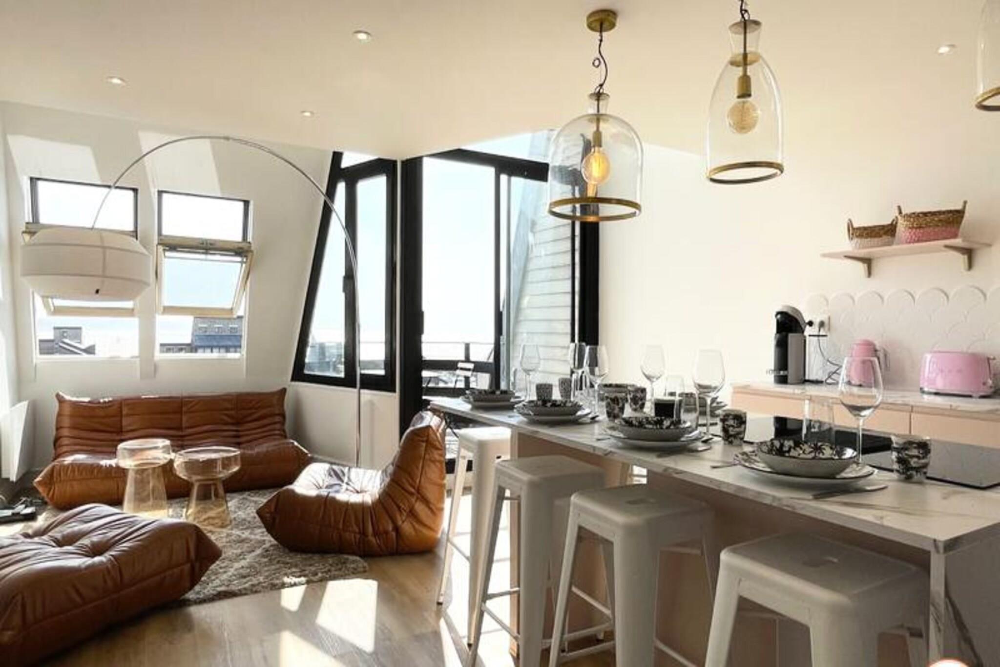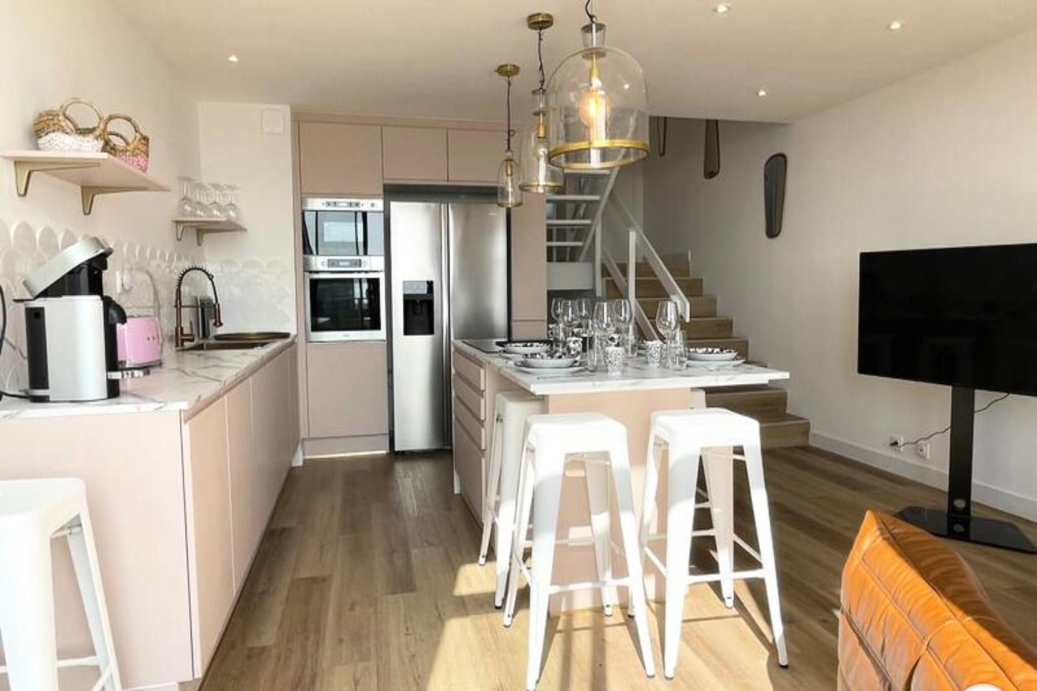 Denne fantastiske triplex ligger i hjertet af Deauvilles lystb?dehavne og tilbyder panoramaudsigt over havet og Deauville-stranden. Renoveret med moderne charme, lejligheden har tre niveauer med tre sovev?relser (to dobbeltv?relser og et med k?jesenge) og to badev?relser, herunder en luksuri?s dobbelt bruser. Ideel til op til seks g?ster, det kan prale af en rummelig opholdsstue med et Smart TV, en balkon/terrasse og et ?bent k?kken med en central ?. Bem?rk venligst, at k?ledyr ikke er tilladt, og stille timer overholdes fra kl. til kl. Beliggende i en sikker luksusbolig, er denne ejendom kun fem minutters gang fra Deauvilles centrum og kasino. Udforsk det pulserende lokalomr?de, herunder Touques og havnen i Trouville-sur-Mer, mens du nyder n?rheden til caf?er, markeder og natursk?nne strandpromenader. Beliggenheden tilbyder en idyllisk balance mellem ro og adgang til livlige attraktioner, alt sammen inden for kort g?afstand. Lejligheden er veludstyret med vaskemaskine-t?rretumbler, opvaskemaskine, strygejern, gratis Wi-Fi og premium senget?j. Et fuldt udstyret k?kken, komplet med moderne apparater, g?r madlavning praktisk. Yderligere faciliteter omfatter et s?rligt arbejdsomr?de, privat parkering efter anmodning og personlig indtjekning. Oplev et problemfrit ophold med concierge-support og service af h?j kvalitet i dette enest?ende tilflugtssted i Normandiet.