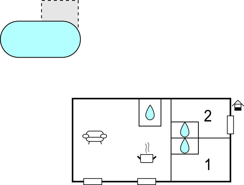 Opholdsstue 25m2 - 1 Soveplads. (Enkeltseng(e)).