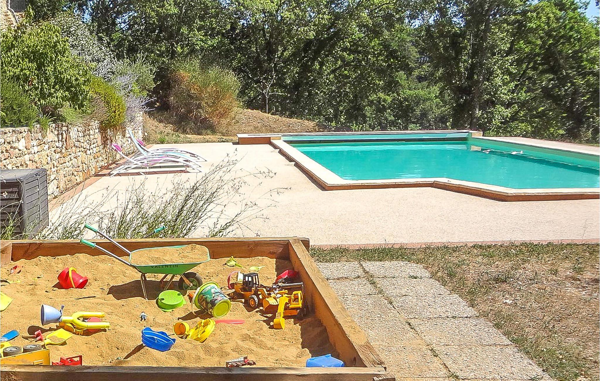 Dette autentiske stenhus ligger i et idyllisk landskab. Her er der gode, stemningsfulde rammer til den lille familie, som ønsker sig en hyggelig, lille base. Huset er veludstyret og ligger ud til en stor grund, som I deler med de diskrete ejere. I kan holde øje med børnene fra terrassen, mens de bygger løs i sandkassen og bader i poolen.