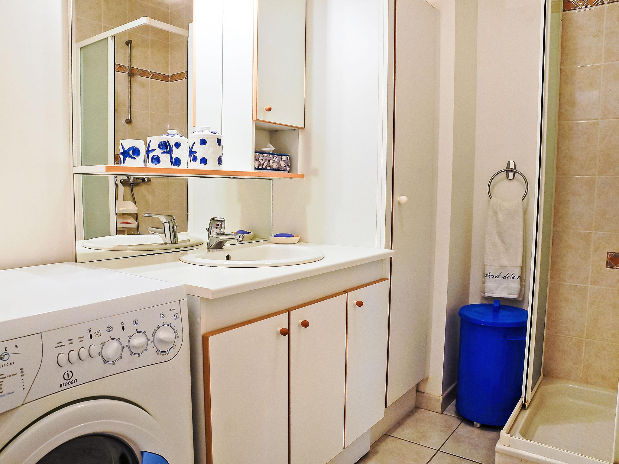1-room studio 43 m2 on 4th floor. Spacious, with sloping ceilings: living/sleeping room with 1 sofabed (90 cm, length 190 cm), 1 french bed (140 cm, length 190 cm), TV (flat screen), electric shutters. Kitchenette (2 hot plates, dishwasher, toaster, kettle, combination microwave). Shower, sep. WC. Electric heating. Facilities: washing machine. Internet (WiFi, free). Parking. Please note: non-smokers only. Maximum 1 pet/ dog allowed. Smoke alarm.
