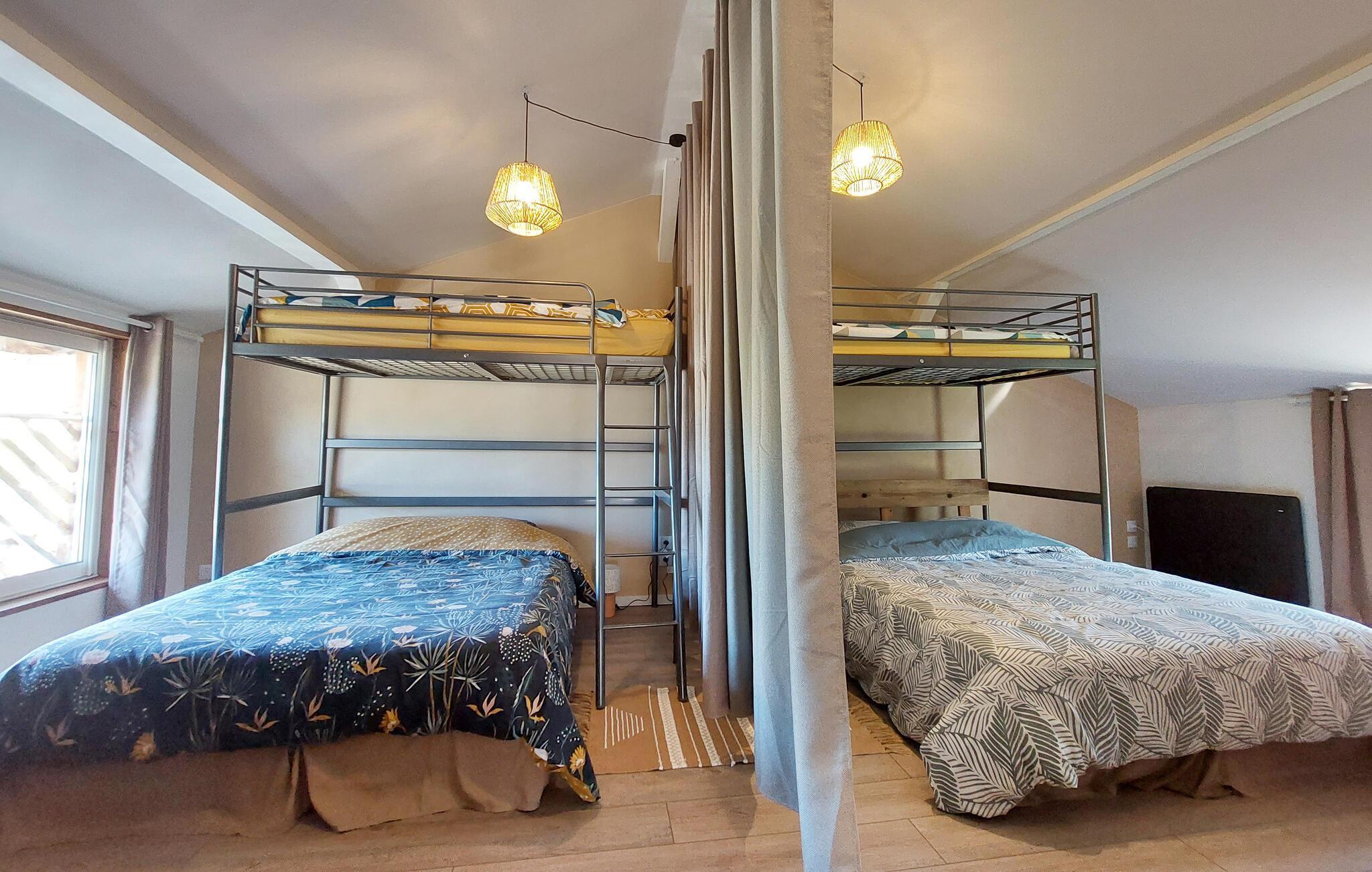 Soveværelse 25m2 (nr. 1) - 1 Soveplads. (Enkeltseng(e)). 4 Sovepladser. (Dobbeltseng(e)). 1 Soveplads. (Etageseng(e)).