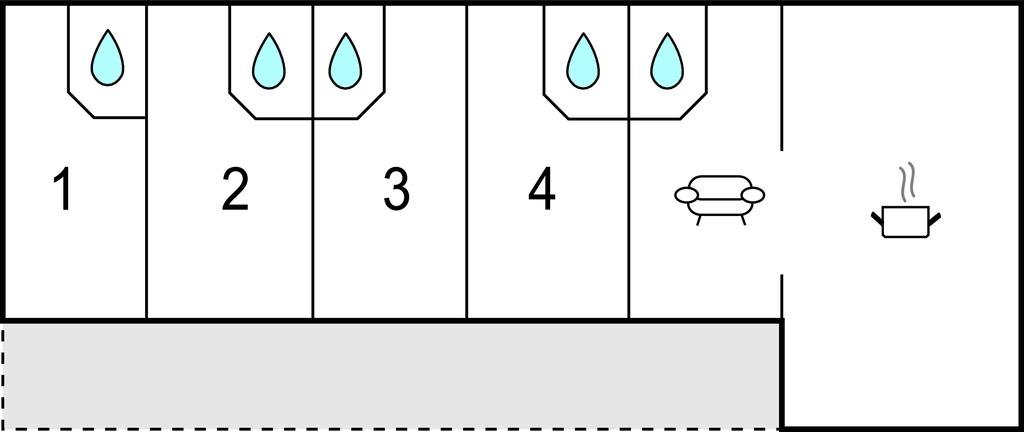 Badeværelse 4m2 (nr. 4) - WC. Varmt og koldt vand. Bruser