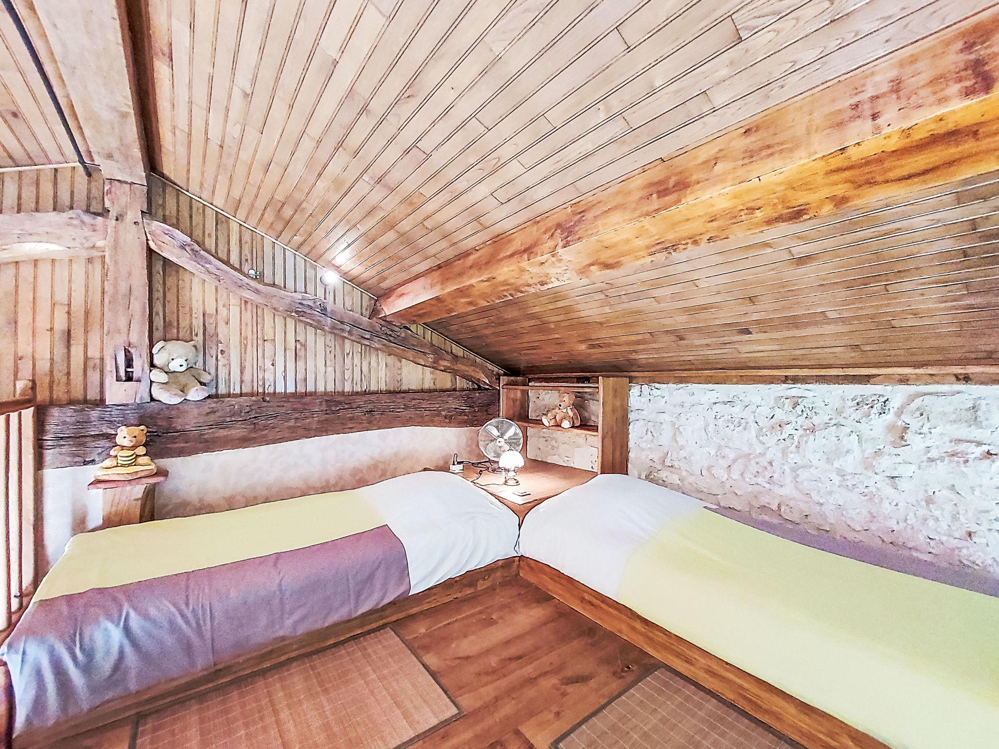 "La Grange Jacques", 3-room house 90 m2 on 2 levels. Comfortable and rustic furnishings: large living/dining room with panoramic window with open-hearth fireplace and TV (flat screen), DVD. Exit to the terrace. 2 rooms, each room with 1 french bed (140 cm, length 190 cm). Large, open kitchen (1 hot plate, dishwasher, 3 gas rings, toaster, kettle, freezer, electric coffee machine, combination microwave) with dining table. Exit to the terrace. Shower, sep. WC. Upper floor: (steep stair) open large gallery with sloping ceilings with 2 beds (90 cm, length 190 cm). Wood heating. Heating not available in all rooms. Large terrace 30 m2. Terrace furniture, barbecue, deck chairs (6). Beautiful view of the countryside. Facilities: washing machine, iron, children's high chair, baby cot, logs (extra). Please note: non-smoking house. Smoke alarm. Instead of an enclosed bedroom, some sleeping areas are located in an open-plan area (gallery, alcove, etc.). Offer by a commercial proprietor according to Art. 155, IV, CGI
