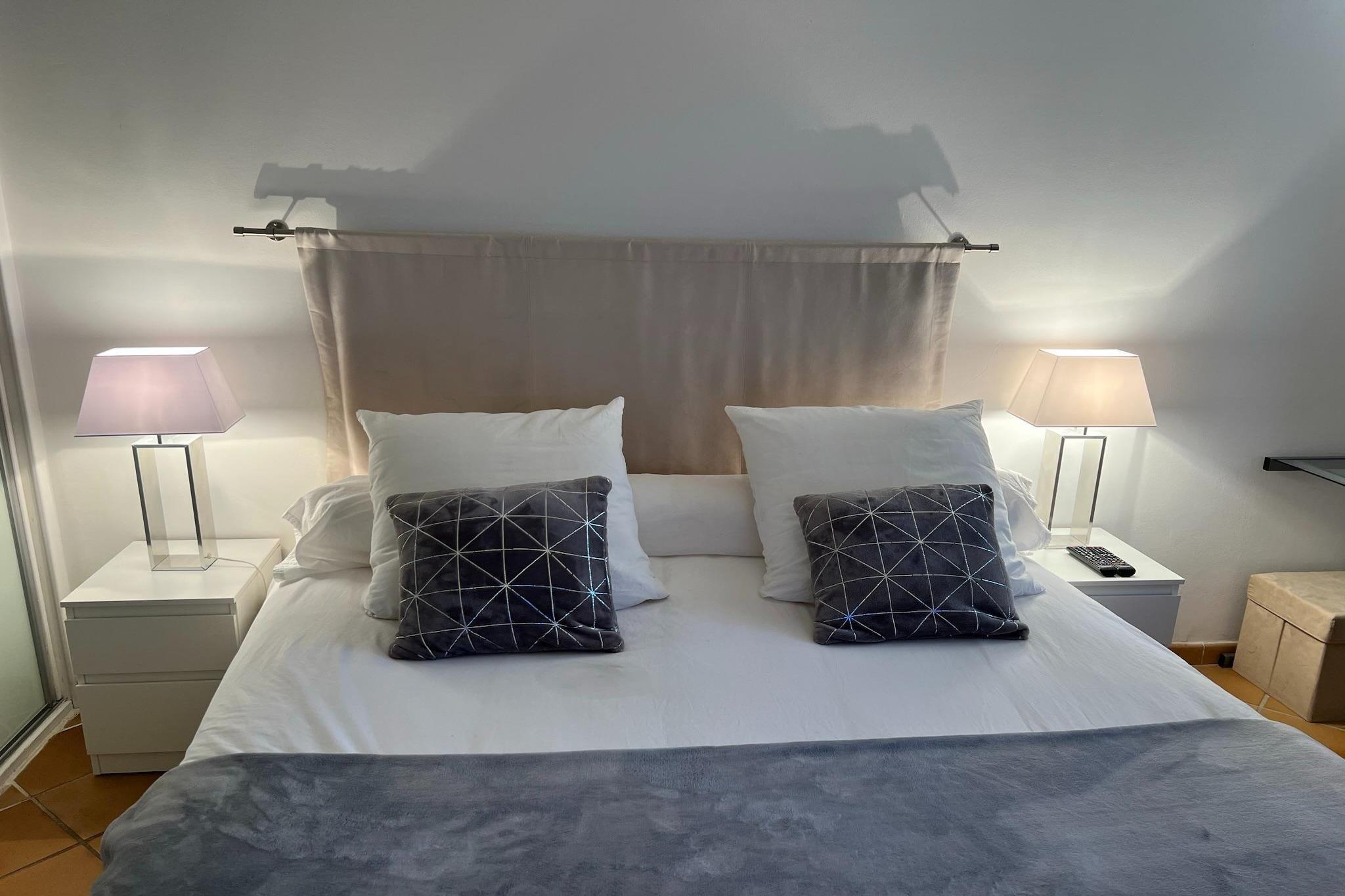 Stueetage: (Køkken(spisebord, elkedel, brødrister, komfur, kaffemaskine, ovn, mikrobølgeovn, opvaskemaskine , køleskab), stue / spisestue(Fjernsyn, sofahjørne), soveværelse(dobbeltseng(160 x 200 cm), Fjernsyn), soveværelse(dobbeltseng(160 x 200 cm), Fjernsyn), soveværelse(dobbeltseng(140 x 200 cm)), badeværelse(badekar, håndvask), badeværelse(bruser, håndvask, vaskemaskine), toilet) havedøre, terrasse, terrasse, have(indhegnet), havemøbler, solstole, grill(elektrisk), parkering, swimmingpool(privat, 10 x 4 m.)